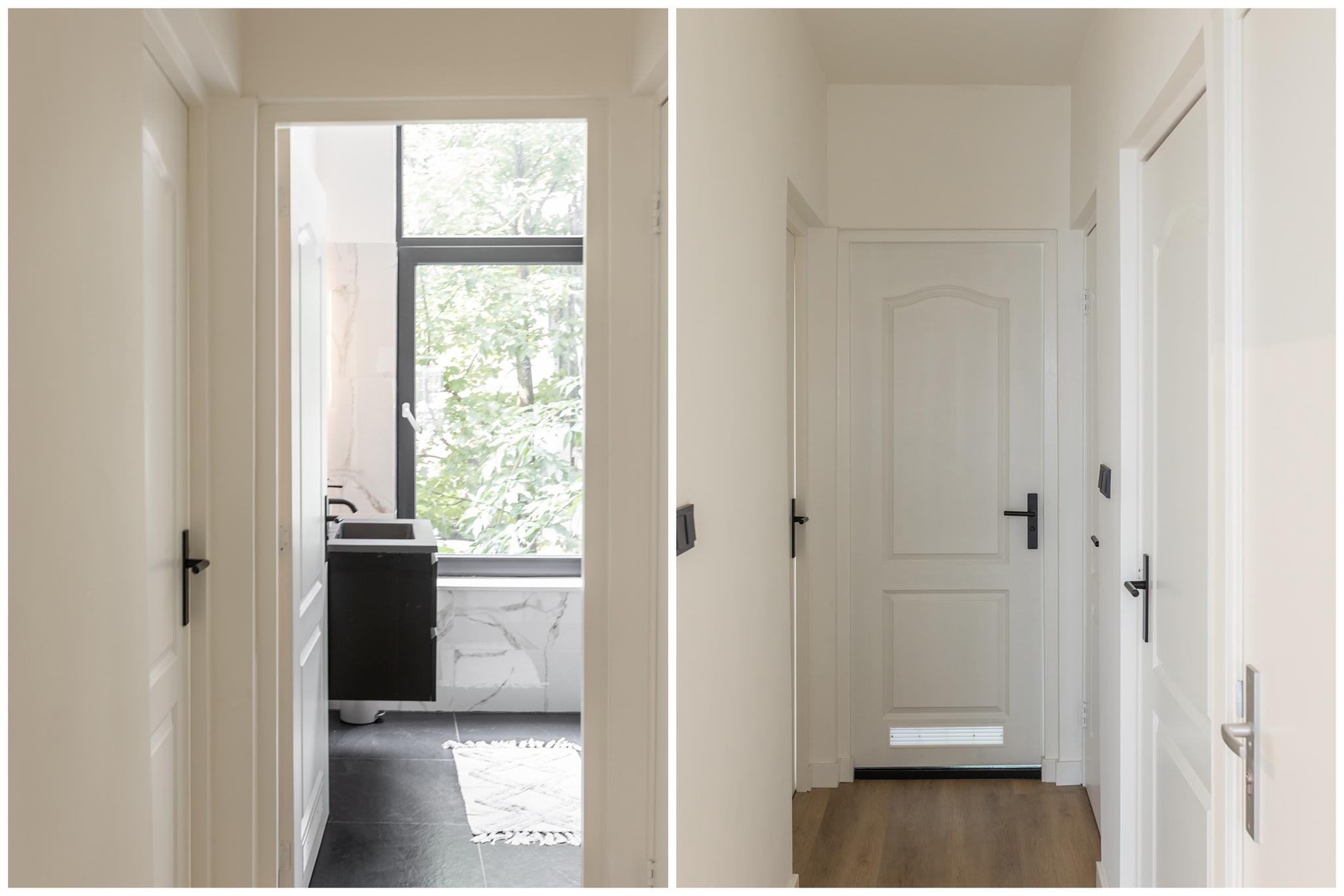 Doormiddel van een gezamenlijke binnenkomst en een trap ga je van de begane grond naar de eerste verdieping. Hier vindt je de voordeur en zodra je de woning binnenstapt kom je op de overloop terecht. Je stapt de ruime living binnen waar twee grote ramen voor veel licht zorgen, de mooie strak gelegde vloer zorgt voor een warme sfeer. De mogelijkheden zijn oneindig betreffende de inrichting, je creëert gemakkelijk een gezellige woonkamer en een fijne eetkamer in deze open ruimte. Aan de andere zijde van de living is de gloednieuwe keuken geplaatst welke is voorzien van een inductiekookplaat, afzuigkap, vaatwasser, (combi?)oven, koelkast en vriezer. Meer heb je niet nodig toch? Als je terug de overloop opstapt is aan de voorzijde via 3 treden omhoog één van de twee slaapkamers te bereiken. Aan de achterzijde van de woning is de ruime master bedroom te vinden welke genoeg ruimte biedt voor een tweepersoonsbed en eventuele kledingkast of dressoir. Hiernaast is de moderne badkamer gesitueerd. In de badkamer is een douchecabine met regen douche geplaatst met op de muren marmerlook tegels wat het helemaal afmaakt!