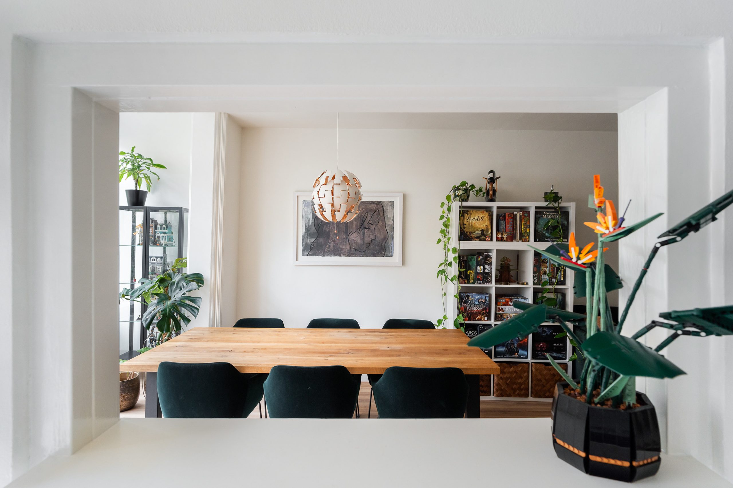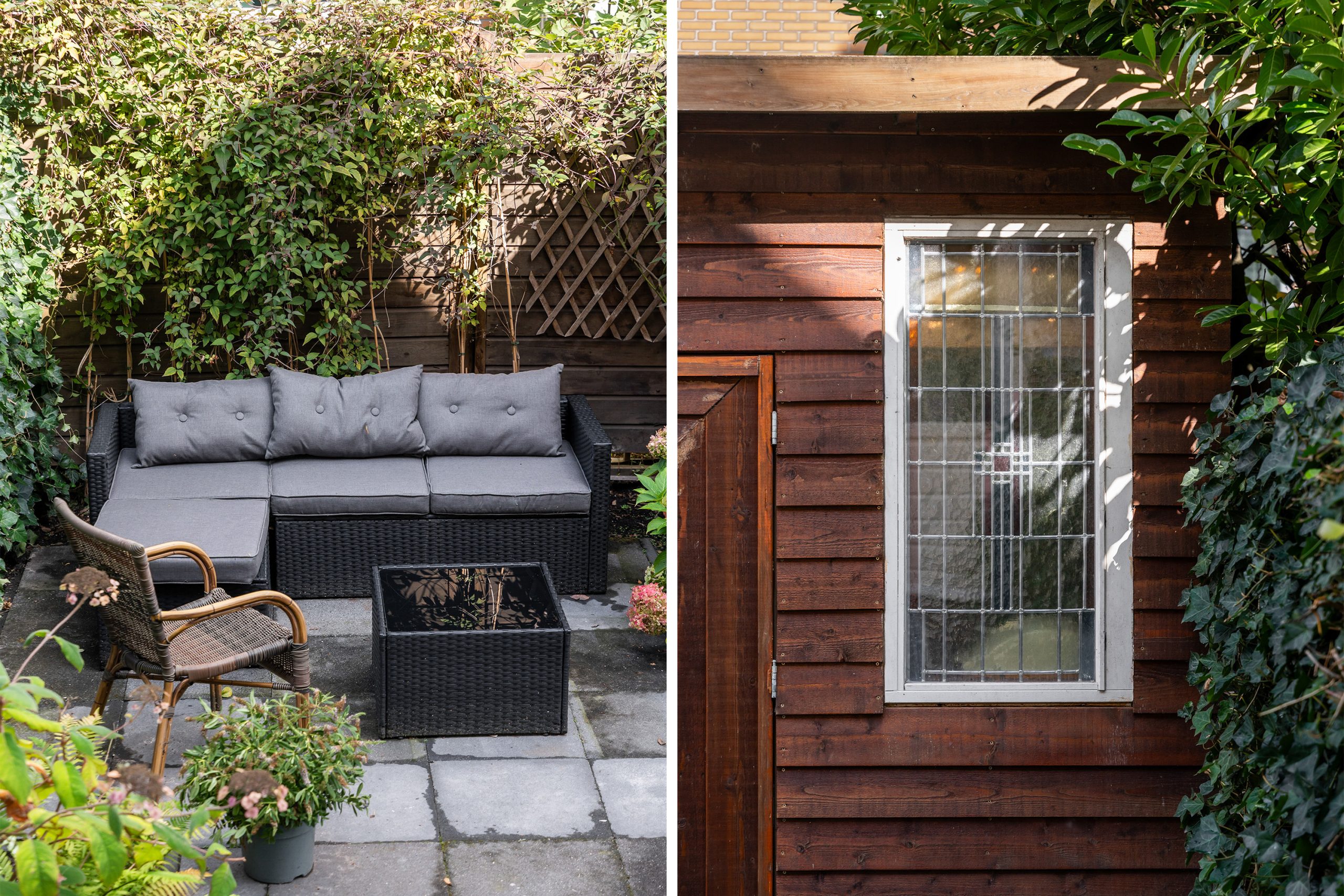 De fraaie en suite deuren leiden je naar de verrassend ruime woonkamer. Hier geniet je van een comfortabele zithoek én een royale eettafel. Aan de achterzijde ligt de heerlijke tuin, gunstig gesitueerd op het noordoosten. Deze fijne buitenruimte biedt volop mogelijkheden: ontspannen in de ochtendzon, uitgebreid tafelen met vrienden of spelen met de kinderen. In de praktische schuur kun je bovendien gemakkelijk al je tuinkussens, gereedschap en andere spullen kwijt.