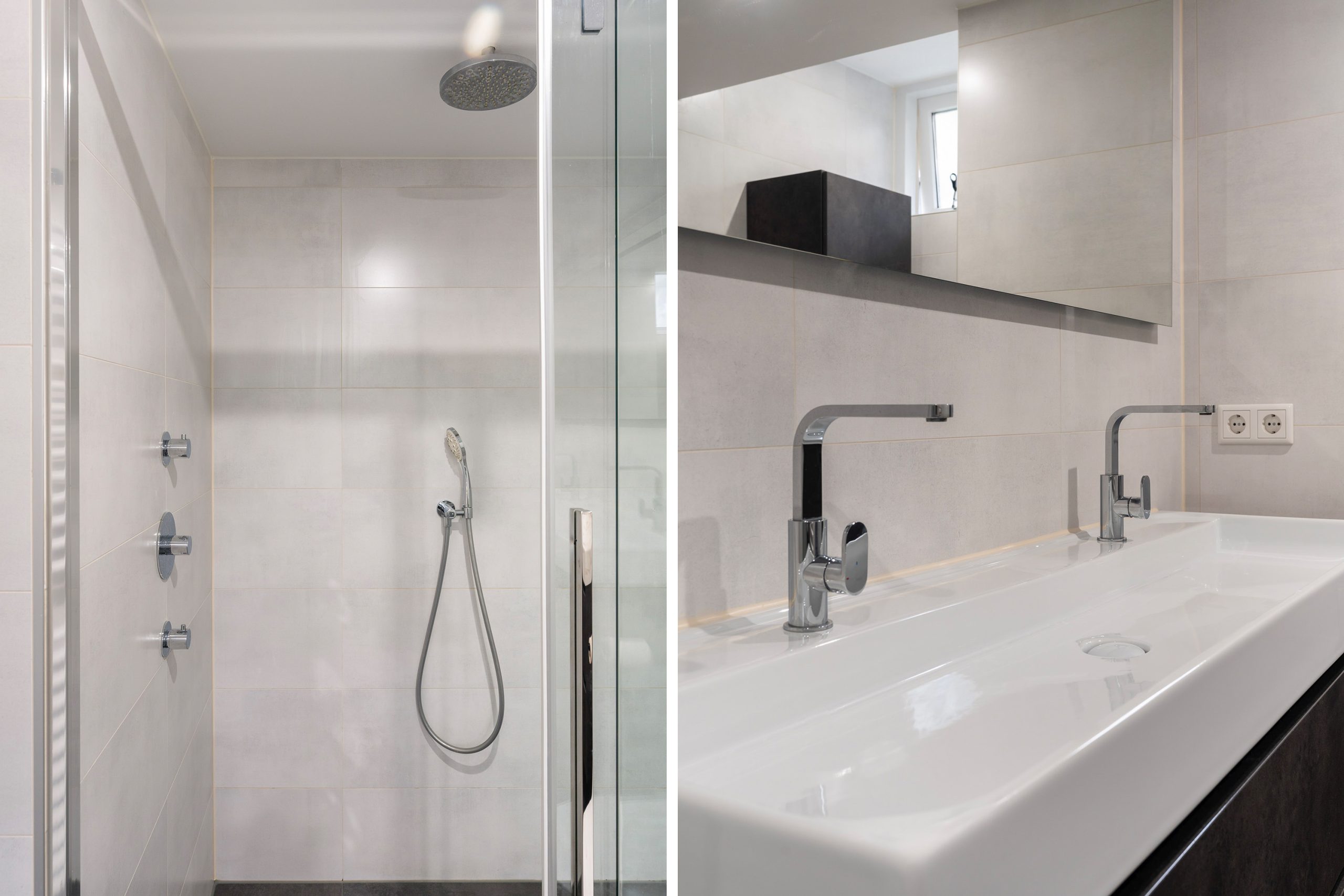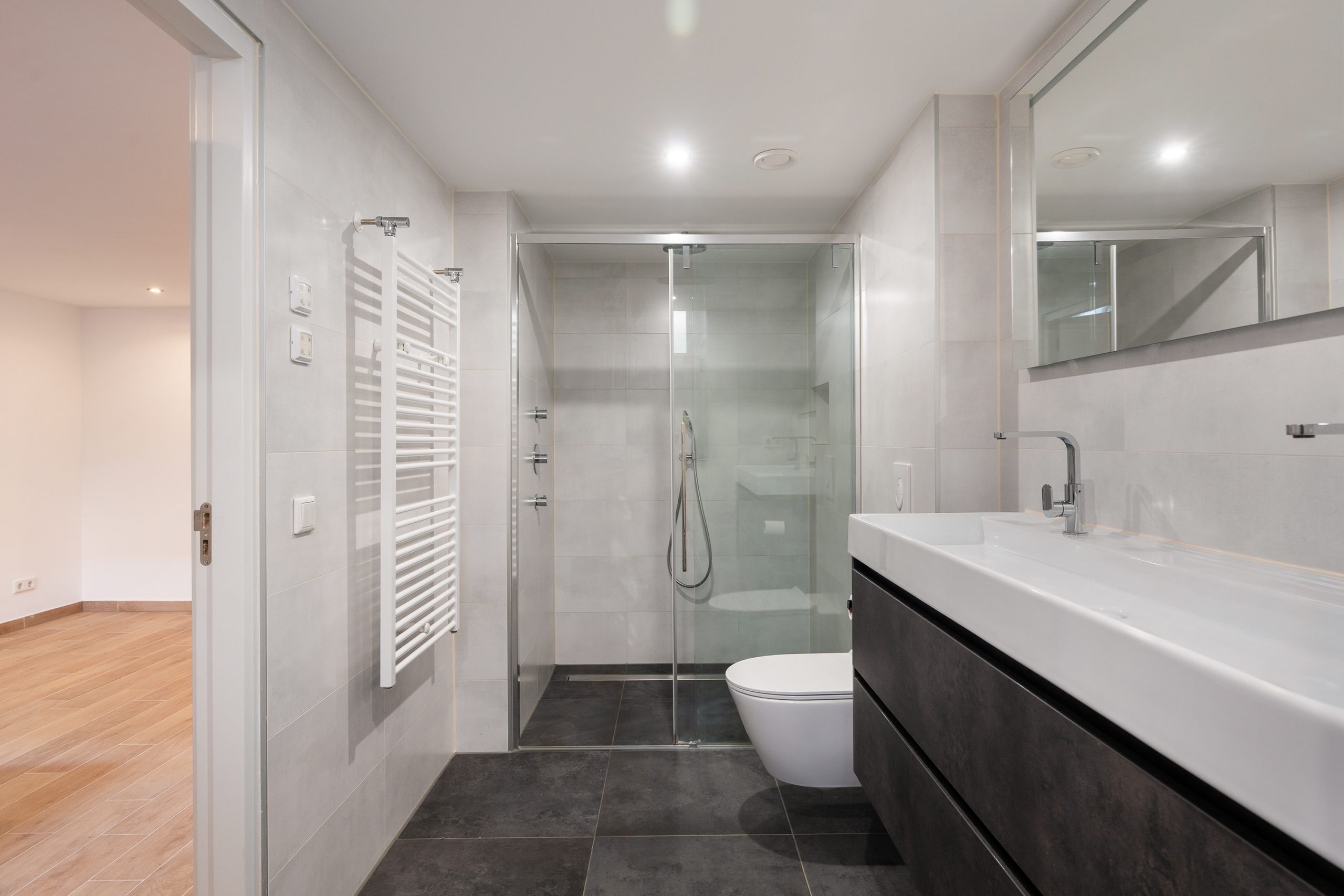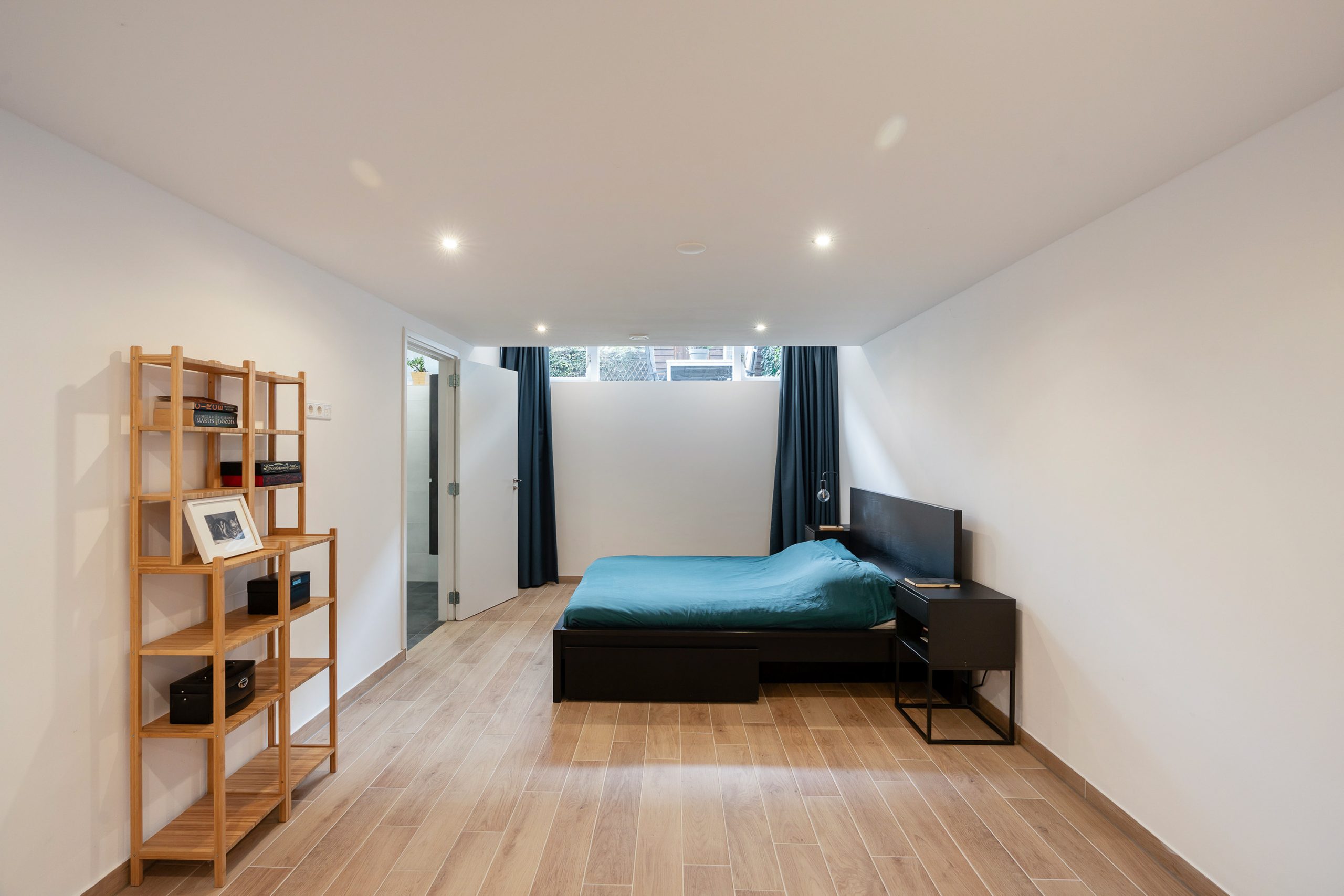 Aan de achterzijde van de woning ontdek je de royale hoofdslaapkamer, een oase van rust. Dé eyecatcher hier is de walk-in closet van ca. 12 m2. De droom van iedere kledingliefhebber! Vanuit de slaapkamer heb je direct toegang tot de luxe badkamer en suite, die van alle gemakken is voorzien: een dubbele wastafel, douchecabine met inbouwkraan en een toilet. Alles bij elkaar dé perfecte plek om fris en energiek je dag te beginnen. Terug in de hal vind je tot slot de aansluitingen voor wasmachine en droger, netjes en praktisch.