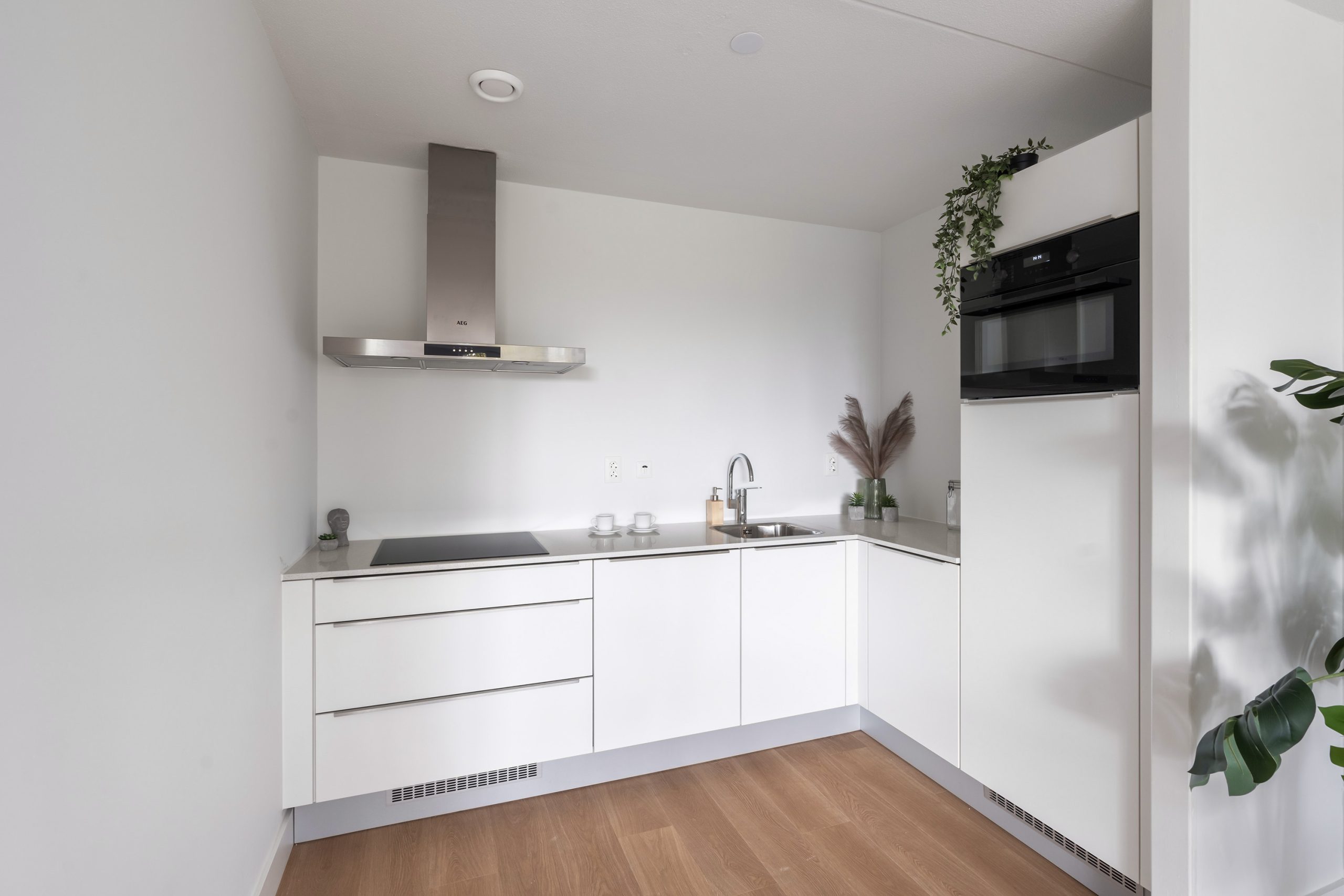 Bij binnenkomst tref je een nette hal die toegang biedt tot alle vertrekken. Door het hele appartement ligt een strak afgewerkte laminaatvloer die zorgt voor een rustige uitstraling en samenhang tussen de ruimtes. Aan de kalme en groene Boezemzijde bevindt zich de ruime woonkamer met een eigentijdse open keuken. Een fraaie leefruimte waar koken, tafelen en ontspannen moeiteloos samengaan. De keuken is ideaal voor kookliefhebbers: ruim van opzet, voorzien van moderne apparatuur en volop werkruimte.Â