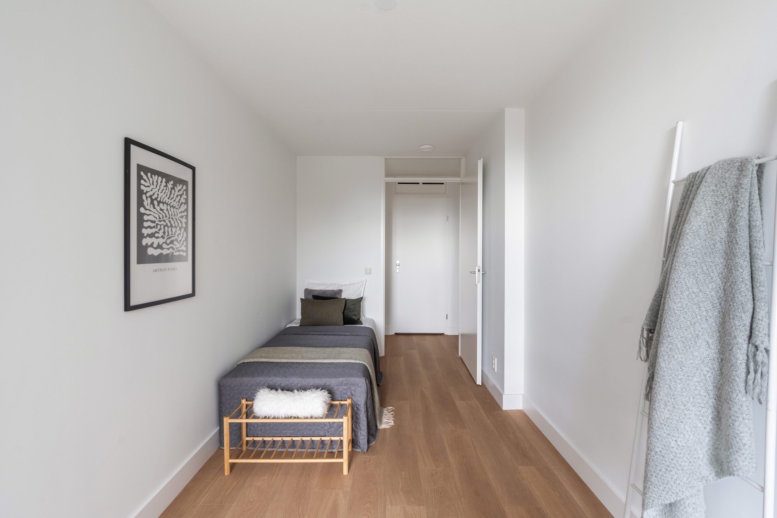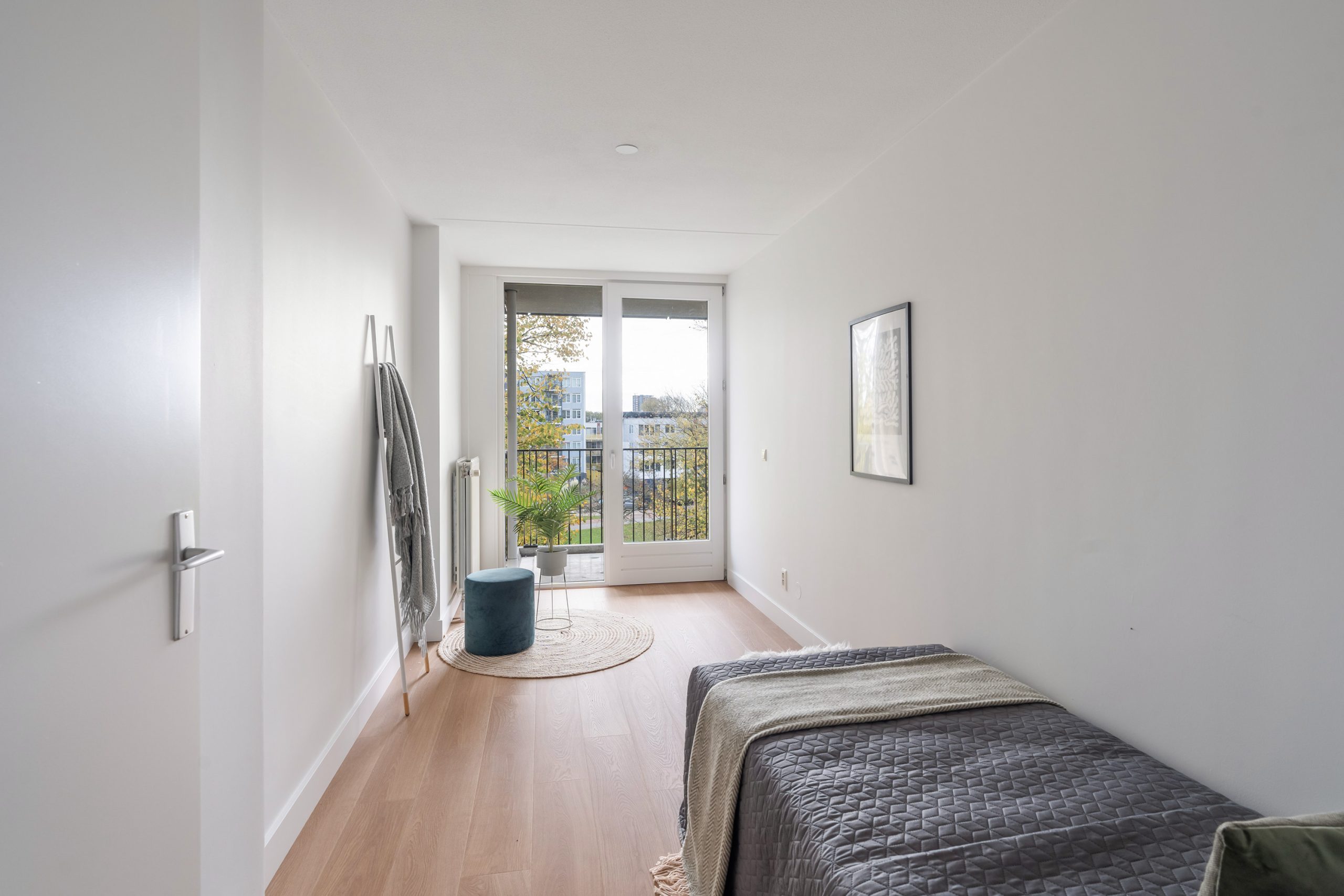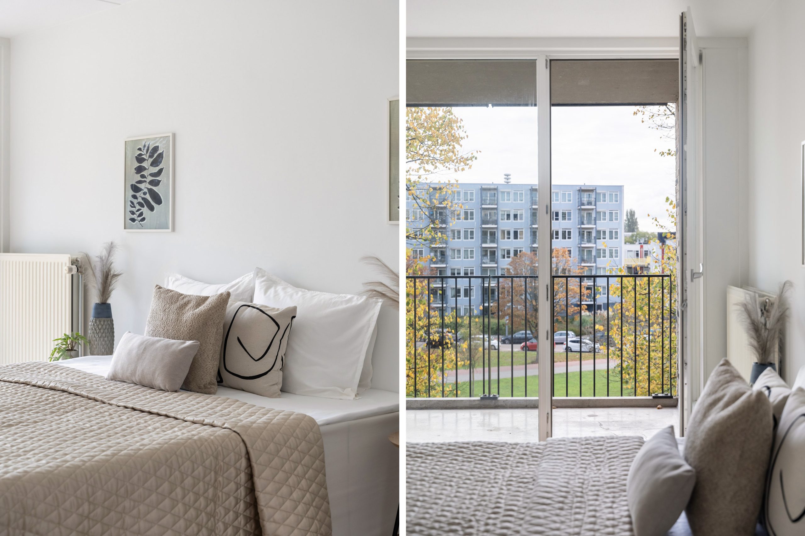 Aan deze zijde zijn ook twee prettige slaapkamers gesitueerd, waarvan er één directe toegang biedt tot het zonnige balkon. Hier geniet je in alle rust van het vrije uitzicht over de groene Boezemkade, een zeldzaam rustige plek in de stad.