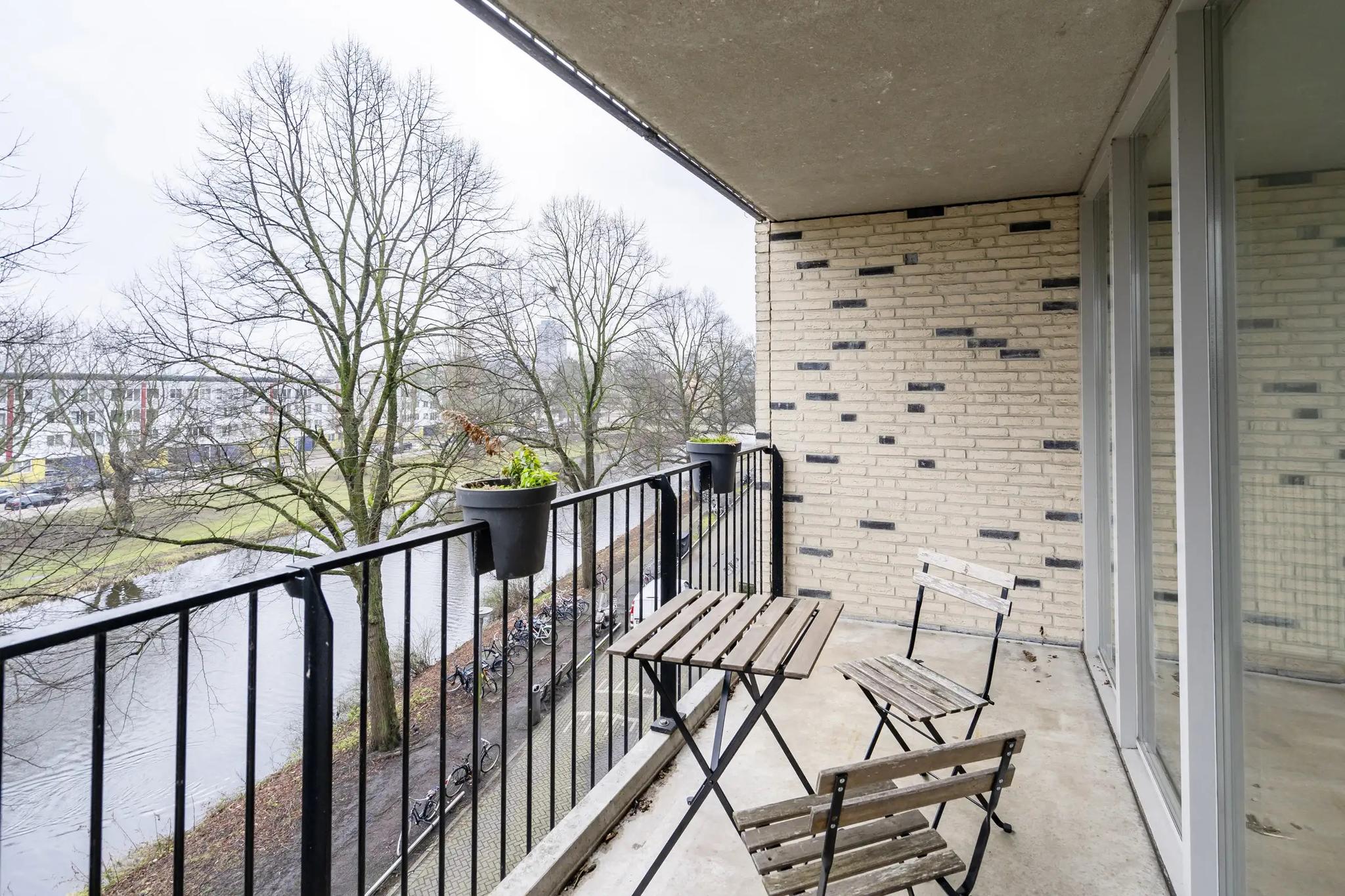 Aan deze zijde bevinden zich twee comfortabele slaapkamers, waarvan één directe toegang biedt tot het zonnige balkon. Dit balkon is een heerlijke plek om te ontspannen, met vrij uitzicht op de lommerrijke Boezemkade. Een zeldzame oase van rust in de stad.