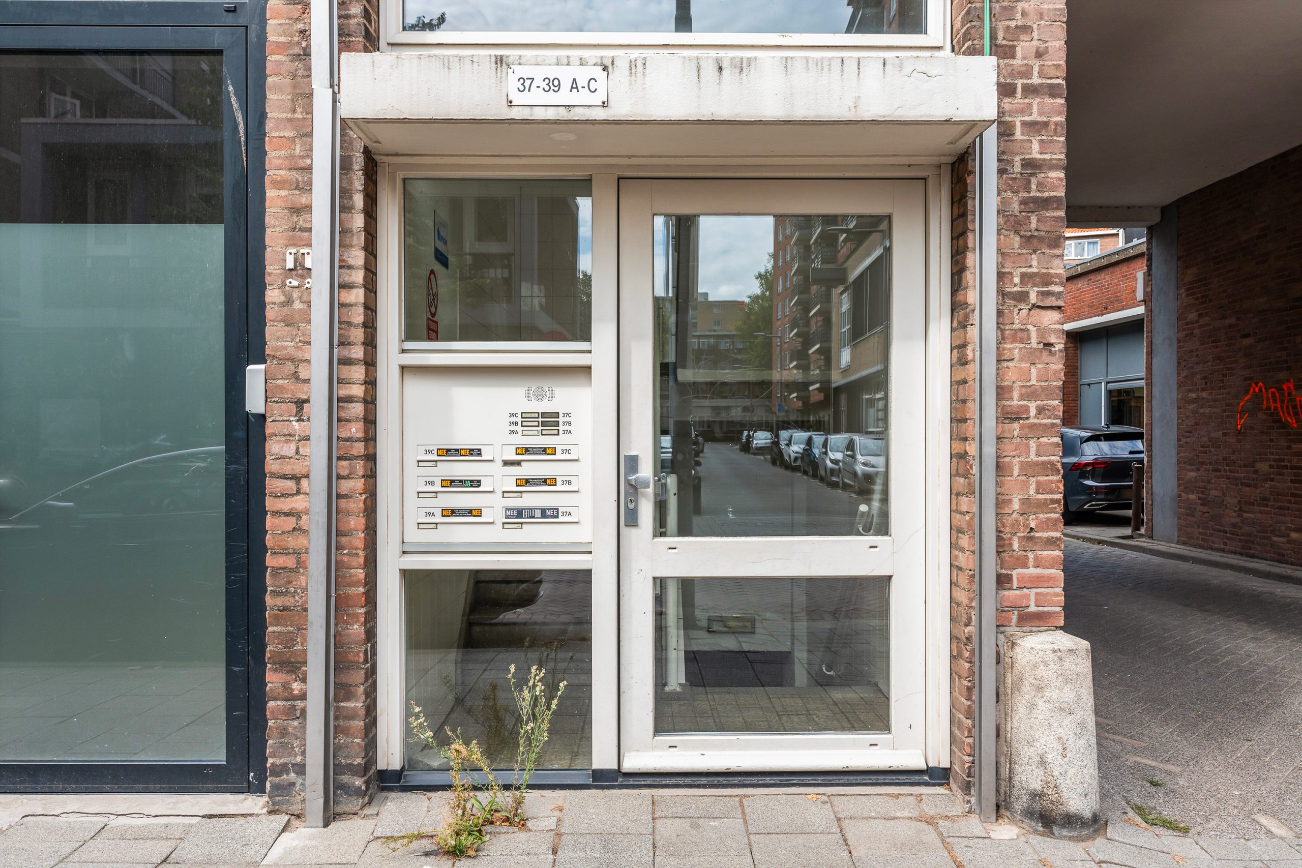 Gezamenlijk entree met brievenbussen- en bellentableau en de trapopgang naar de derde etage.