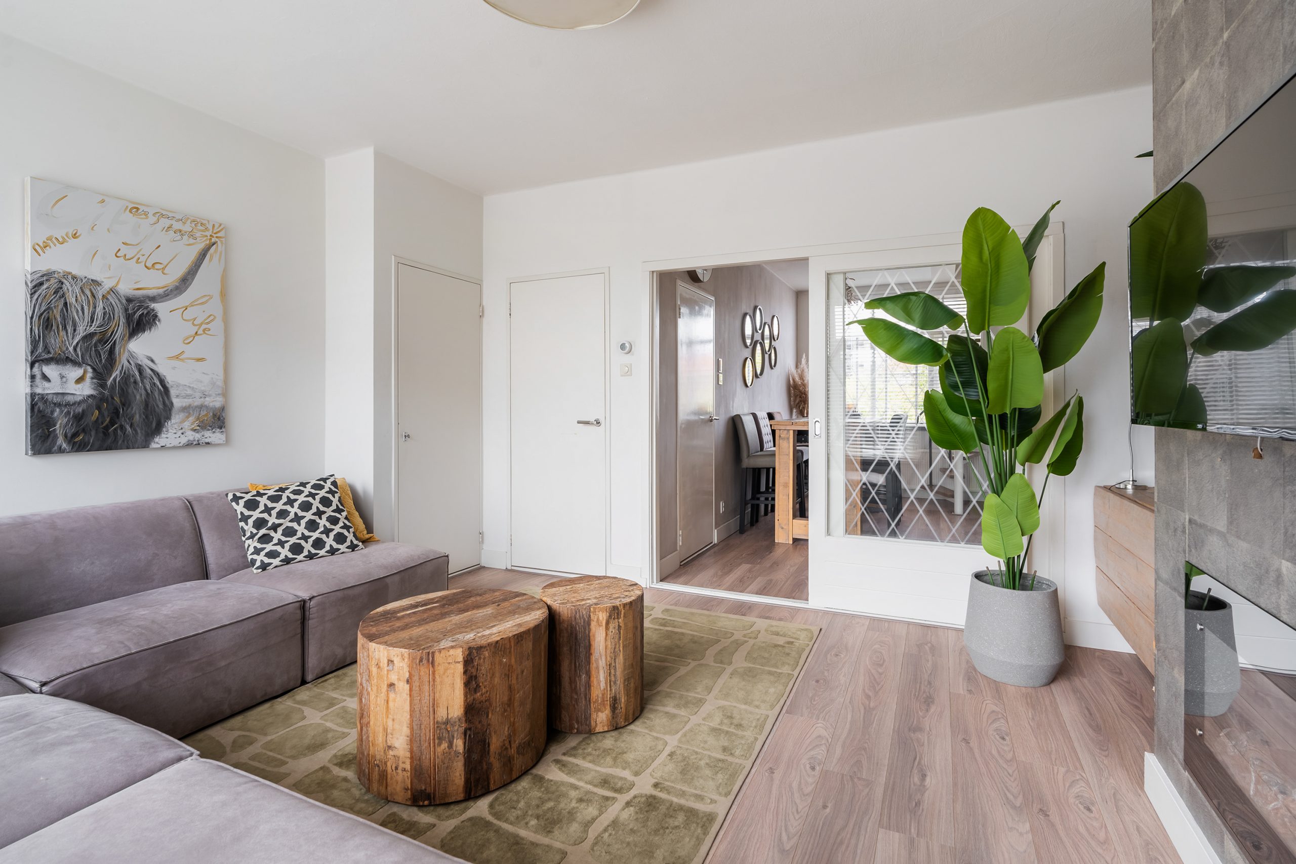Kom binnen in de entree waarvandaan de verschillende vertrekken te bereiken zijn, waaronder de woonkamer. Een sfeervolle ruimte waar het licht rijkelijk binnenvalt. De woning is keurig afgewerkt met strak gestuukte wanden en een laminaatvloer welke is doorgelegd door de gehele woning. De eyecatcher van deze ruimte is de ingebouwde elektrische haard. Zo creëer je hier een knusse en gezellige zithoek, die uitnodigt om volledig tot rust te komen.