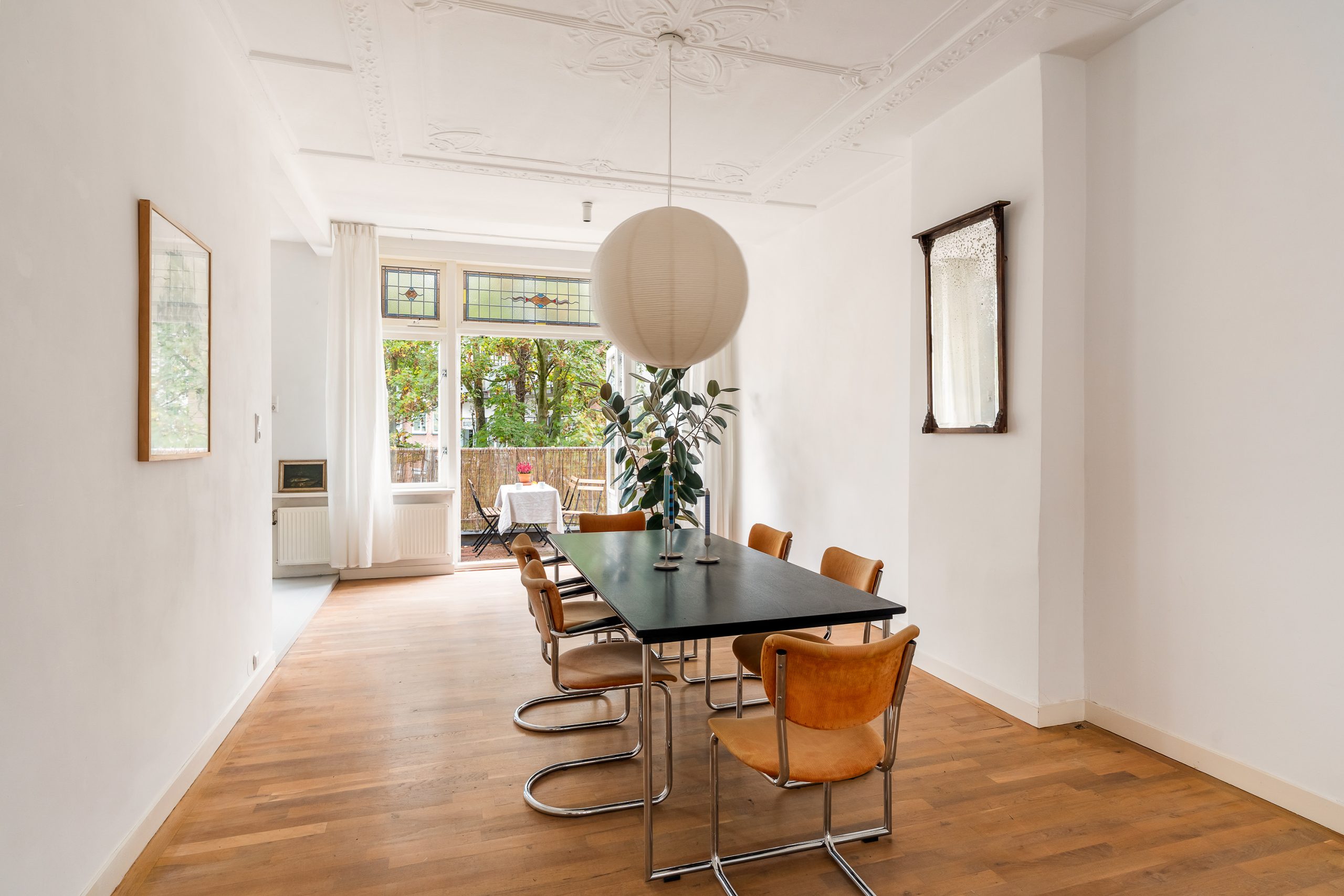 Dubbel boven wonen met karakter én ruimte in het Nieuwe Westen! Wat een fantastische woning is dit. Deze dubbele bovenwoning van maar liefst 143 m² ademt sfeer, licht en karakter. Verdeeld over twee verdiepingen, met twee keukens, twee badkamers, vier balkons én drie slaapkamers, biedt dit huis alle ruimte voor flexibel wonen, werken of juist samenleven met wat extra privacy. Dankzij de prachtige afwerking, hoge plafonds met ornamenten en het warme houtwerk voel je hier direct de fijne balans tussen oud en nieuw. En dat alles aan één van de mooiste lanen van het Nieuwe Westen, met uitzicht op groen en volop levendigheid om je heen. Een heerlijk thuis waar je elke dag met plezier de deur voor opent!