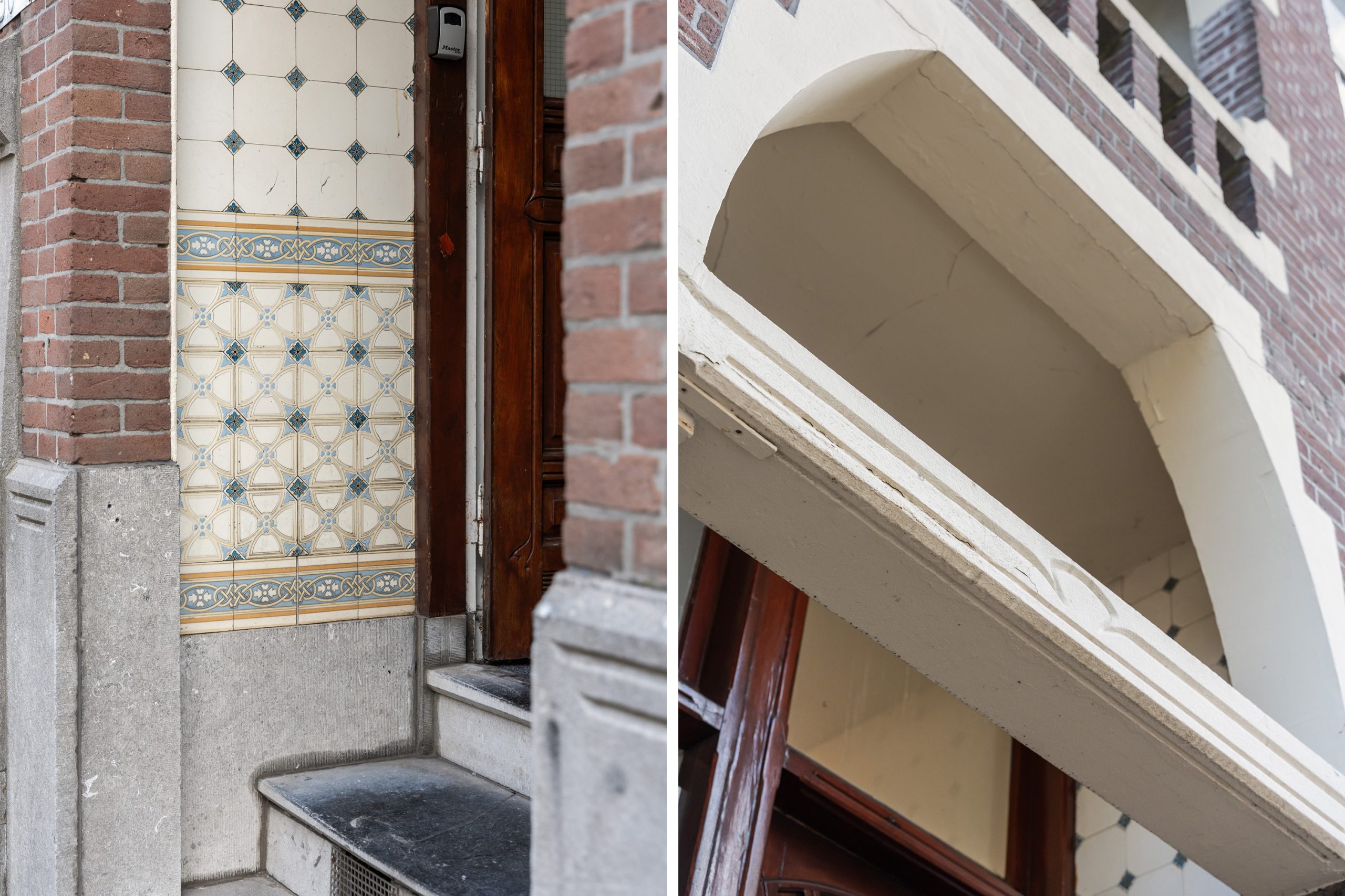 Voordeur op straatniveau met trapopgang naar de eerste verdieping waar de woning zich bevindt.