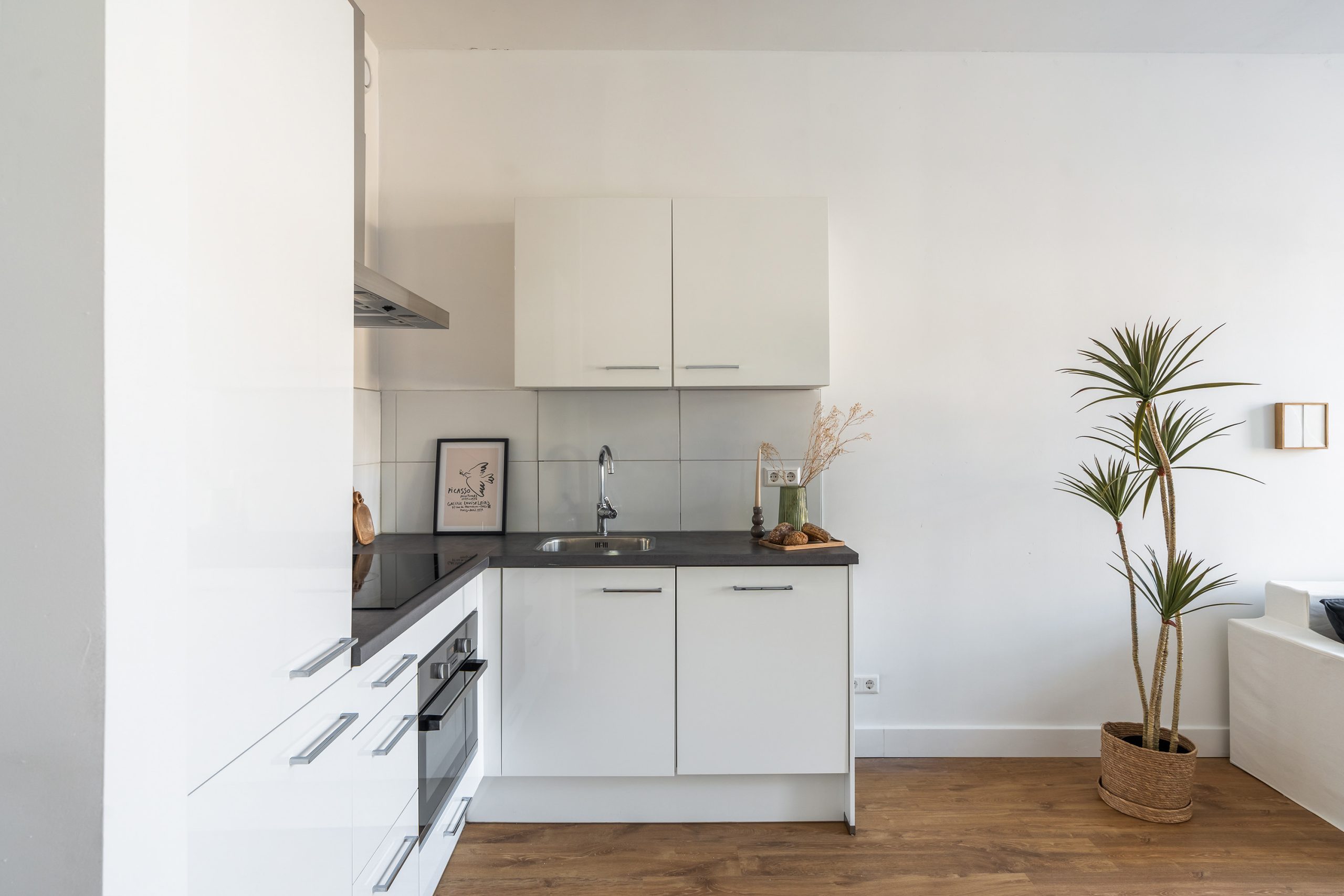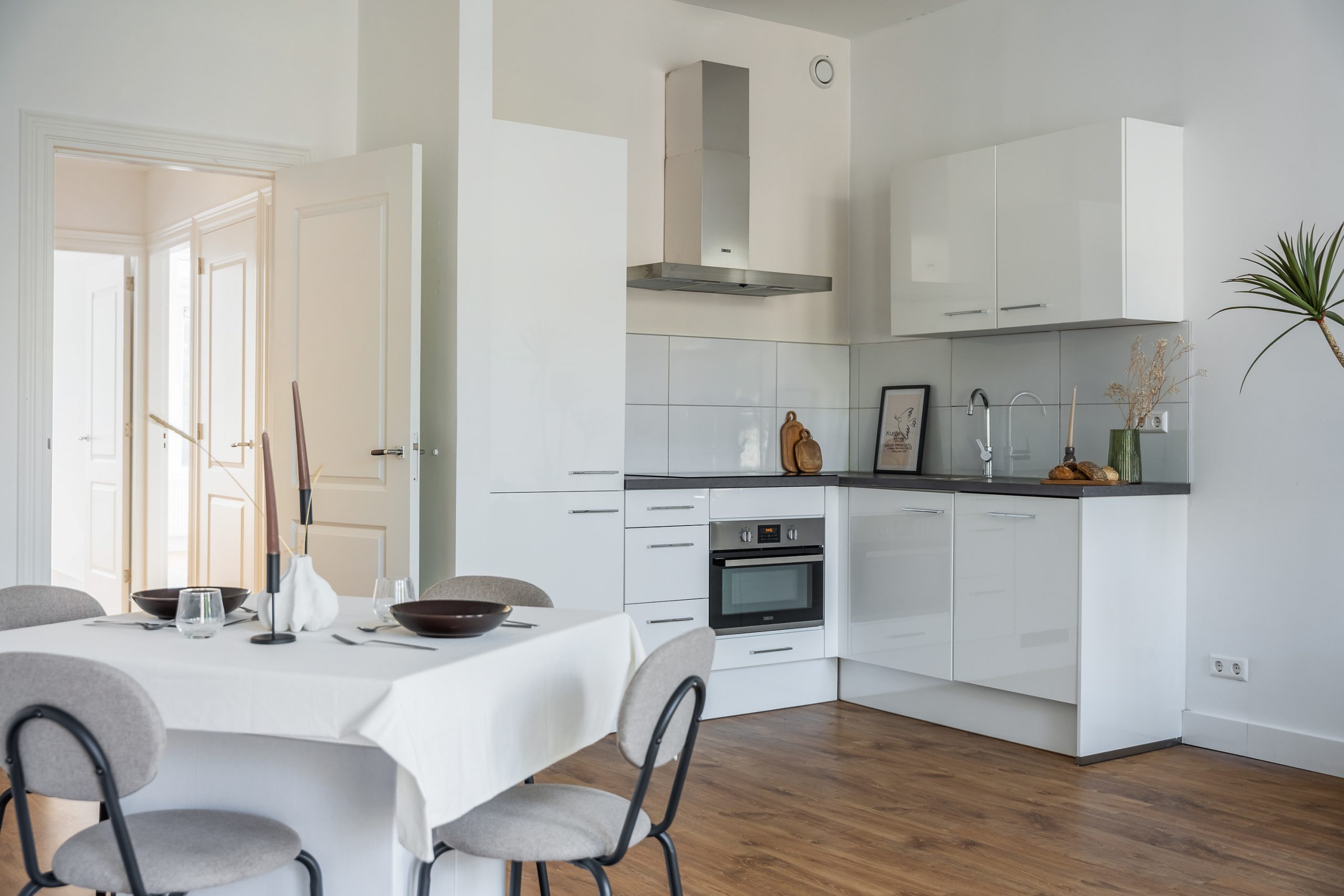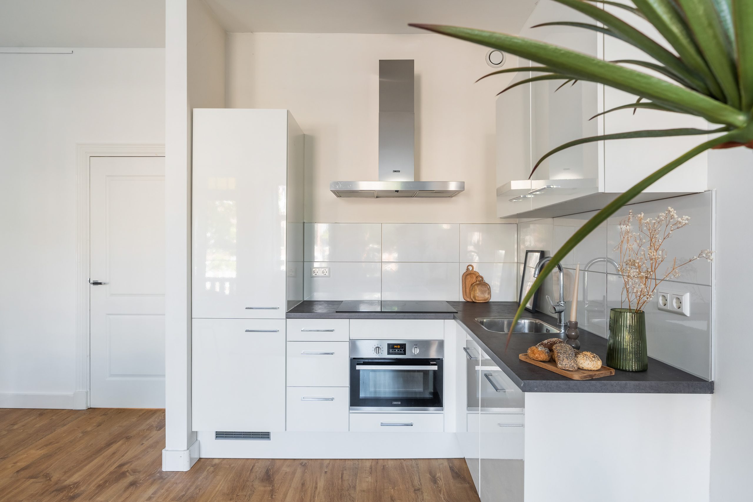 Je stapt door de voordeur direct de woonkamer binnen, wat op valt is dat deze ruimte heerlijk licht en ruim is, met grote ramen en openslaande deuren naar het balkon. De moderne open keuken is strak uitgevoerd in wit en voorzien van diverse inbouwapparatuur zoals koelkast met vriezer, vaatwasser, oven, afzuigkap en inductiekookplaat. Vanuit de woonkamer heb je toegang tot he zonnige balkon op het zuidwesten, gelegen aan de voorzijde. Perfect voor een kop koffie in de ochtend of een borrel in de namiddag.