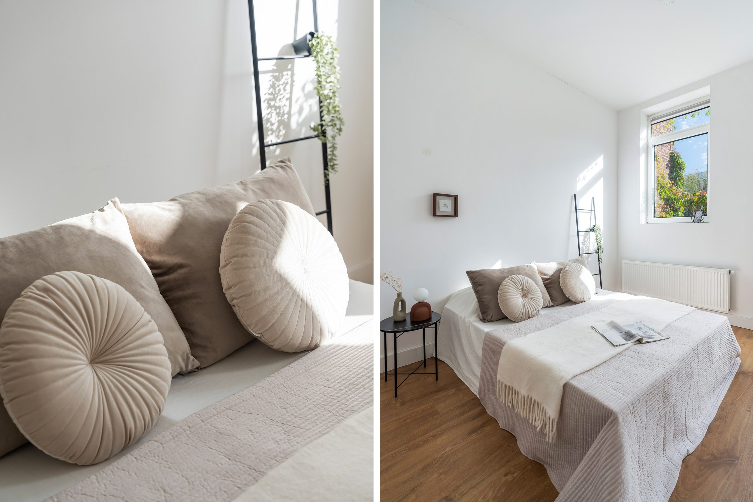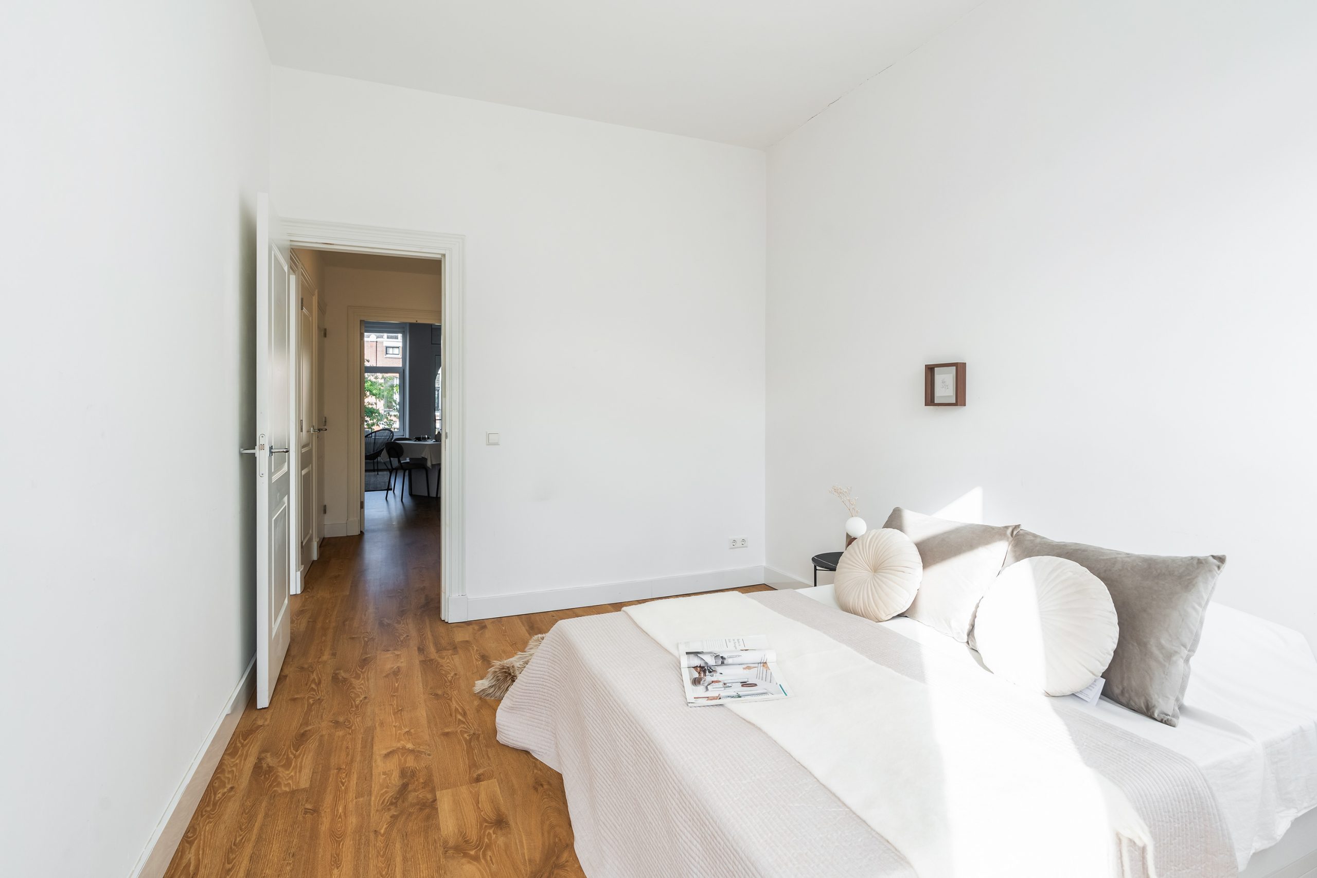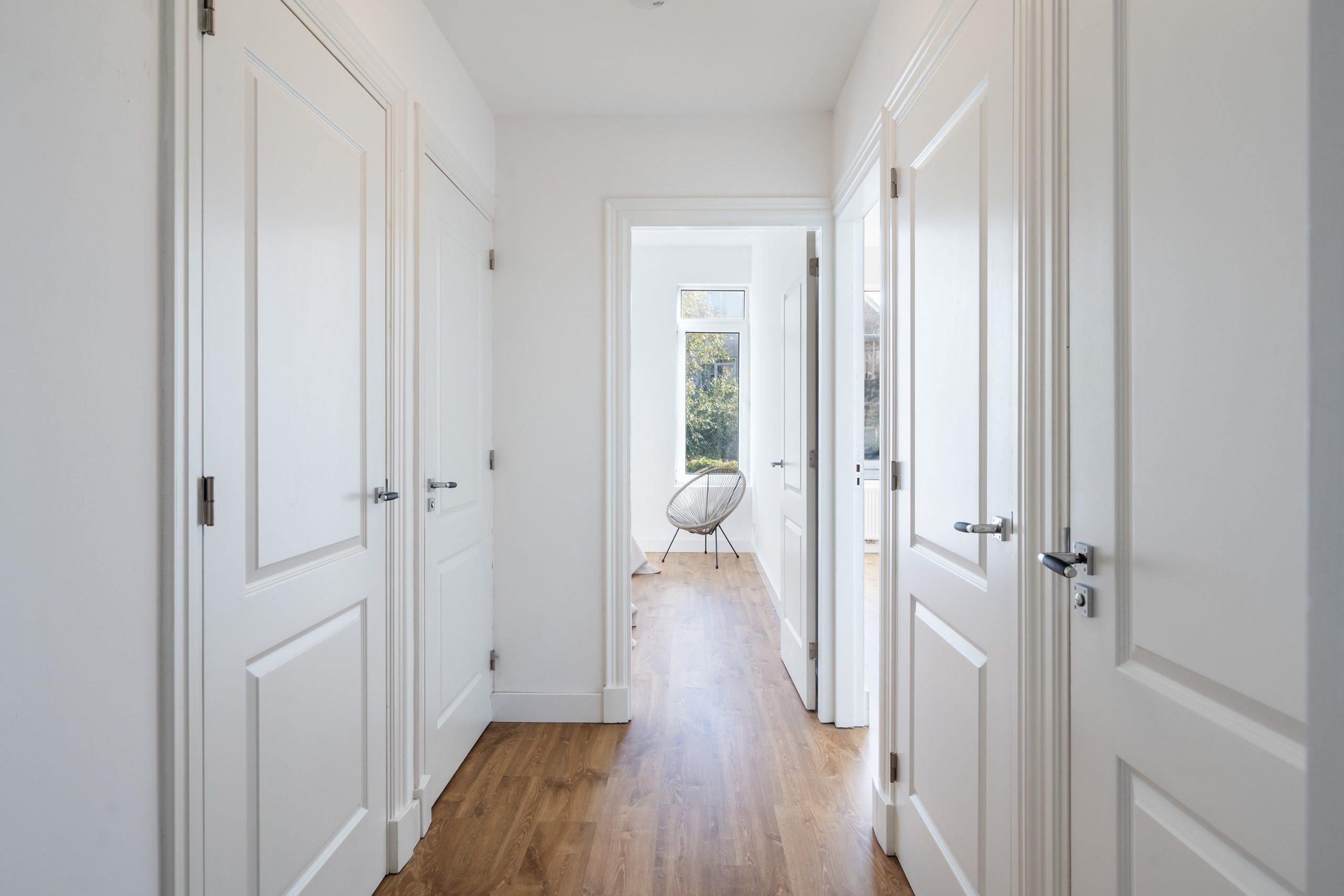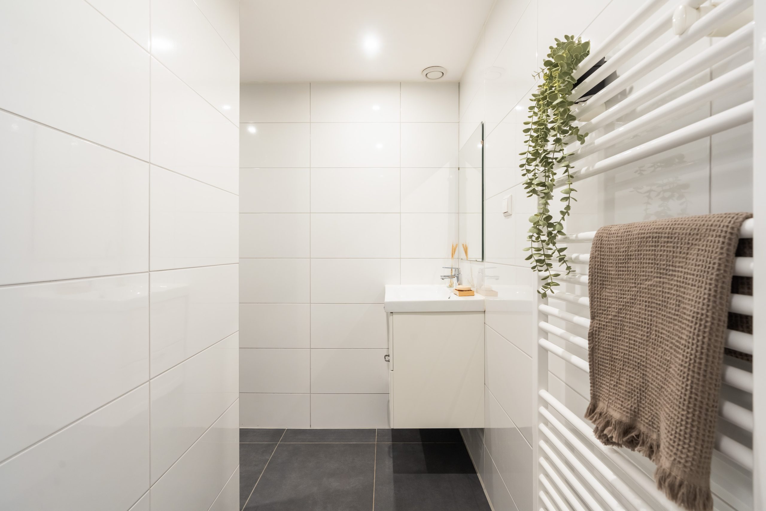 Vanuit de hal heb je toegang tot alle overige vertrekken. Het appartement beschikt over twee slaapkamers: de ruime hoofdslaapkamer en een tweede kamer die compleet naar wens in te richten is. bijvoorbeeld als logeer- of werkkamer. De badkamer is modern en fris, voorzien van een inloopdouche, wastafelmeubel en nette betegeling. Daarnaast is er een separaat toilet en handige wasruimte in de hal te vinden.