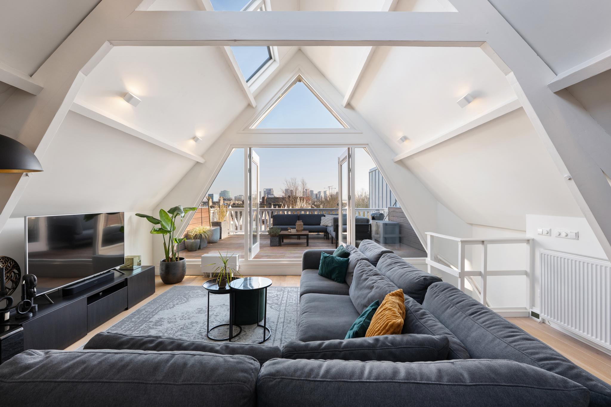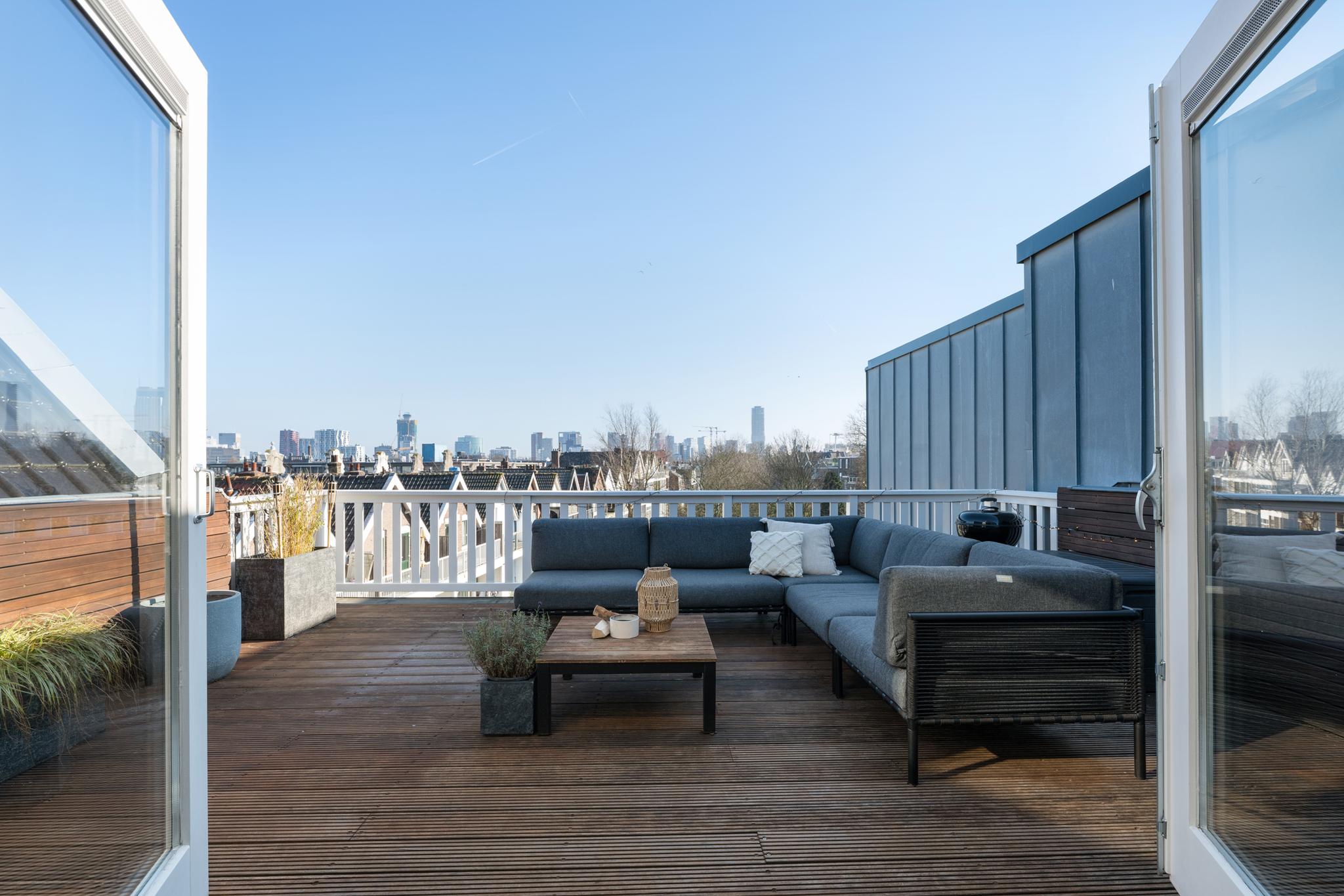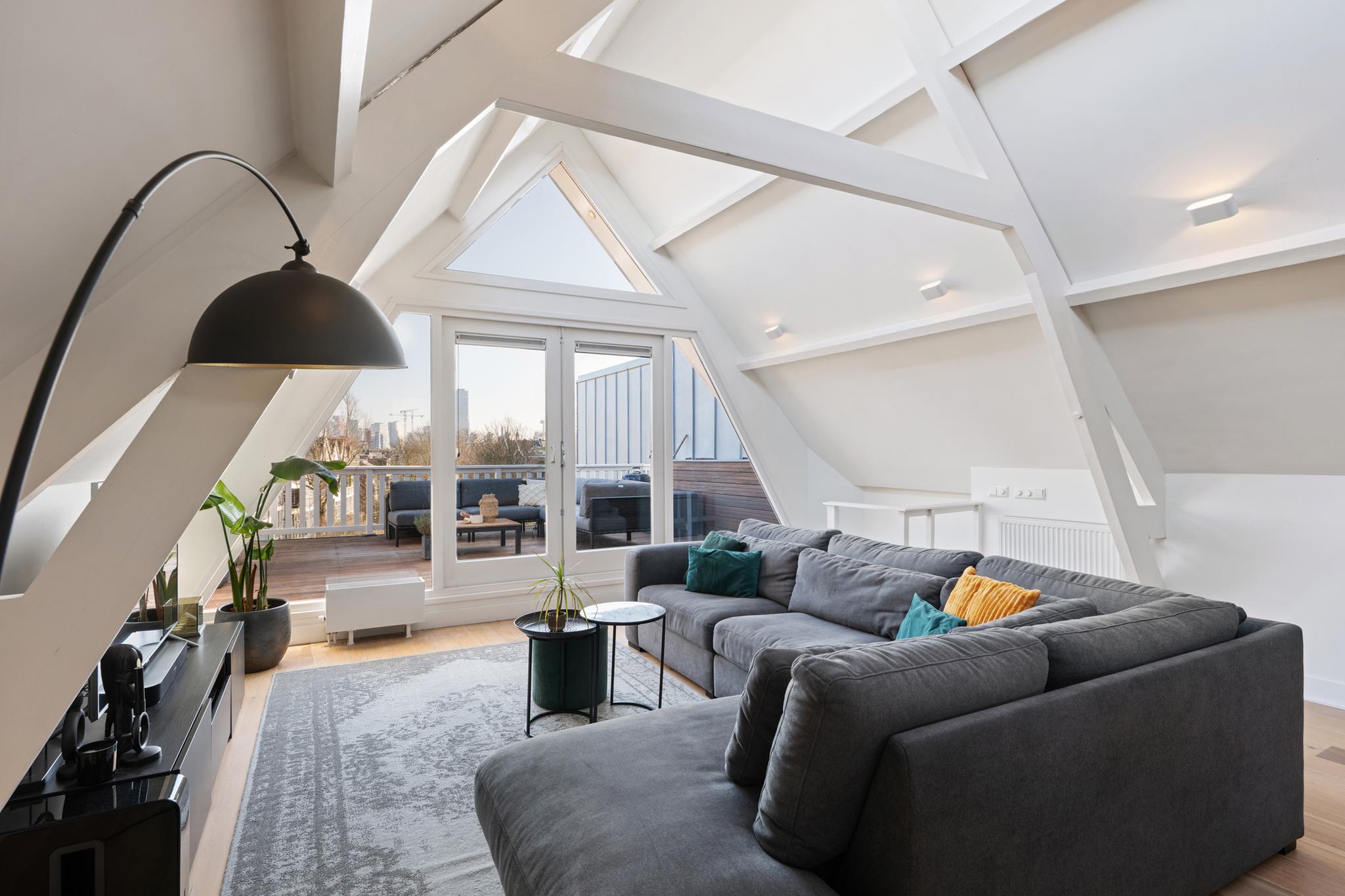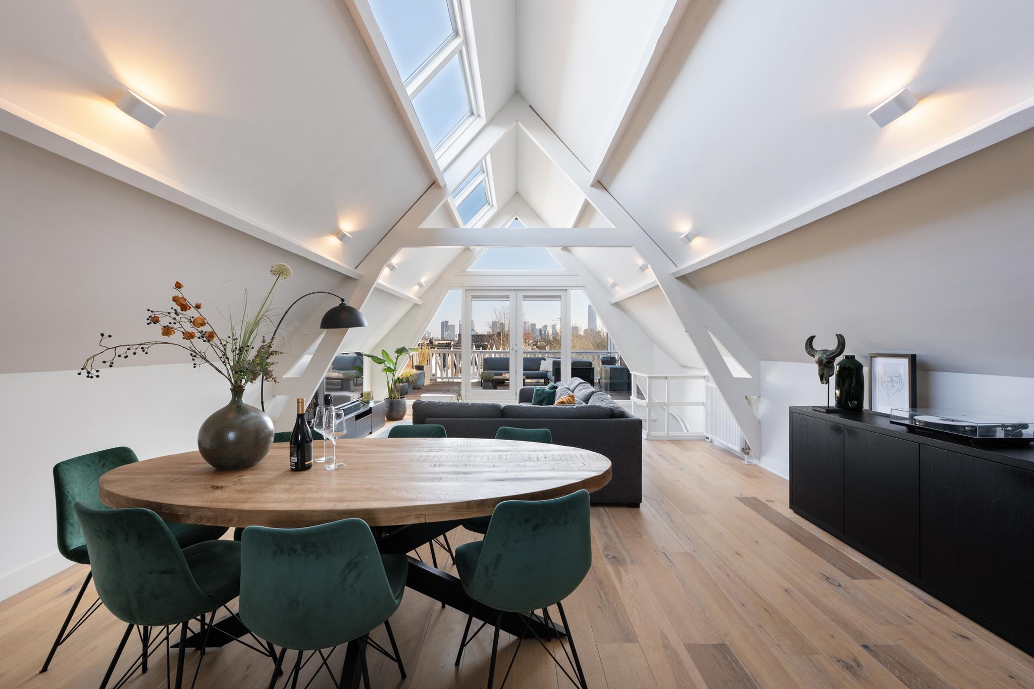 Luxe wonen met een ruim terras met uitzicht over de skyline van Rotterdam! Exclusief wonen op niveau in het hart van Rotterdam, deze hoogwaardige bovenwoning combineert ruimte, comfort en stijl op een unieke manier! Met een perfect woonoppervlak van ca. 126 m², energielabel A, drie ruime slaapkamers, een balkon en een schitterend zonneterras is hier aan alles gedacht. De unieke charme van deze woning komt tot uiting in de prachtige houten balken, schuine daken en de royale open keuken met panoramisch zicht over de stad. Een exclusieve stadswoning om van te dromen!