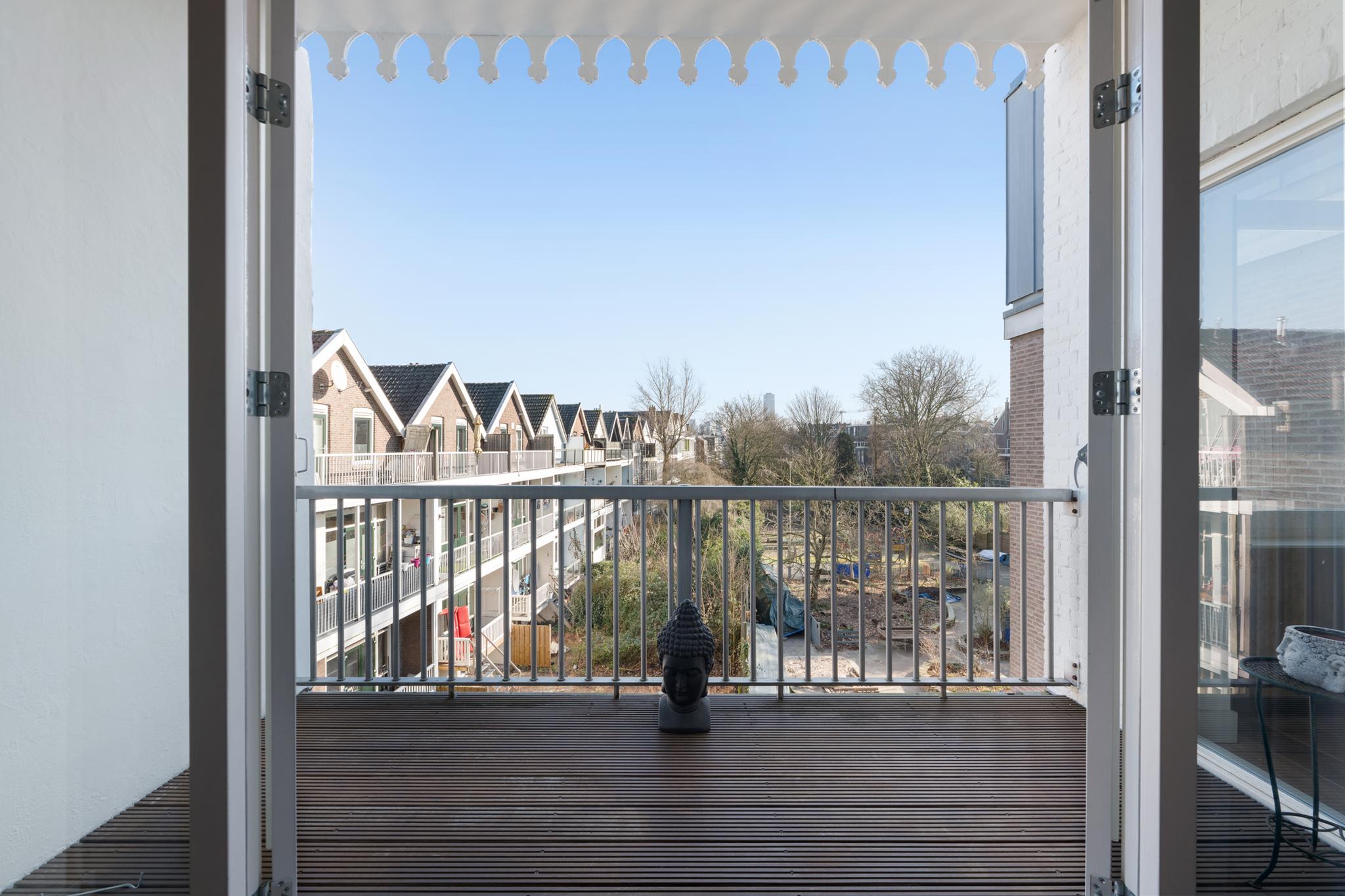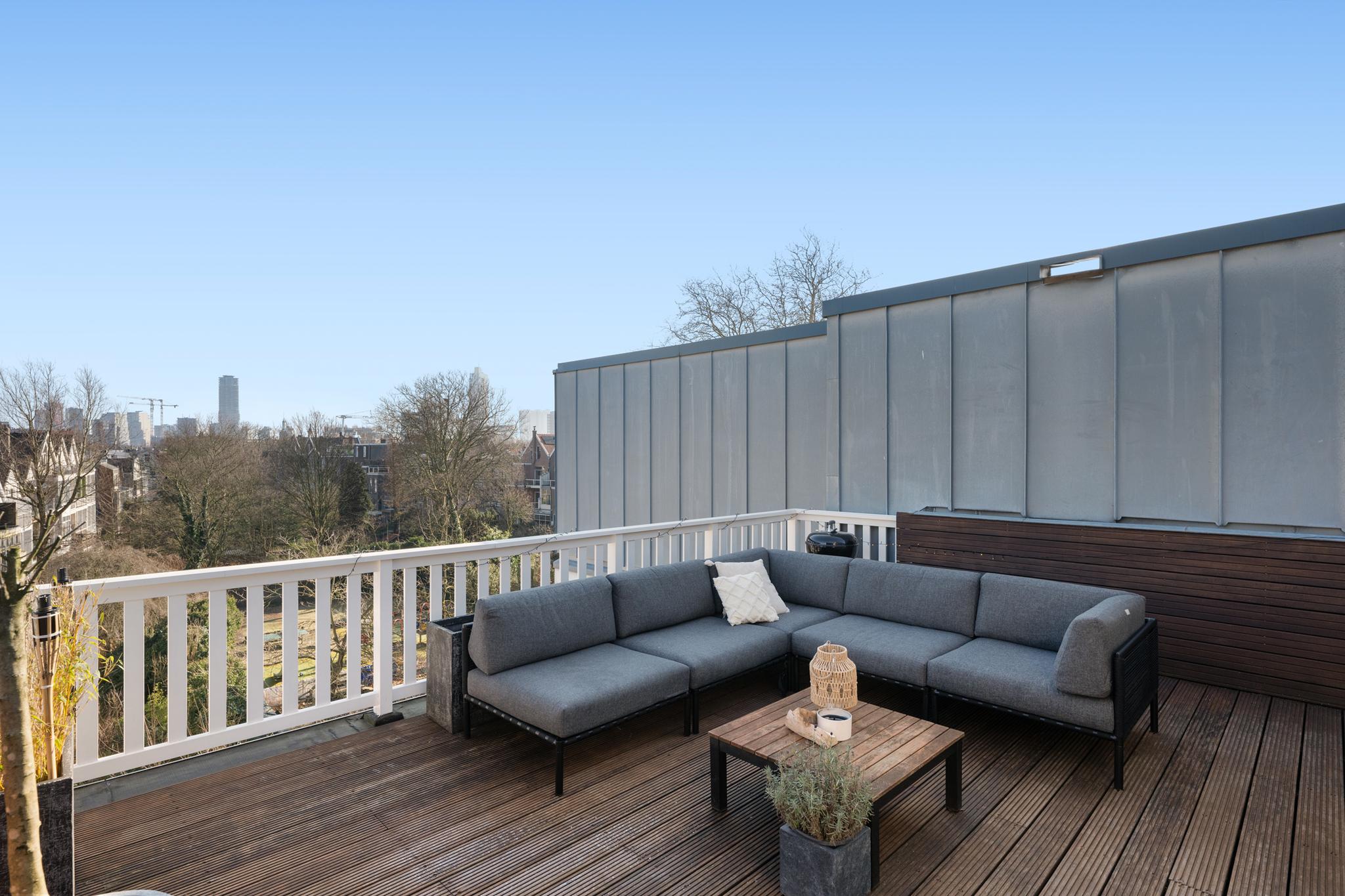 De zithoek, direct grenzend aan het zonovergoten terras, nodigt uit tot ontspannen. Dit fraai aangelegde terras vormt een verlengstuk van de woonkamer en biedt een ideale plek om te genieten van de eerste zonnestralen. Richt het naar wens in met een loungehoek of een sfeervolle tuintafel en bewonder het uitzicht over de skyline van Rotterdam. Een droomterras waar je optimaal kunt genieten van het stadsleven!