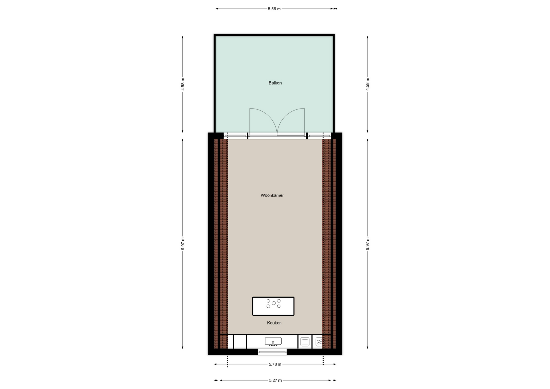 Voor de afmetingen en indeling zie onze gedetailleerde plattegrond.