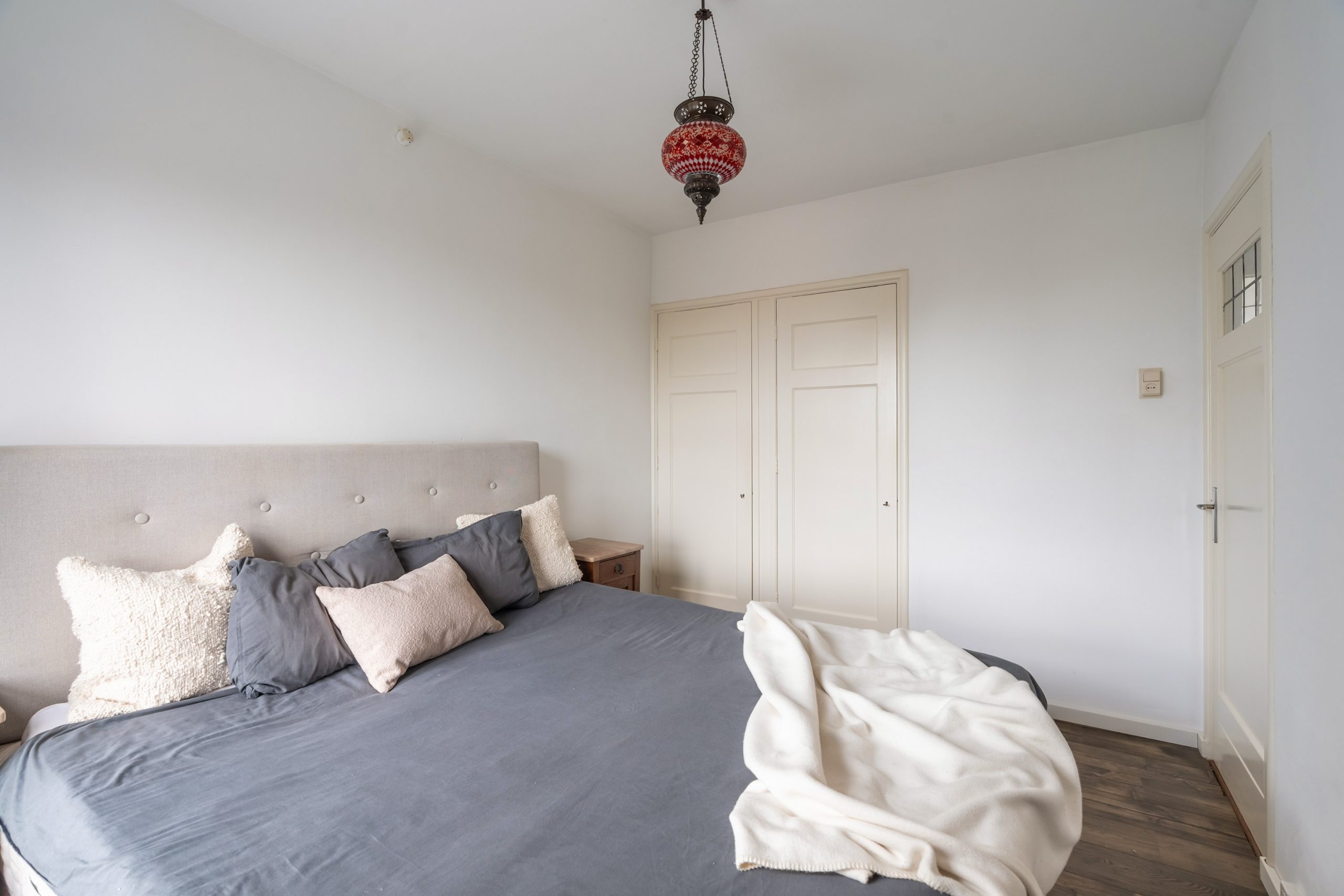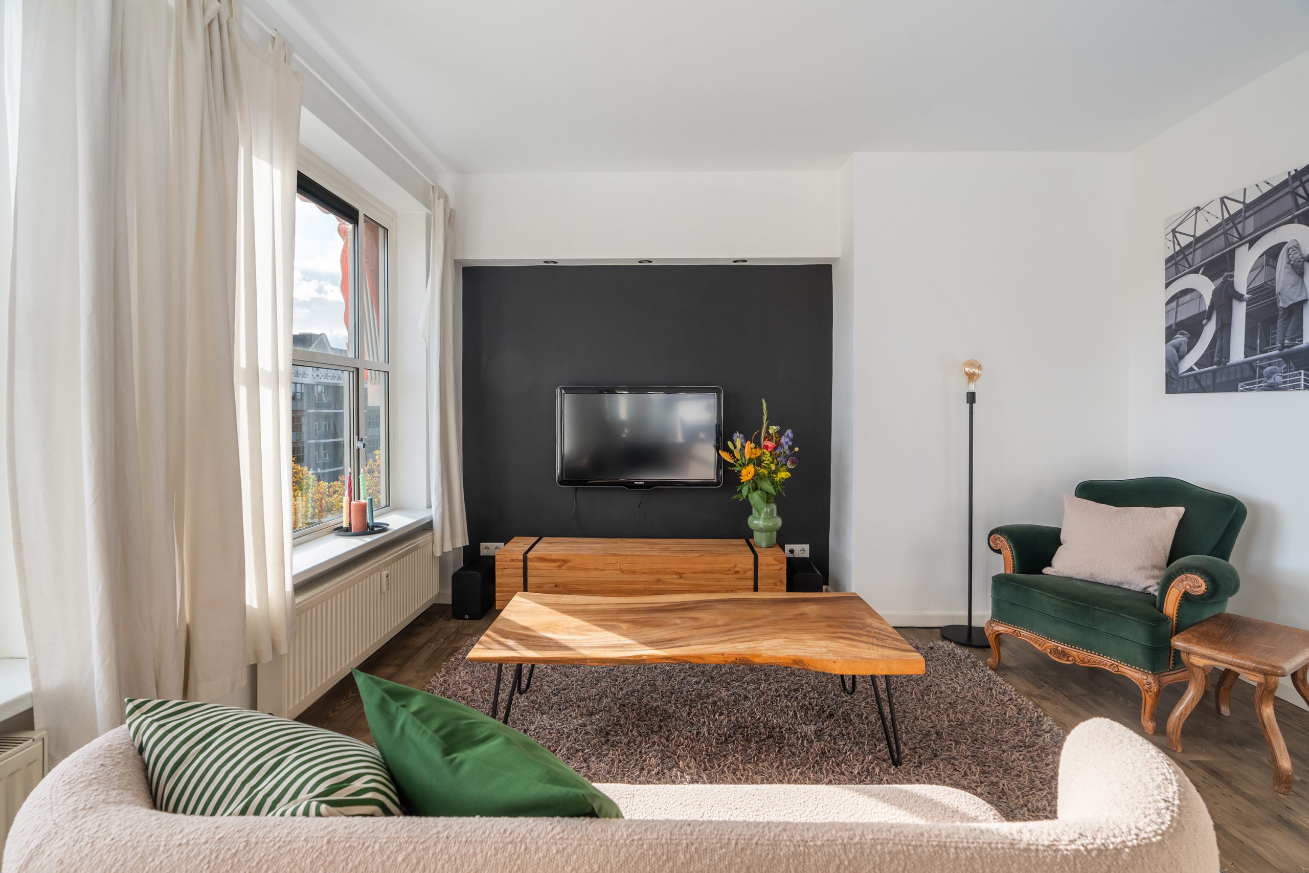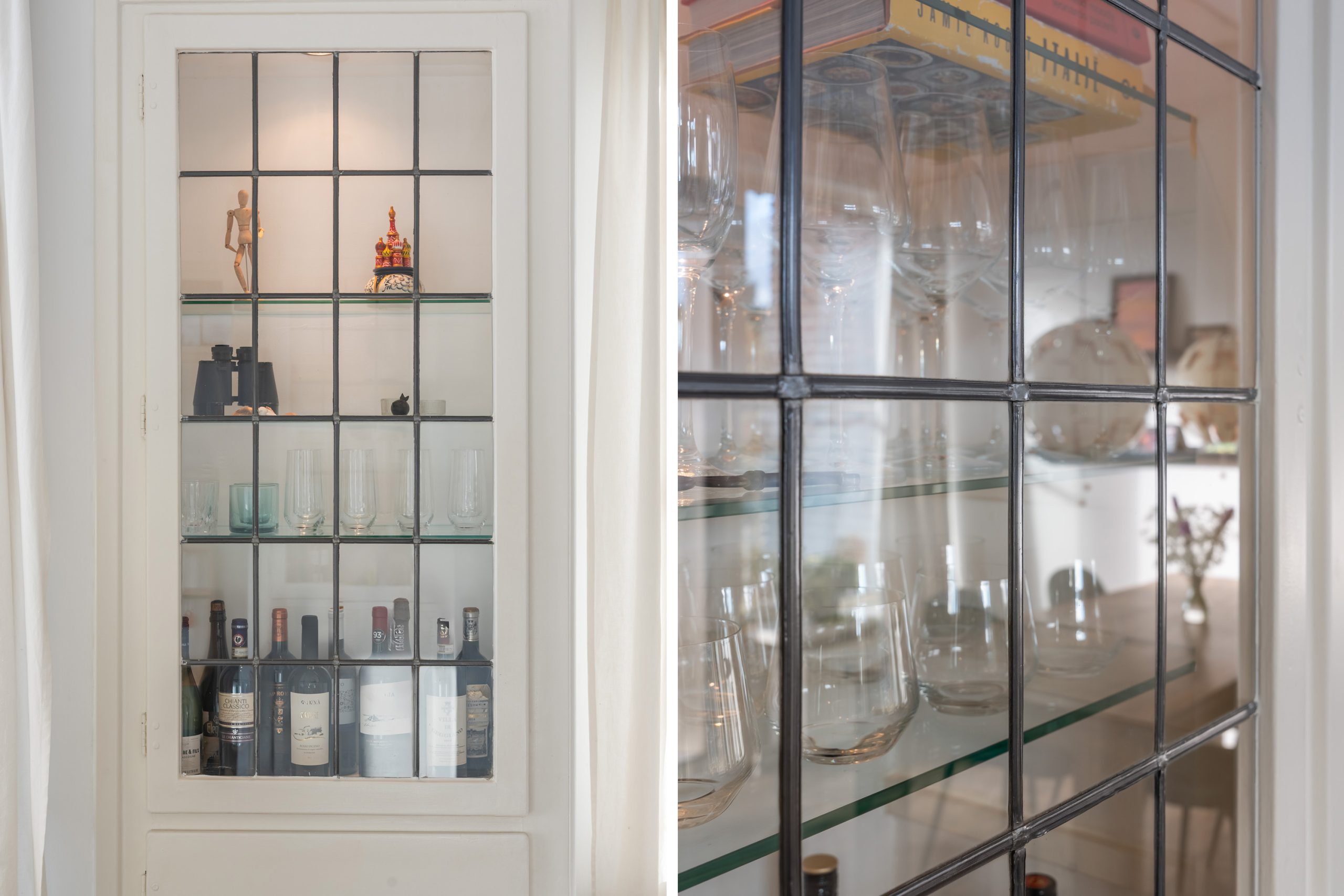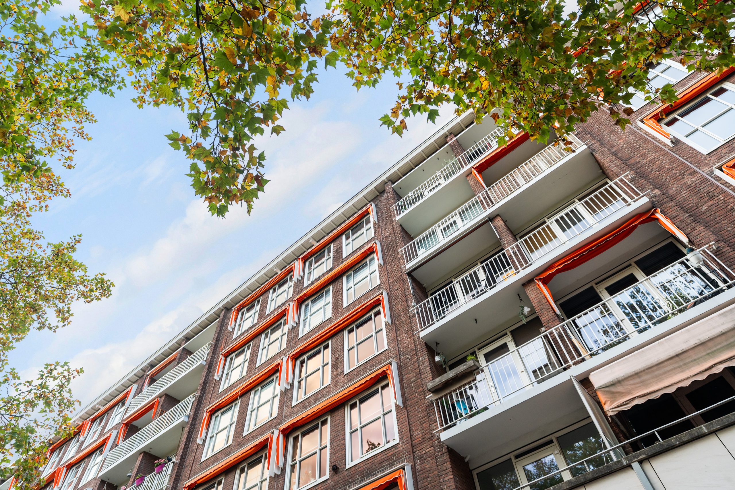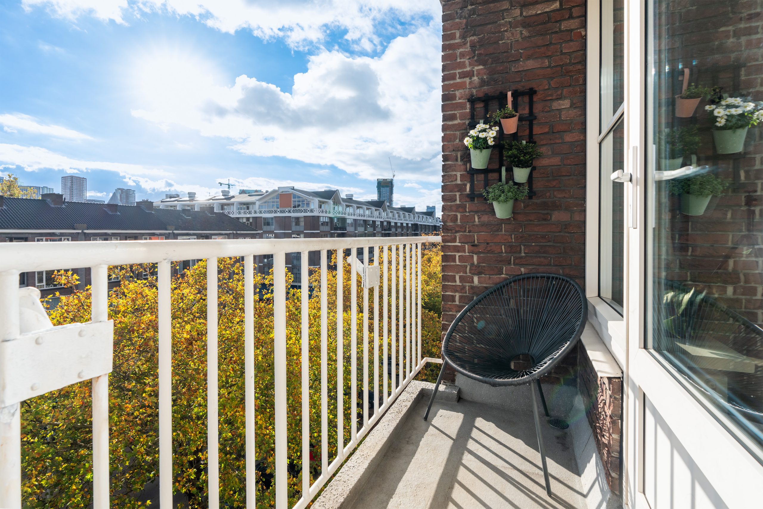 Binnenkomend in de entree die toegang geeft tot de verschillende vertrekken. Bij het binnenkomen in de woonkamer word je meteen verrast door de overvloed aan natuurlijk licht. Een fijne ruimte waar de laminaatvloer en de originele inbouwkasten met glas-in-lood mooi tot hun recht komen in het daglicht. Een lange eettafel of een grote zithoek? Hier kan het allemaal! Doordat de woonkamer is uitgestrekt over de volledige breedte van de woning richt je deze flexibel en geheel naar wens in. Hiervandaan heb je ook toegang tot het heerlijke balkon op het zuiden. Een fijne eigen buitenruimte met zon van ’s ochtends vroeg tot ’s avonds laat onder het genot van de echte stadse sferen.