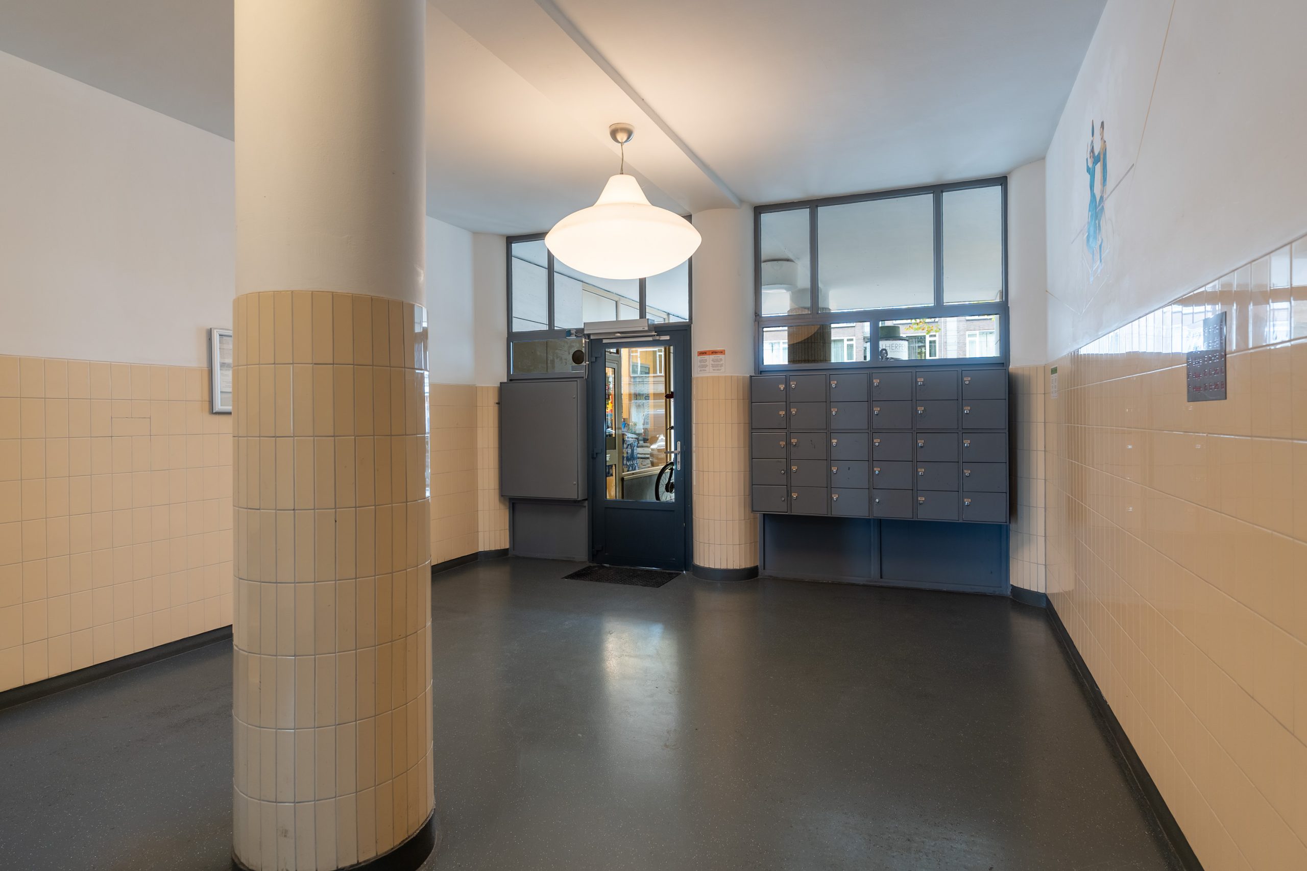 Gezamenlijke entree met brievenbussen en bellentableau. Het appartement is te bereiken middels het trappenhuis en de lift.