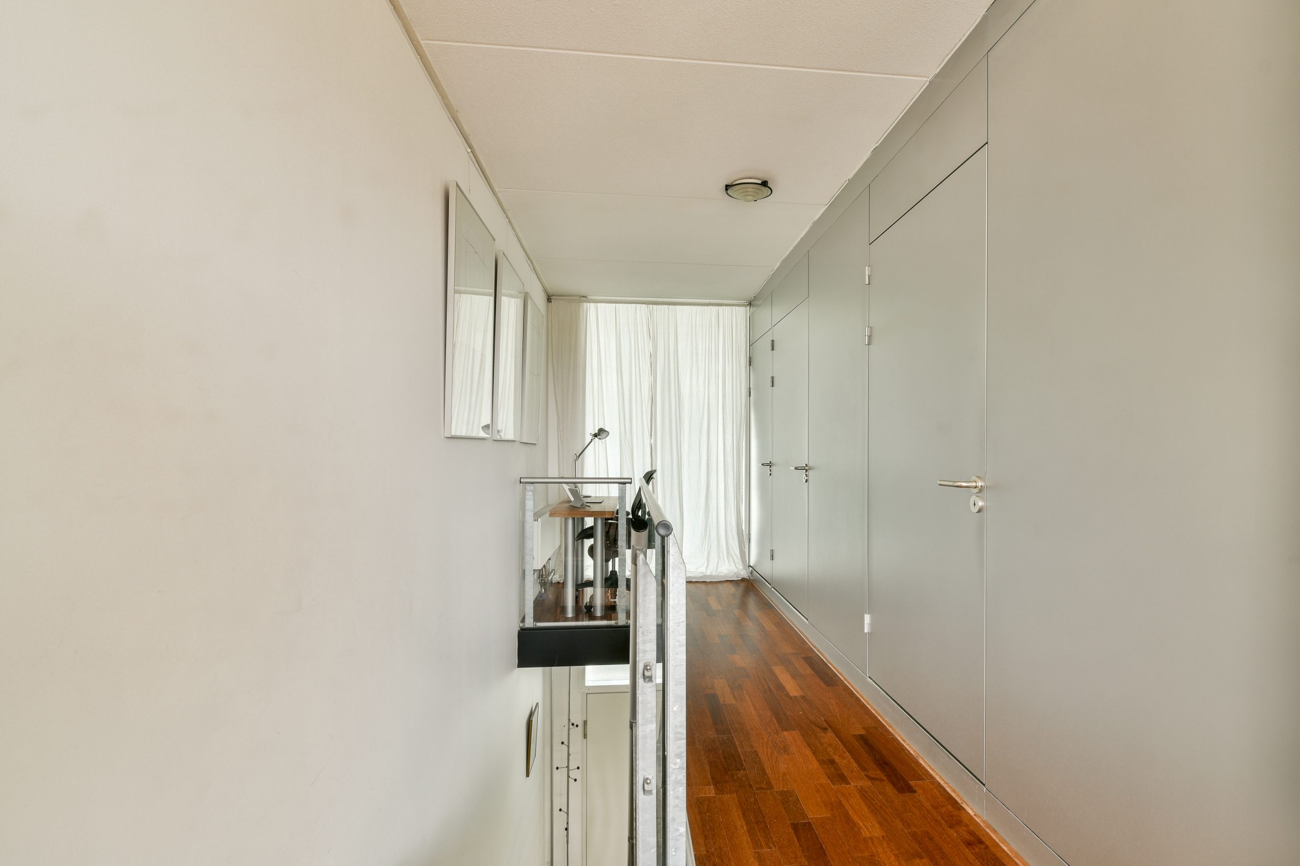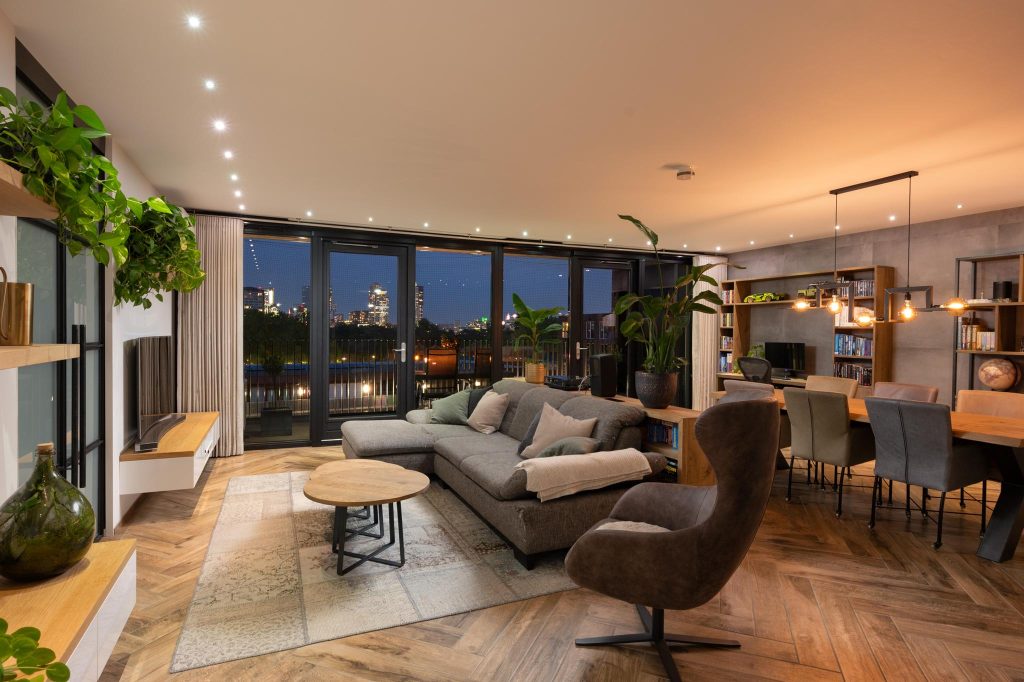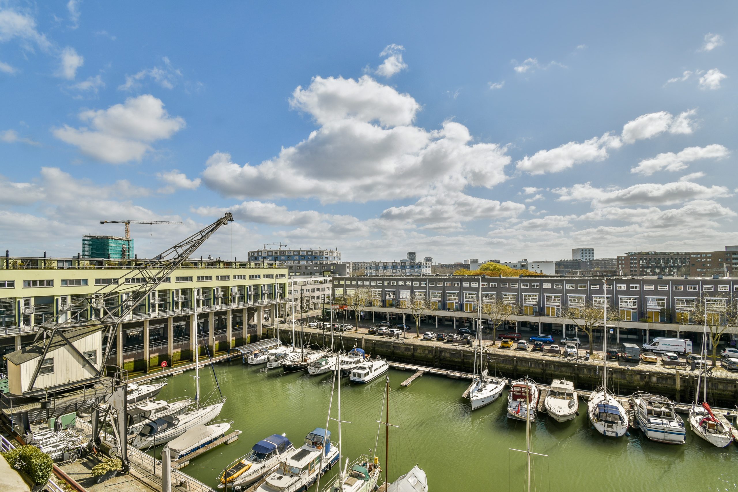 Stap binnen in deze unieke maisonnette waar iedere woonlaag zijn eigen charme heeft. Op de derde verdieping vormt de verhoogde zithoek een intieme loungeplek met uitzicht over het water, terwijl de open keuken en royale eethoek uitnodigen tot samenkomen. Eén verdieping hoger ontvouwt zich een serene leefruimte met een zonnig privéterras van 22 m² en een tweede zithoek vol licht. De slaapkamer biedt rust, de badkamer doet denken aan een luxe kajuit. Met een eigen parkeerplaats en berging is ook aan praktisch comfort gedacht.