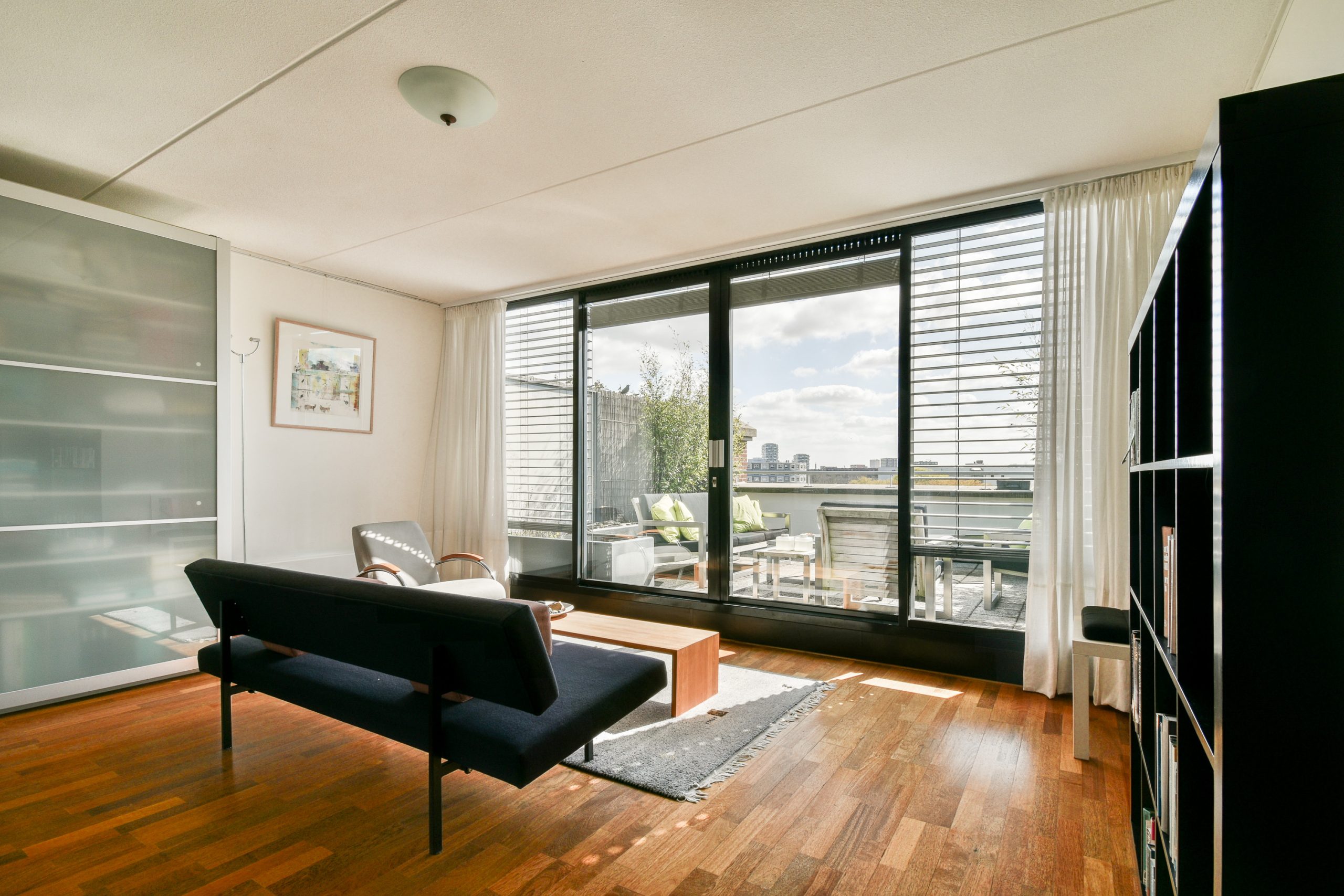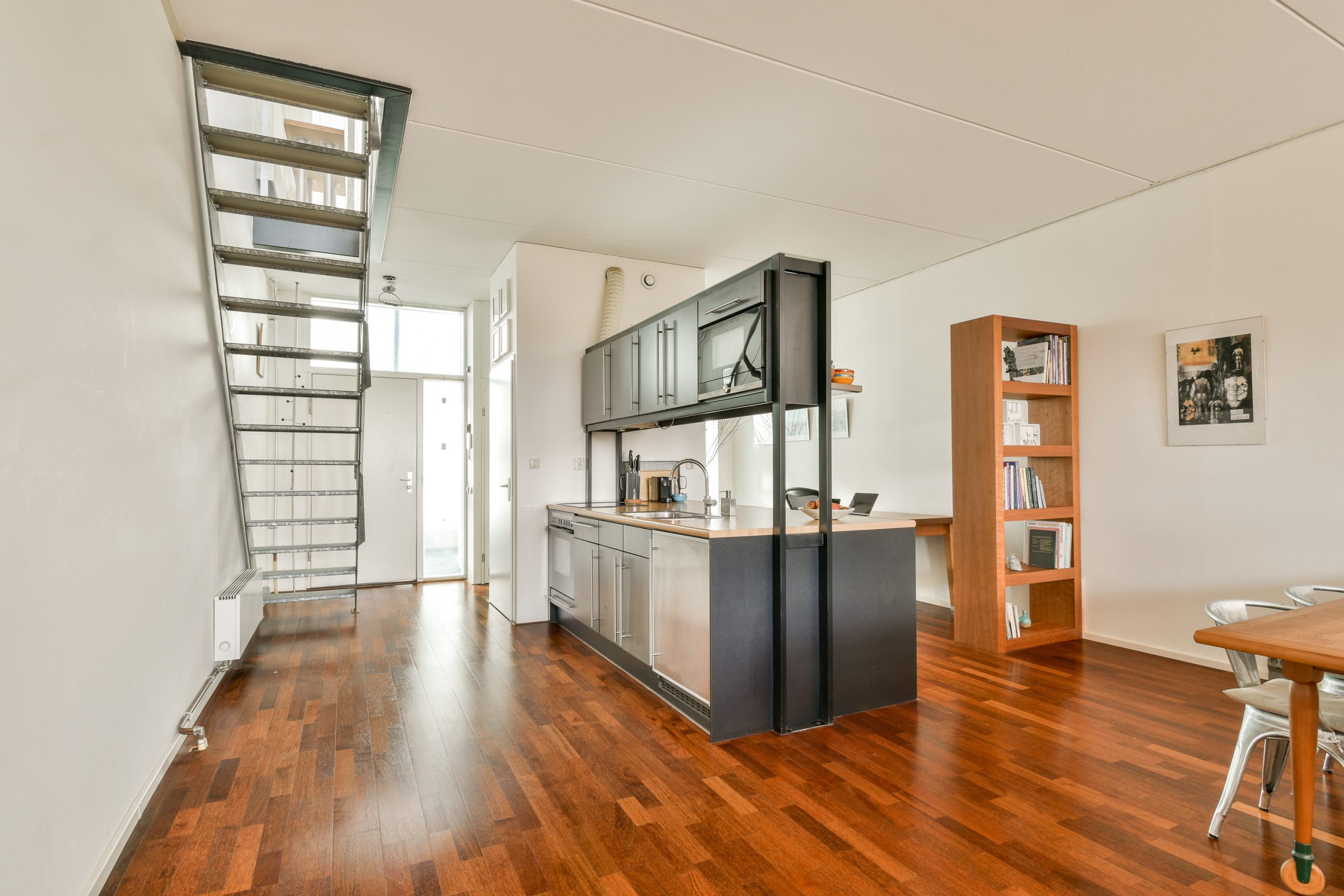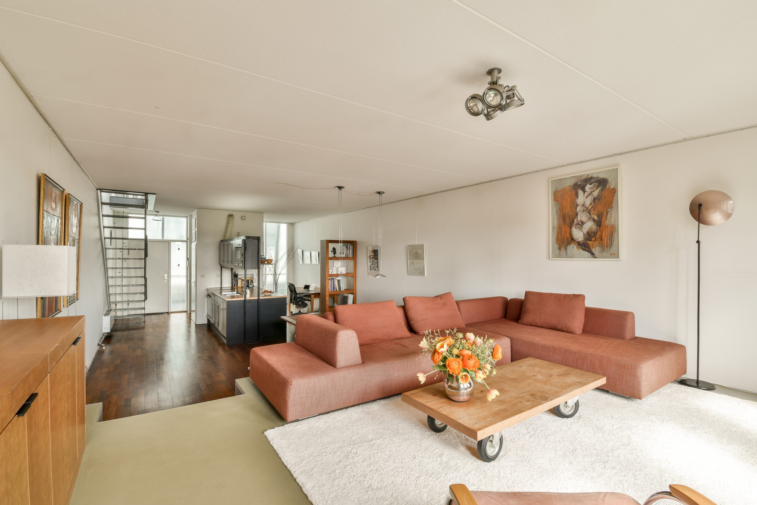 Stap binnen in deze unieke maisonnette waar iedere woonlaag zijn eigen charme heeft. Op de derde verdieping vormt de verhoogde zithoek een intieme loungeplek met uitzicht over het water, terwijl de open keuken en royale eethoek uitnodigen tot samenkomen. Eén verdieping hoger ontvouwt zich een serene leefruimte met een zonnig privéterras van 22 m² en een tweede zithoek vol licht. De slaapkamer biedt rust, de badkamer doet denken aan een luxe kajuit. Met een eigen parkeerplaats en berging is ook aan praktisch comfort gedacht.