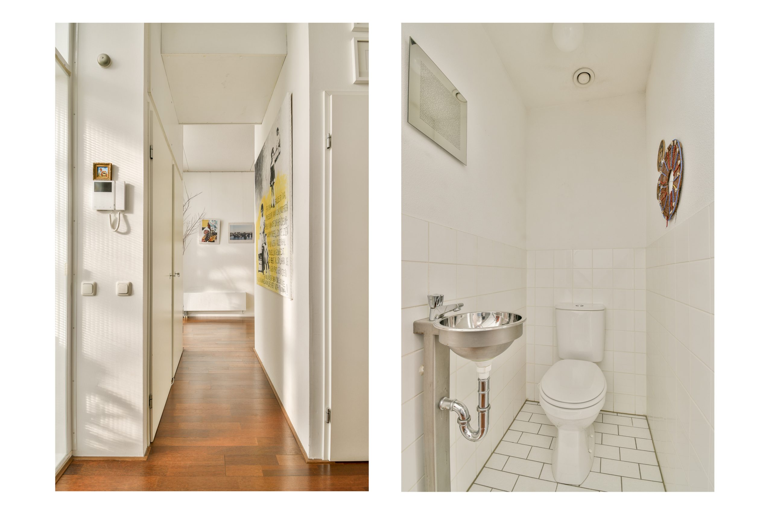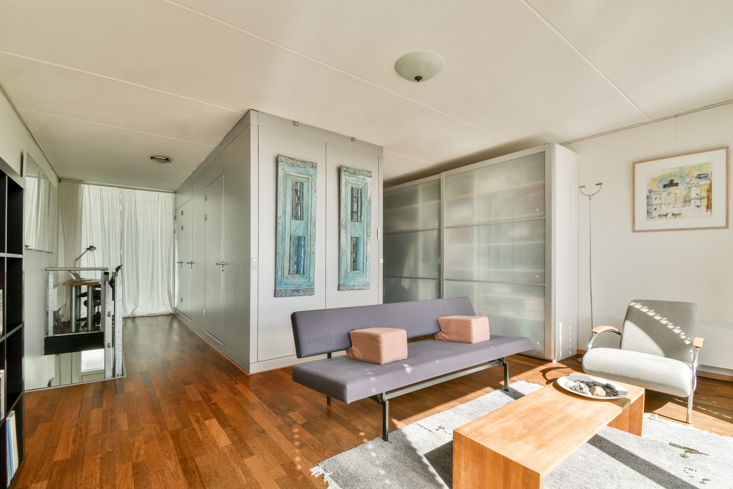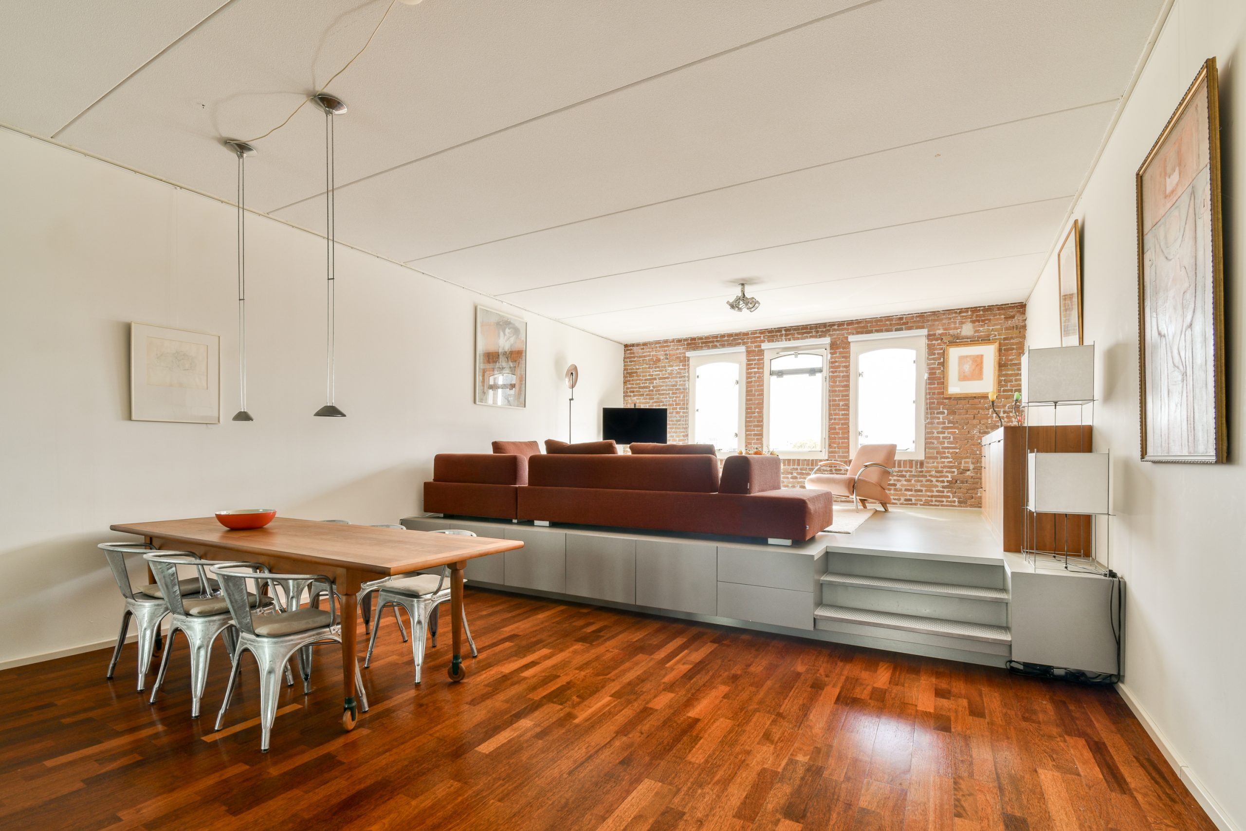 Via de galerij betreed je de woning op de derde verdieping. Centraal op deze verdieping bevindt zich de verhoogde zithoek, een verrassend speels niveauverschil met geïntegreerde kastruimte die niet alleen visueel onderscheid brengt maar ook zorgt voor een intiem loungegevoel. Vanaf deze comfortabele plek, met je blik op de karakteristieke ramen, kijk je uit over het kabbelende water en de levendige omgeving. Het is een plek waar rust en reuring elkaar ontmoeten.