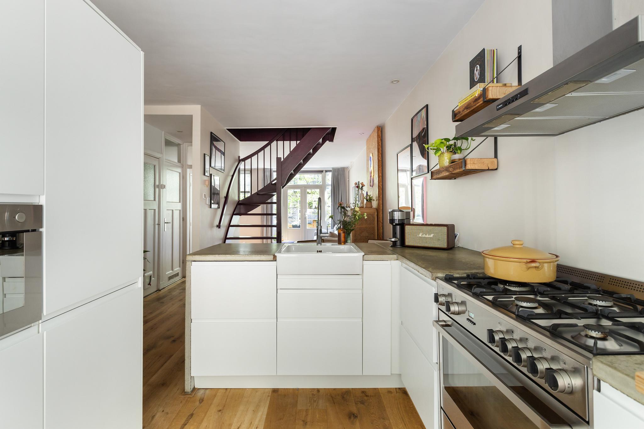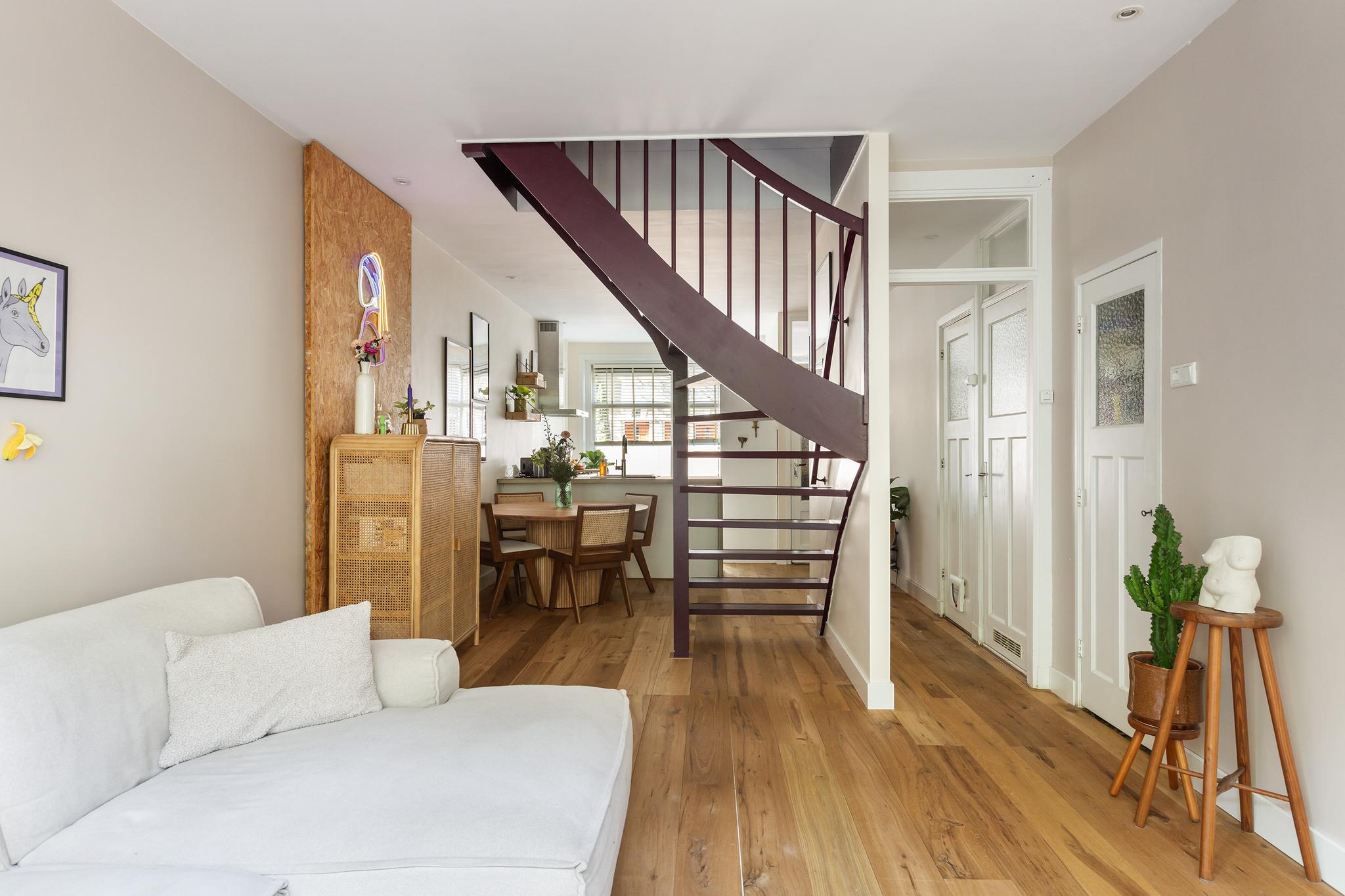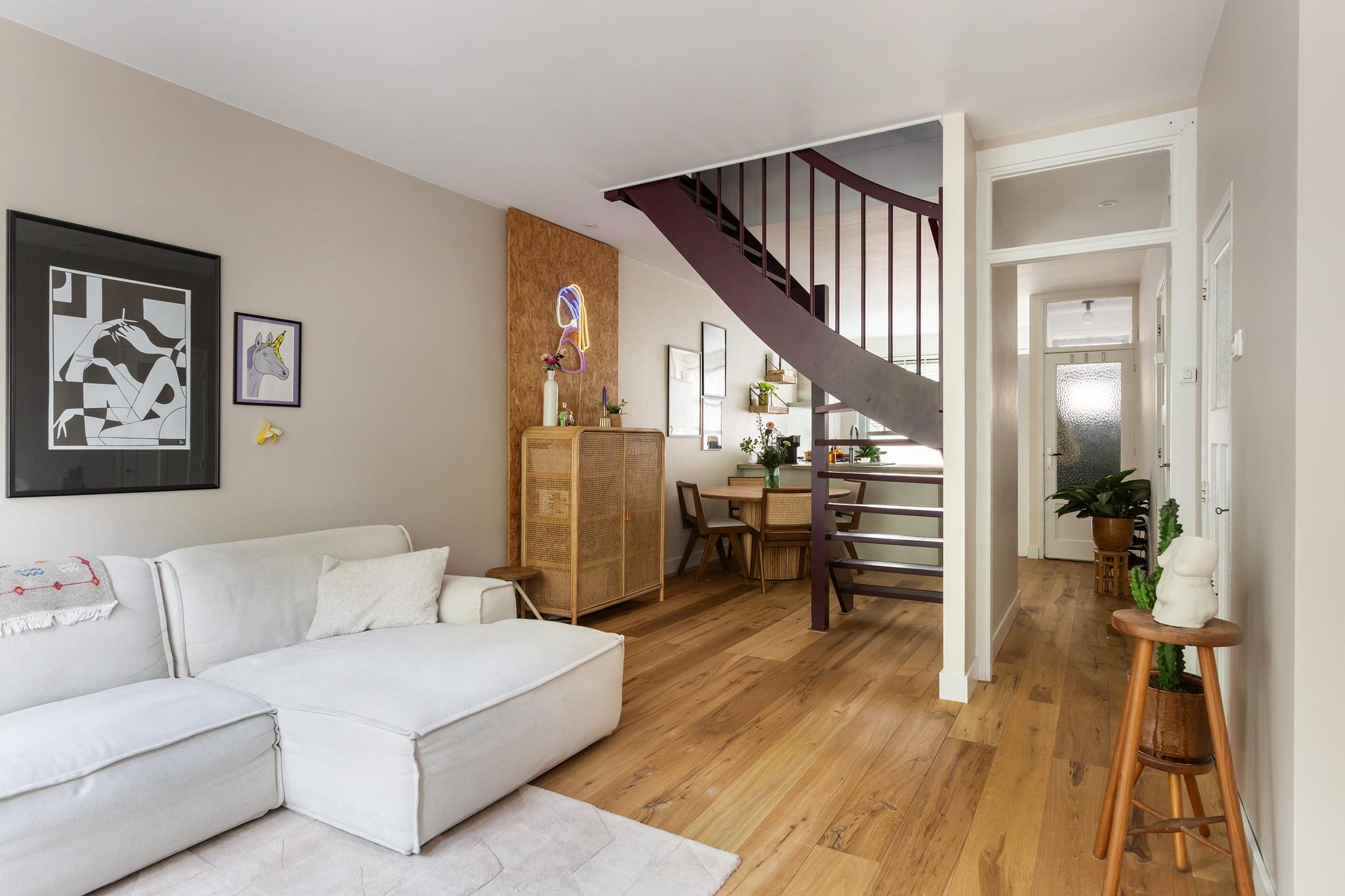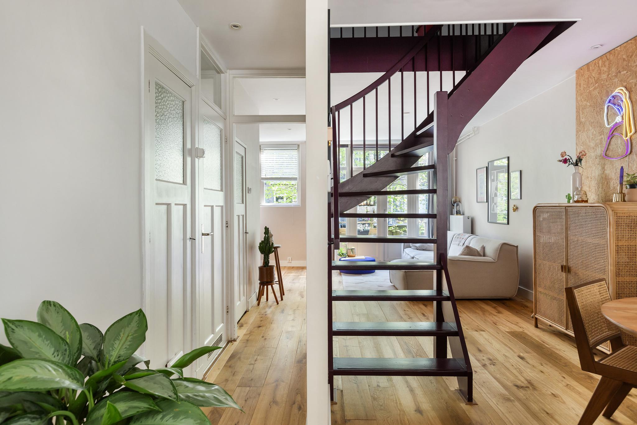 Open de voordeur naar de nette hal met originele jaren ’30 details waar ruimte is voor een garderobe. Vanuit de entree bereik je de royale living waar alles tot in de puntjes is afgewerkt. De combinatie van de strakke houten vloer en rustige wandafwerking geeft de ruimte een prettige uitstraling. Zowel de voorzijde als de achterzijde hebben grote raampartijen waardoor het gehele leefgedeelte wordt voorzien van veel licht. Aan de voorzijde bevindt zich de open keuken. Deze is opgesteld in een L-vorm en voorzien van een hoge kastenwand, waardoor er veel opbergruimte is. De keuken is compleet uitgerust met inbouwapparatuur zoals een 6-pits gasfornuis met grote oven, combi-oven, Quooker, koelkast, vriezer en vaatwasser. Ideaal voor wie graag kookt, ook voor een groter gezelschap. Wat een luxe! Direct naast de keuken is plek voor een eethoek, waar je comfortabel kunt tafelen met familie of vrienden. Het zitgedeelte aan de achterzijde sluit aan op de tuin via openslaande deuren. Hierdoor betrek je op mooie dagen eenvoudig het buitenleven bij je woonkamer. Er is ruimte genoeg voor een comfortabele zithoek waar je goed kan relaxen. De achtertuin is op het noordoosten gelegen, heeft een oppervlakte van circa 31 m2 en beschikt over een houten berging. Perfect voor opbergen van fietsen en tuingereedschap. Het verhoogde terras biedt volop ruimte voor een gezellig zitje en verleent toegang middels een trap naar het verlaagde gedeelte van de tuin. De tuin is een heerlijke plek voor een ochtendkoffie, een zomerse BBQ of om lekker te tuinieren. Een echte stadse parel!