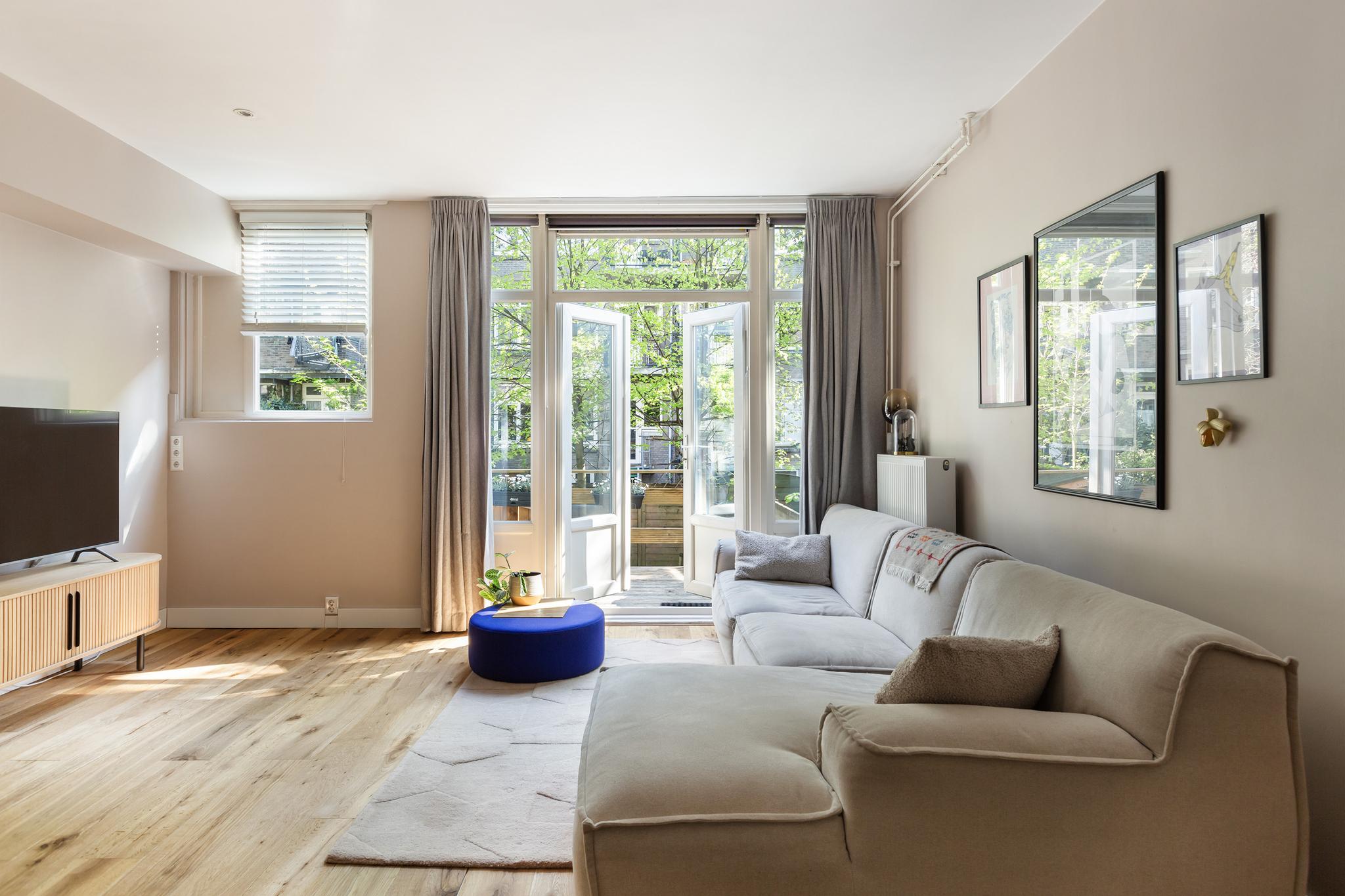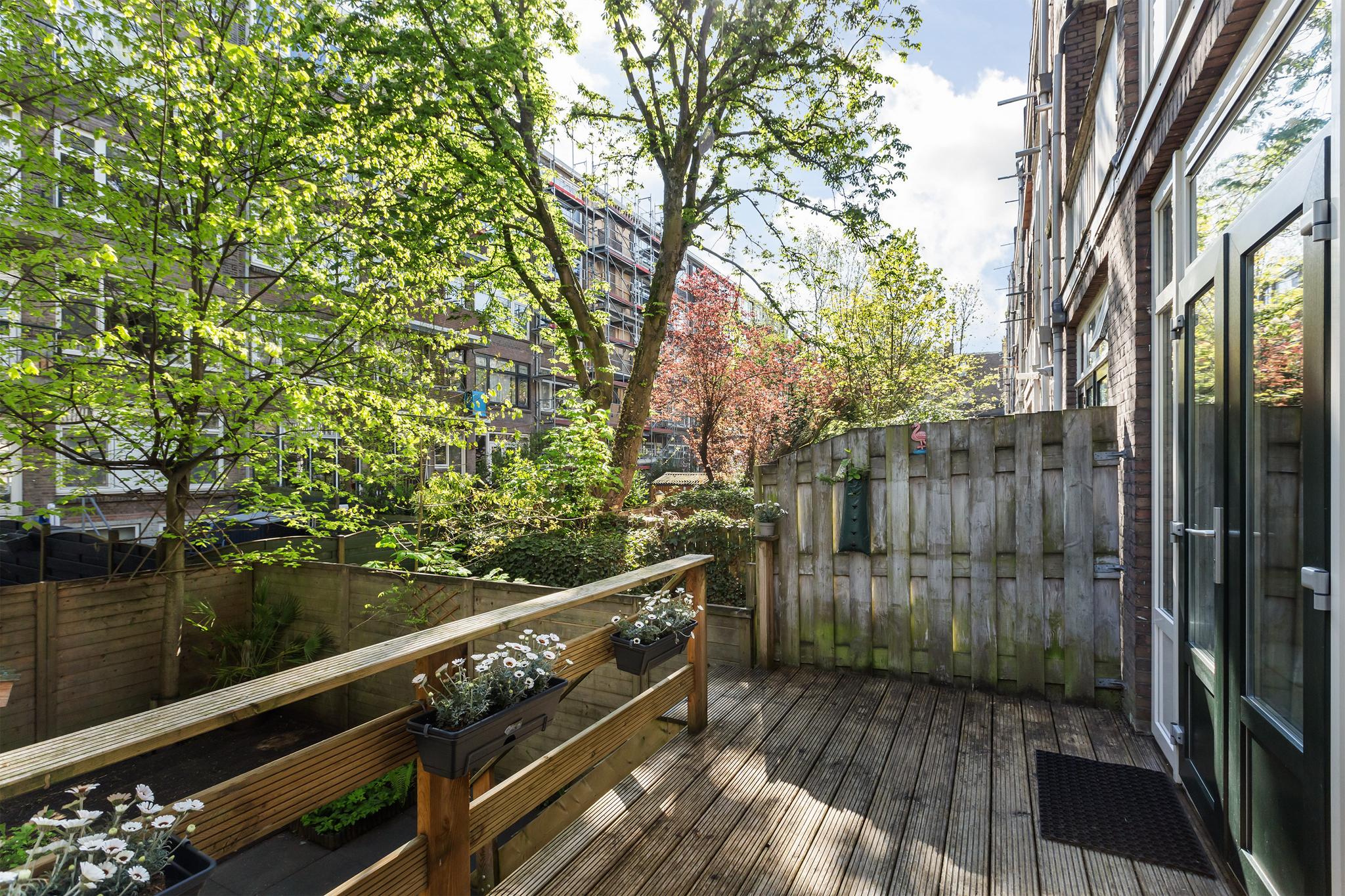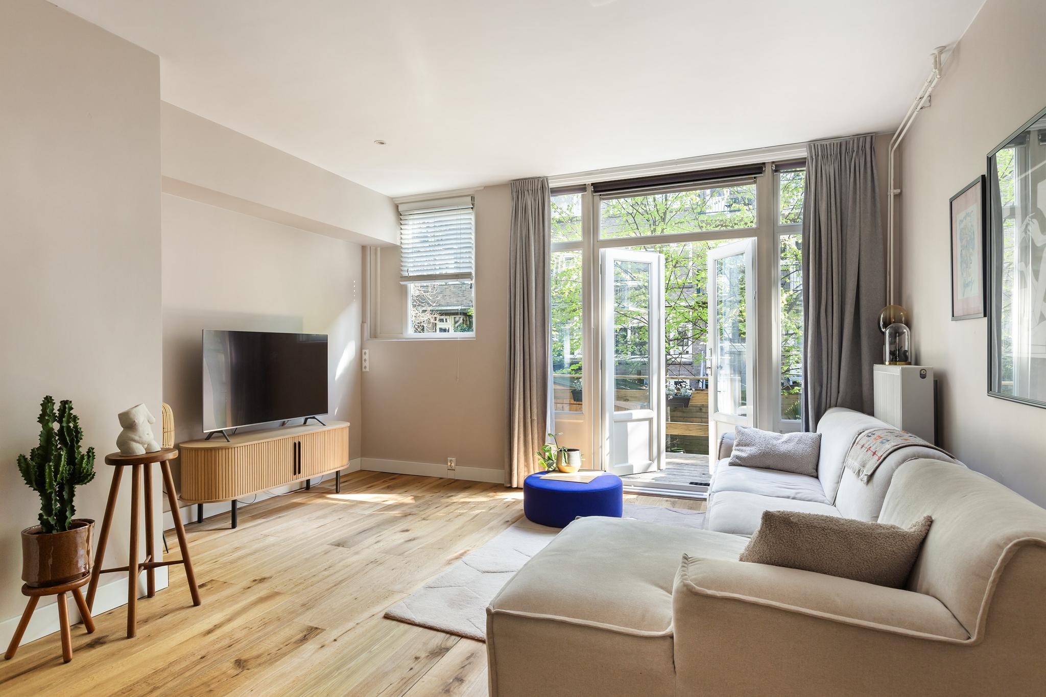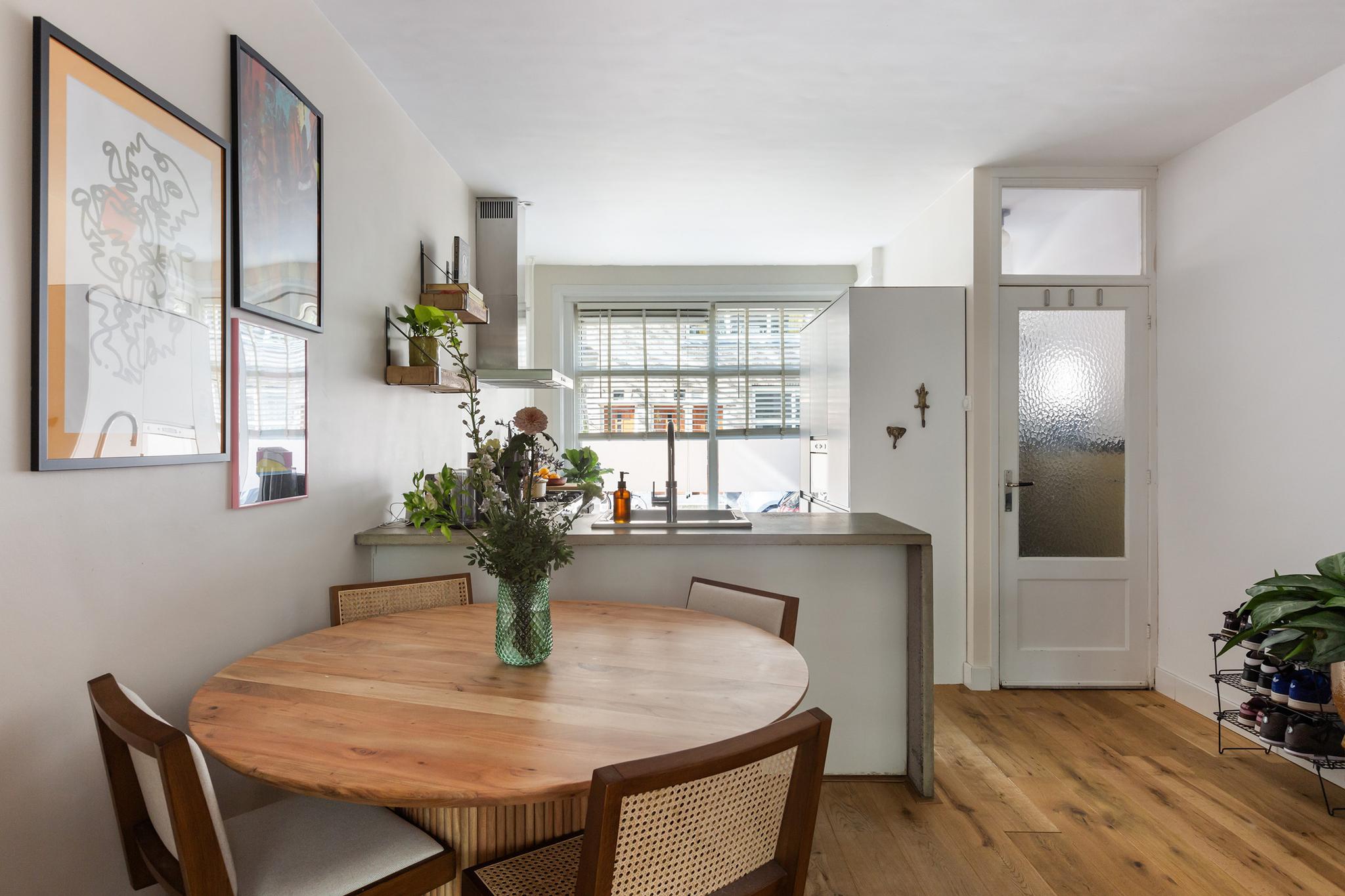 Open de voordeur naar de nette hal met originele jaren ’30 details waar ruimte is voor een garderobe. Vanuit de entree bereik je de royale living waar alles tot in de puntjes is afgewerkt. De combinatie van de strakke houten vloer en rustige wandafwerking geeft de ruimte een prettige uitstraling. Zowel de voorzijde als de achterzijde hebben grote raampartijen waardoor het gehele leefgedeelte wordt voorzien van veel licht. Aan de voorzijde bevindt zich de open keuken. Deze is opgesteld in een L-vorm en voorzien van een hoge kastenwand, waardoor er veel opbergruimte is. De keuken is compleet uitgerust met inbouwapparatuur zoals een 6-pits gasfornuis met grote oven, combi-oven, Quooker, koelkast, vriezer en vaatwasser. Ideaal voor wie graag kookt, ook voor een groter gezelschap. Wat een luxe! Direct naast de keuken is plek voor een eethoek, waar je comfortabel kunt tafelen met familie of vrienden. Het zitgedeelte aan de achterzijde sluit aan op de tuin via openslaande deuren. Hierdoor betrek je op mooie dagen eenvoudig het buitenleven bij je woonkamer. Er is ruimte genoeg voor een comfortabele zithoek waar je goed kan relaxen. De achtertuin is op het noordoosten gelegen, heeft een oppervlakte van circa 31 m2 en beschikt over een houten berging. Perfect voor opbergen van fietsen en tuingereedschap. Het verhoogde terras biedt volop ruimte voor een gezellig zitje en verleent toegang middels een trap naar het verlaagde gedeelte van de tuin. De tuin is een heerlijke plek voor een ochtendkoffie, een zomerse BBQ of om lekker te tuinieren. Een echte stadse parel!