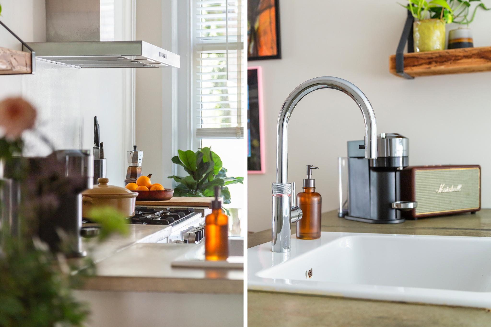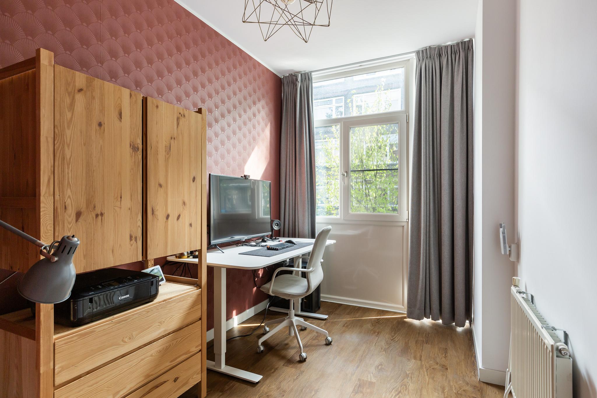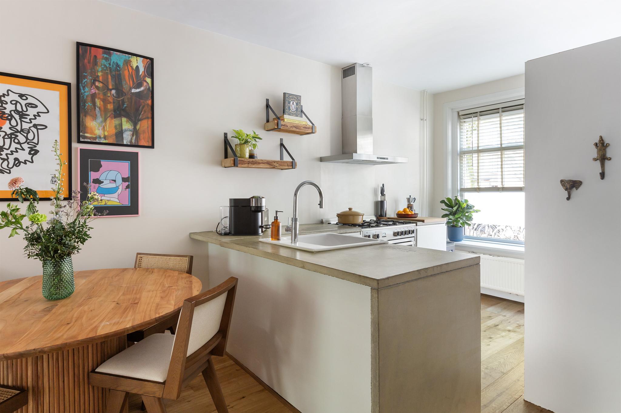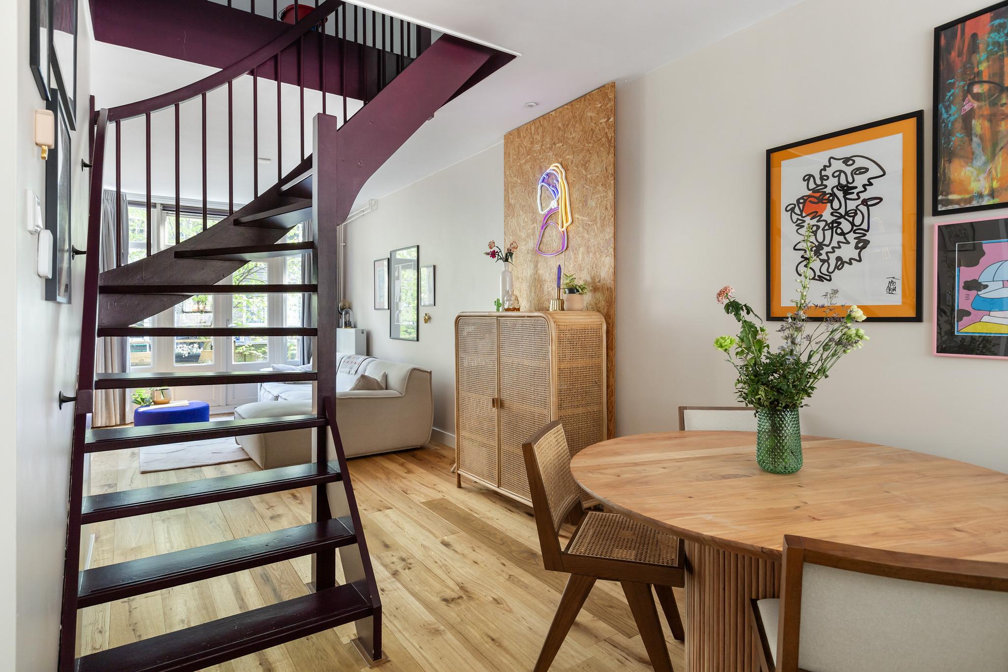 Open de voordeur naar de nette hal met originele jaren ’30 details waar ruimte is voor een garderobe. Vanuit de entree bereik je de royale living waar alles tot in de puntjes is afgewerkt. De combinatie van de strakke houten vloer en rustige wandafwerking geeft de ruimte een prettige uitstraling. Zowel de voorzijde als de achterzijde hebben grote raampartijen waardoor het gehele leefgedeelte wordt voorzien van veel licht. Aan de voorzijde bevindt zich de open keuken. Deze is opgesteld in een L-vorm en voorzien van een hoge kastenwand, waardoor er veel opbergruimte is. De keuken is compleet uitgerust met inbouwapparatuur zoals een 6-pits gasfornuis met grote oven, combi-oven, Quooker, koelkast, vriezer en vaatwasser. Ideaal voor wie graag kookt, ook voor een groter gezelschap. Wat een luxe! Direct naast de keuken is plek voor een eethoek, waar je comfortabel kunt tafelen met familie of vrienden. Het zitgedeelte aan de achterzijde sluit aan op de tuin via openslaande deuren. Hierdoor betrek je op mooie dagen eenvoudig het buitenleven bij je woonkamer. Er is ruimte genoeg voor een comfortabele zithoek waar je goed kan relaxen. De achtertuin is op het noordoosten gelegen, heeft een oppervlakte van circa 31 m2 en beschikt over een houten berging. Perfect voor opbergen van fietsen en tuingereedschap. Het verhoogde terras biedt volop ruimte voor een gezellig zitje en verleent toegang middels een trap naar het verlaagde gedeelte van de tuin. De tuin is een heerlijke plek voor een ochtendkoffie, een zomerse BBQ of om lekker te tuinieren. Een echte stadse parel!