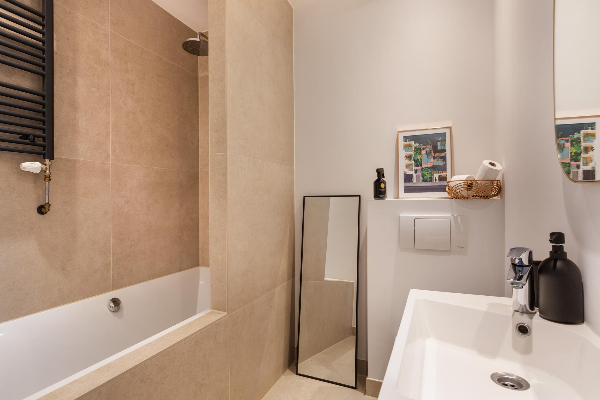 Via een vaste trap in het leefgedeelte kom je op de eerste verdieping, waar zich de slaapvertrekken bevinden. De hoofdslaapkamer bevindt zich aan de voorzijde en leent zich uitstekend voor een groot tweepersoonsbed. Aan de achterzijde vind je de andere twee slaapkamers. Ideaal in te richten als kinderkamer, werkkamer of kastenkamer. Centraal op de verdieping ligt de moderne badkamer welke in 2025 gerenoveerd is. Deze is professioneel afgewerkt en voorzien van een fijn ligbad met douche, een toilet en een wastafel met meubel. Een prettige plek om de dag rustig te beginnen of ontspannen af te sluiten. Op de overloop zijn bovendien twee praktische inpandige kasten te vinden, met daarin ook de aansluiting voor de wasmachine. Handig voor extra opbergruimte en het netjes wegwerken van de was.
