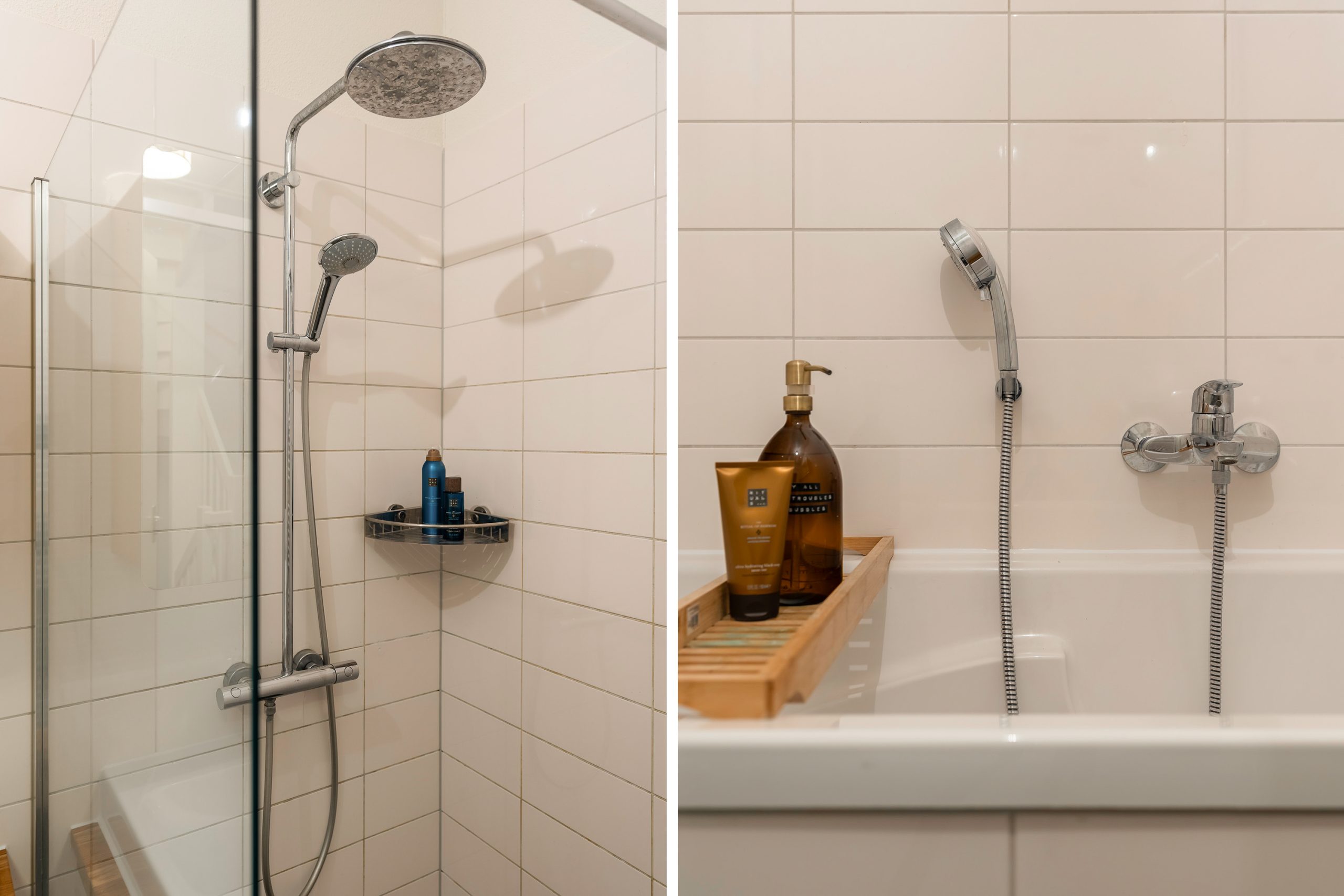 Tegenover de badkamer bevindt zich bovendien een separaat toilet – praktisch en stijlvol tegelijk.