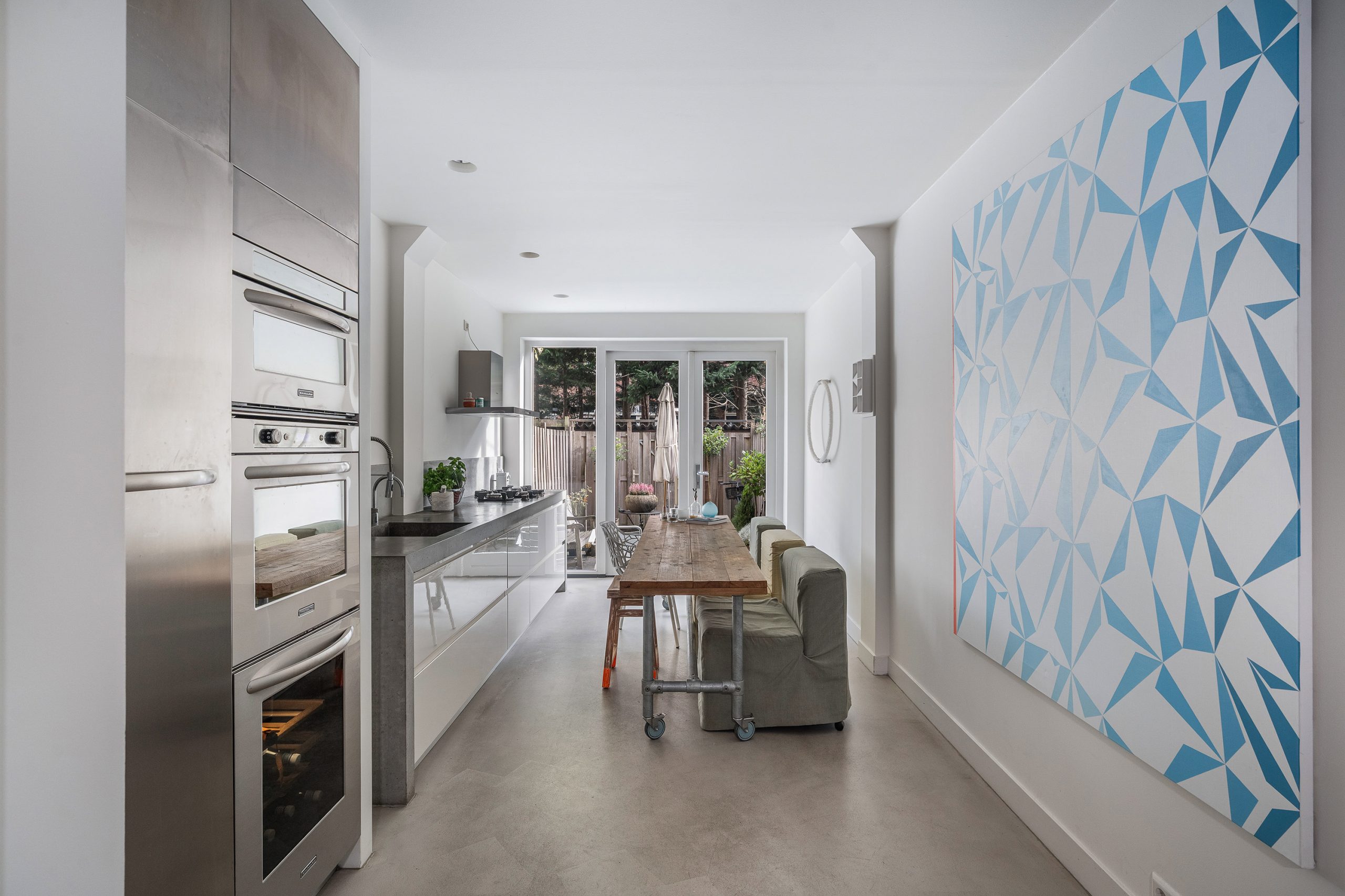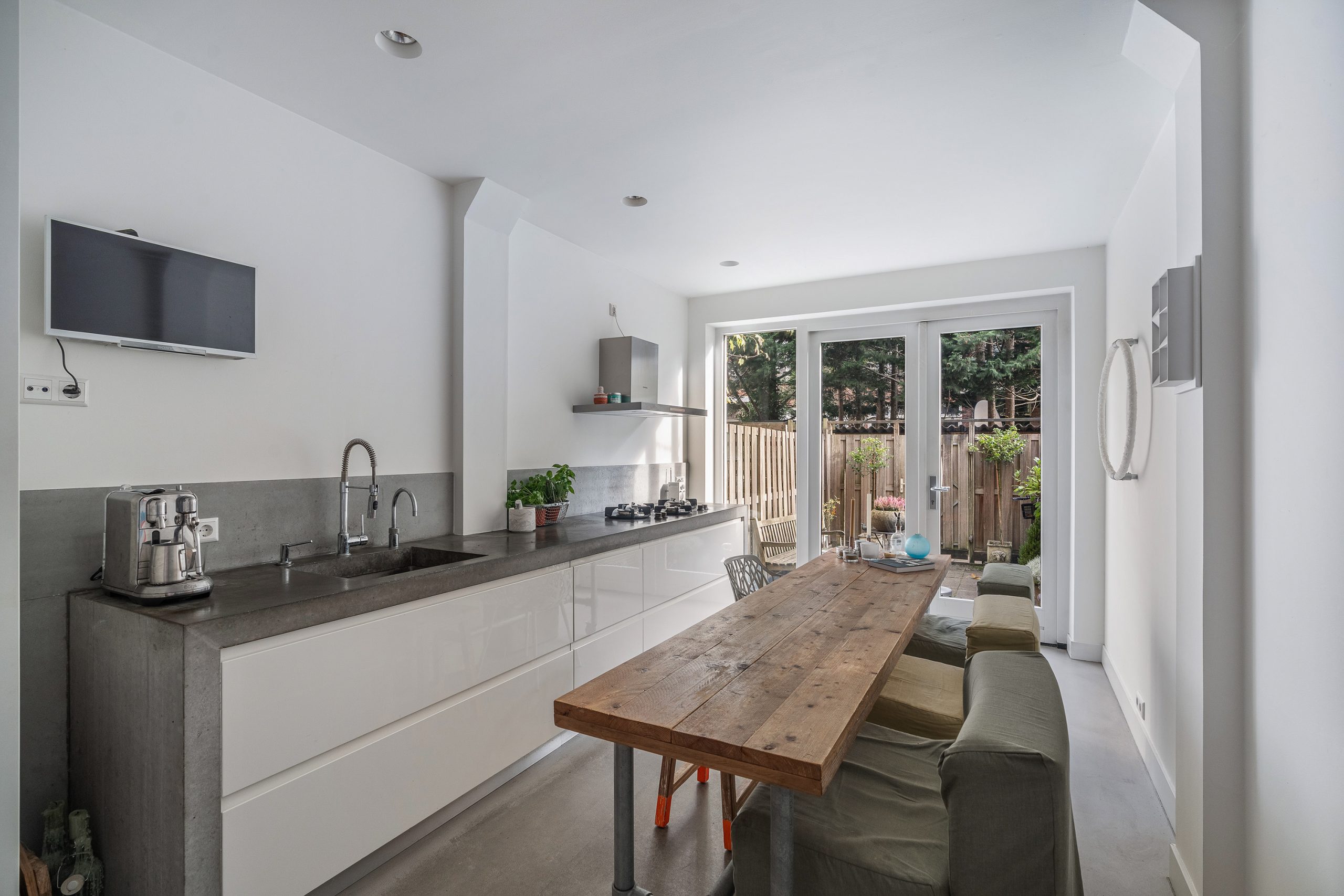 Zodra je thuiskomt, rijd je moeiteloos je eigen garage in, uitgerust met een automatische deur. Zo parkeer je je auto altijd comfortabel en beveiligd. Ideaal! Hier bevindt zich ook de meterkast. Vanuit de garage loop je door naar de entree, waar openslaande deuren toegang geven tot de woonkeuken. De stoere gietvloer en strakke afwerking geven de ruimte een moderne uitstraling, terwijl de open keuken met betonlook perfect bij deze stijl past. De keuken is volledig uitgerust met een 4-pits gasfornuis, afzuigkap, oven, magnetron, wijnkoelkast, vaatwasser, Quooker en koelkast. Hier kun je heerlijk koken terwijl je toch in contact blijft met je gezelschap. De perfecte plek voor gezellig samenzijn! Daarnaast is er een vaste kast met een aansluiting voor de wasmachine.