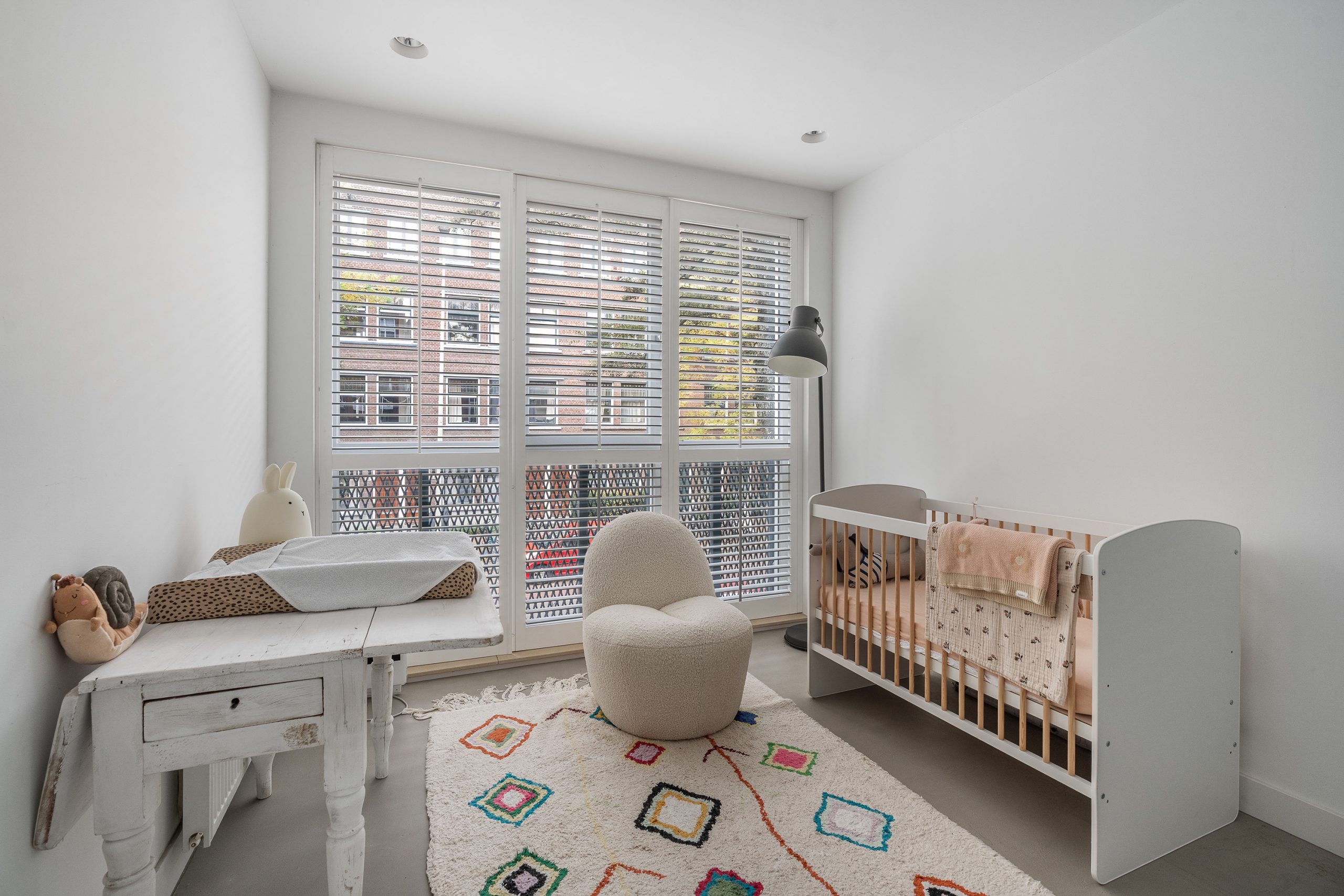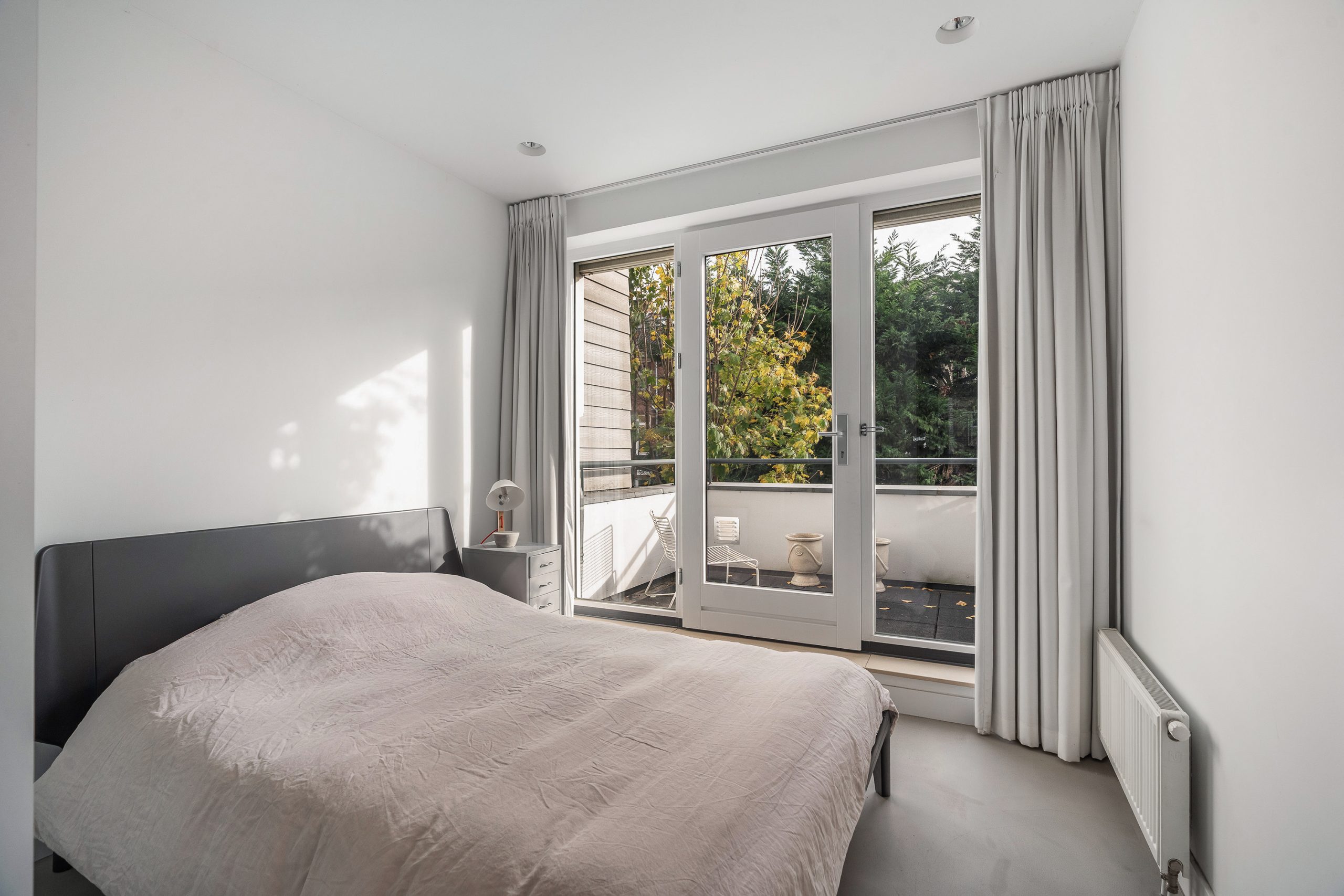 Aan de voorzijde bevindt zich een fijne kamer met twee inbouwkasten. Aan de andere zijde is een ruime kamer met eveneens twee inbouwkasten en toegang tot het riante balkon. De stijlvolle badkamer is volledig betegeld en uitgerust met een inloopdouche met rainshower, een toilet, een wastafel met meubel en een handdoekradiator. Een heerlijke, ontspannende ruimte om de dag goed te beginnen of af te sluiten!