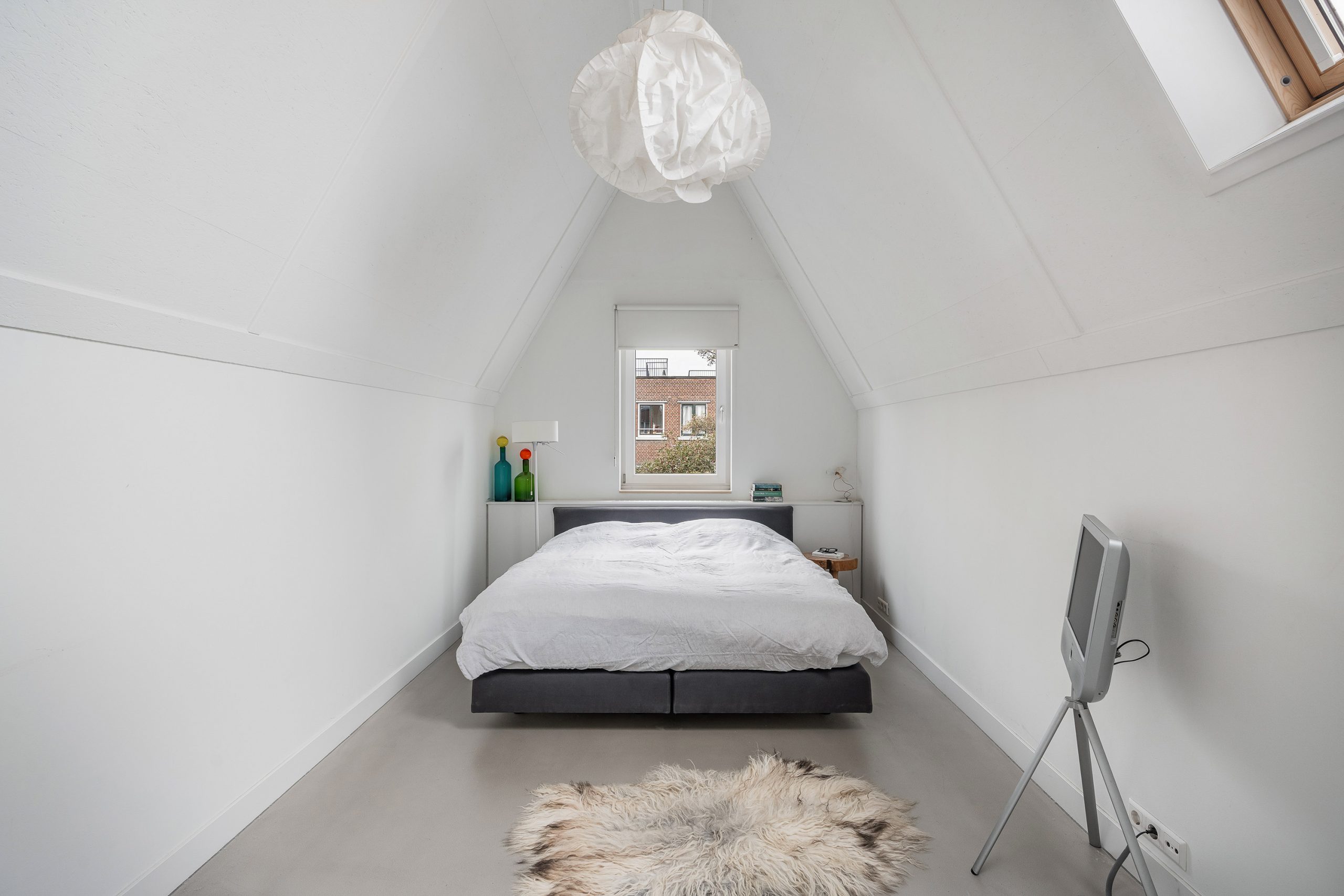Op deze verdieping bevindt zich een royale slaapkamer met een prachtig hoof plafond en twee dakramen. Aan de achterzijde is een walk-in-closet gerealiseerd. Wie wil dat nou niet? De tweede badkamer is eveneens modern en voorzien van een inloopdouche met rainshower, een toilet en een wastafel met zwevend meubel
