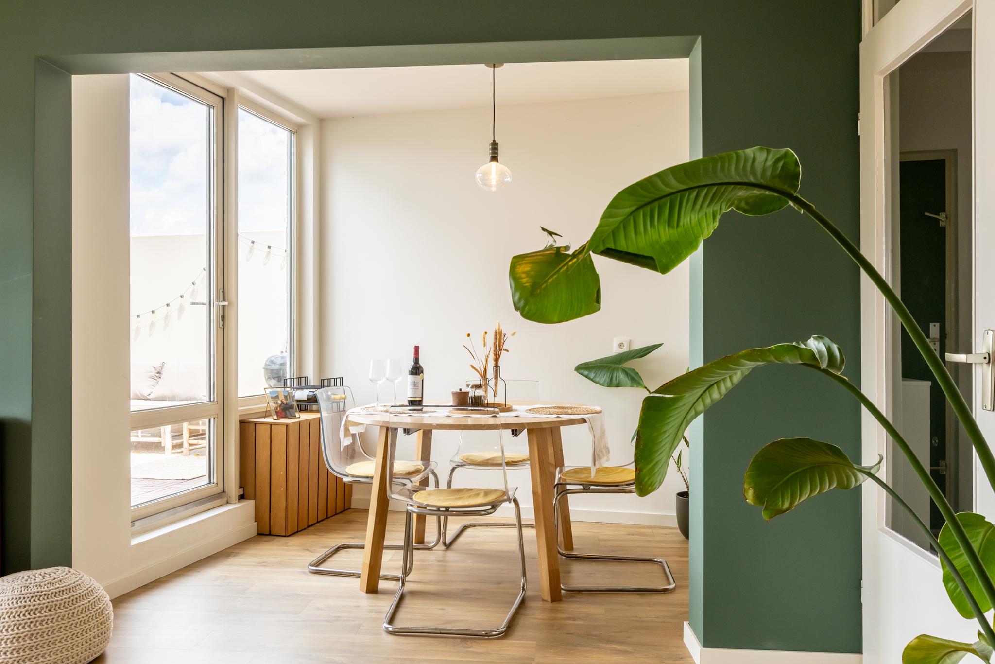 Ik vind het huis zo’n fijne en lichte plek om te wonen. Centraal gelegen maar toch lekker rustig en stil. Tijdens het koken zie ik de skyline van Rotterdam. Maar het allerfijnste plekje vind ik toch wel het terras. In het weekend eet ik hier mijn ontbijtje aan de balkonbar en loop ik vervolgens zo richting de Kralingse Plas. In de avond drinken mijn vriend en ik graag een wijntje bij de prachtige zonsondergang die je hier goed kunt zien. In de lente en zomer is het heerlijk zonnig op het terras, maar ook de herfstkleuren zijn prachtig om te zien. Het voelt voor mij echt als een verlengstuk van de woonkamer.