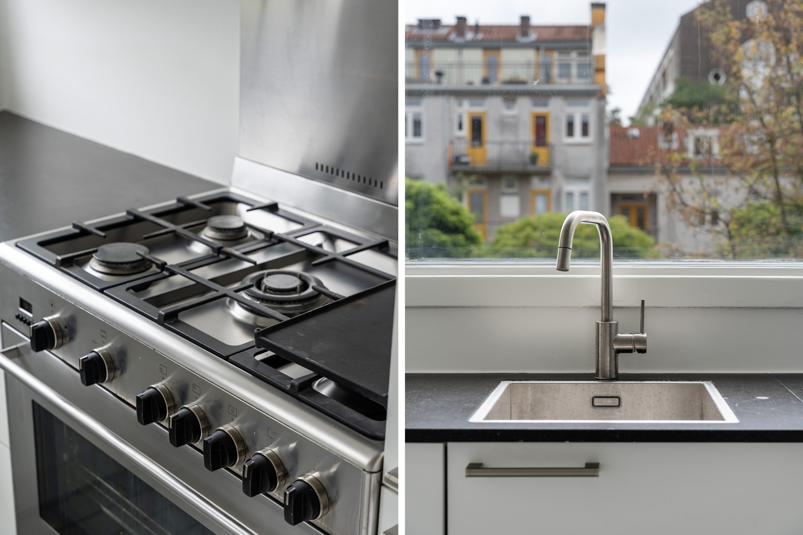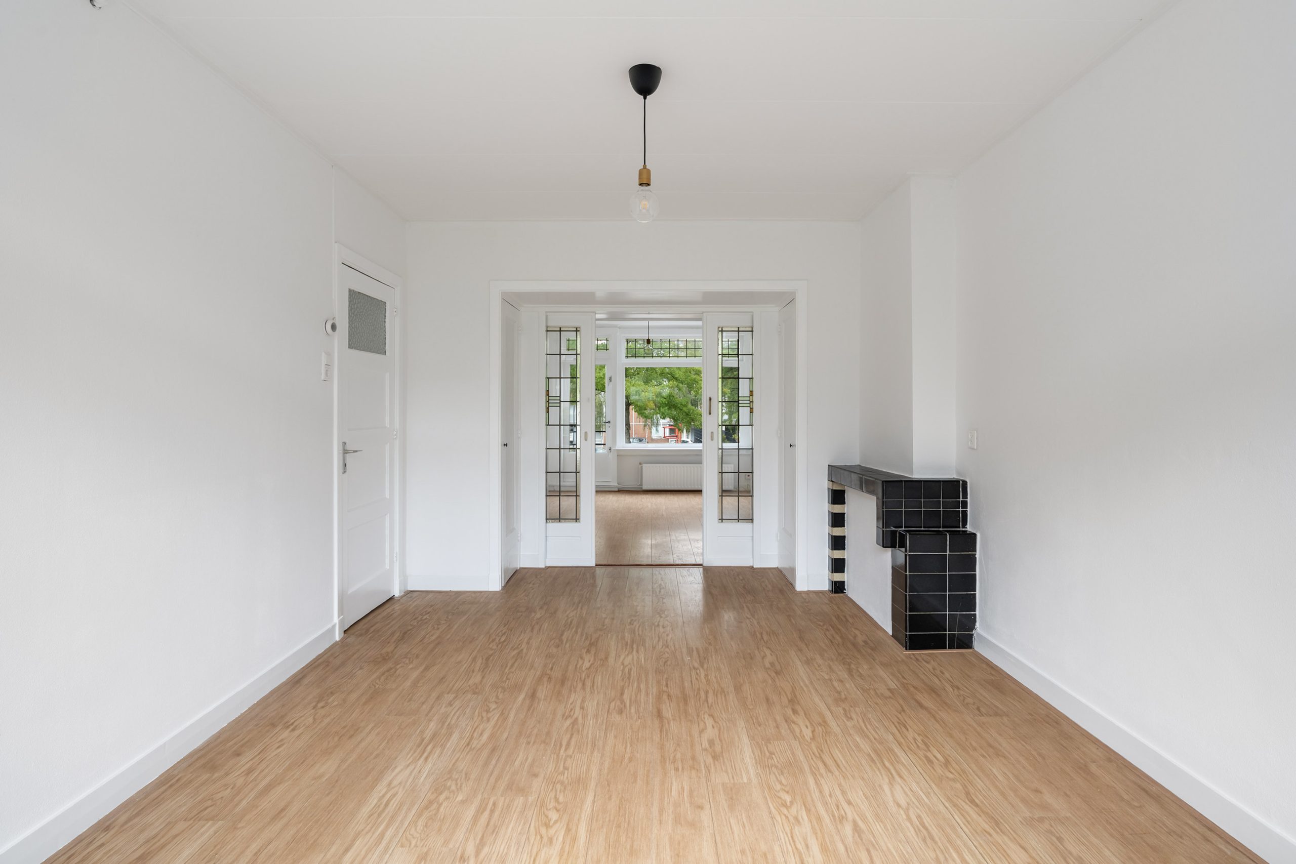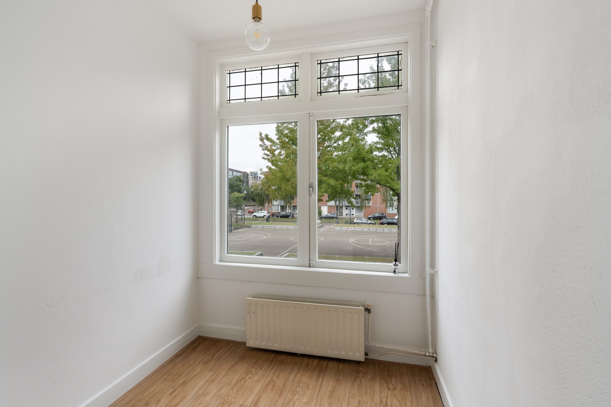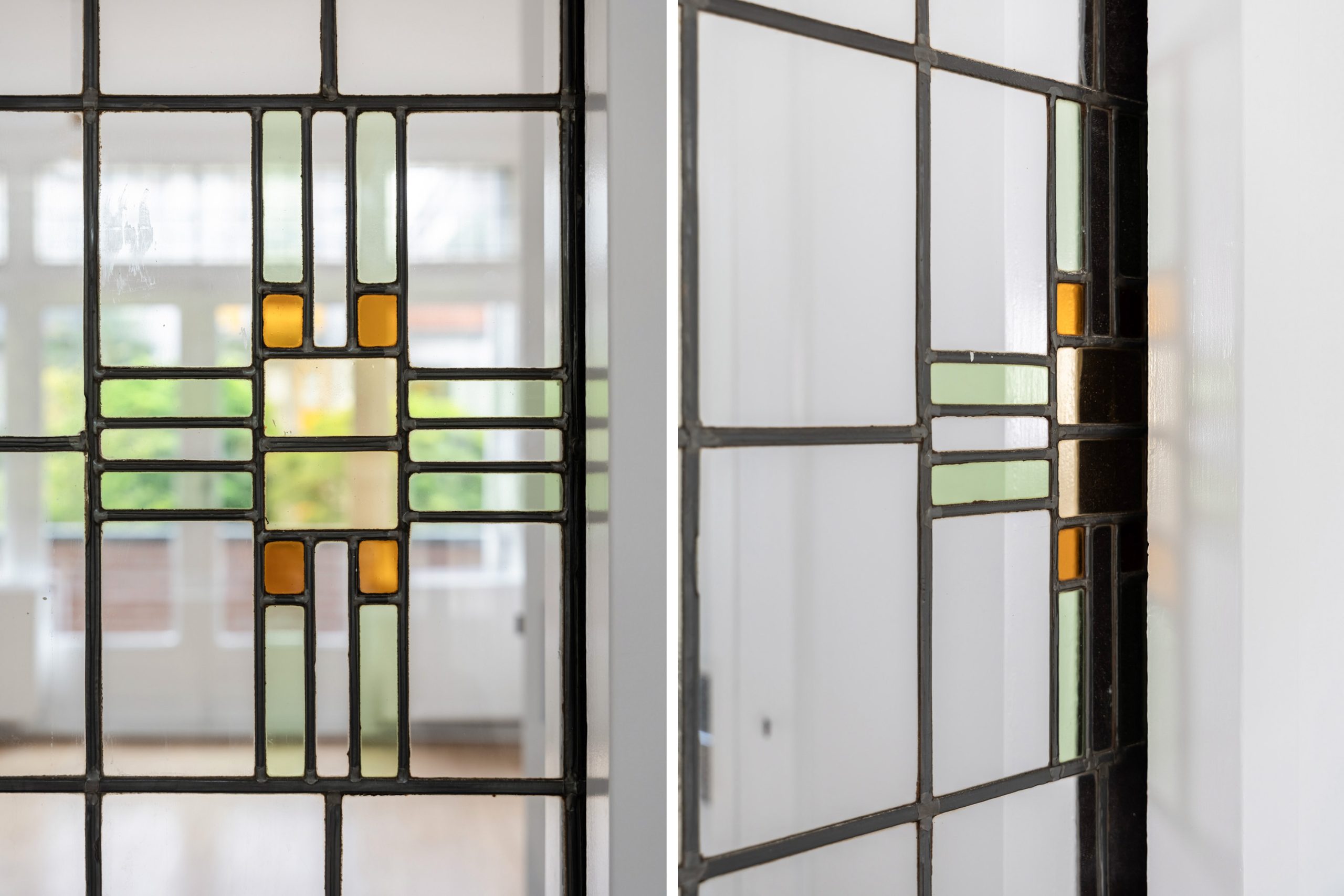 Hier stap je binnen in een lichte en ruime doorzon living, perfect ingedeeld in een zit- en eetgedeelte, met authentieke glas in lood schuifdeuren. Dankzij de grote ramen aan zowel de voor- als achterzijde wordt de ruimte overspoeld met daglicht – een plek waar je je direct thuis voelt. Vanuit de woonkamer heb je toegang het balkon aan de voorzijde en heb je vrij zicht over veel groen en het gezellige (sport)plein. Aan de achterzijde bevindt zich de aparte keuken, voorzien van een 5-pits gaskookplaat, oven, vaatwasser, koelkast, vriezer en voldoende kastruimte. Vanuit de keuken én de eetkamer loop je zo het tweede balkon op, gelegen op het zuiden aan de rustige achterzijde met uitzicht op de groene binnentuinen. Naast de woonkamer bevindt zich nog een extra kamer die ideaal gebruikt kan worden als werkkamer of slaapkamer. Verder vind je op deze verdieping een separaat toilet en de meterkast. Via de trap op de overloop ga je naar de bovenste etage.