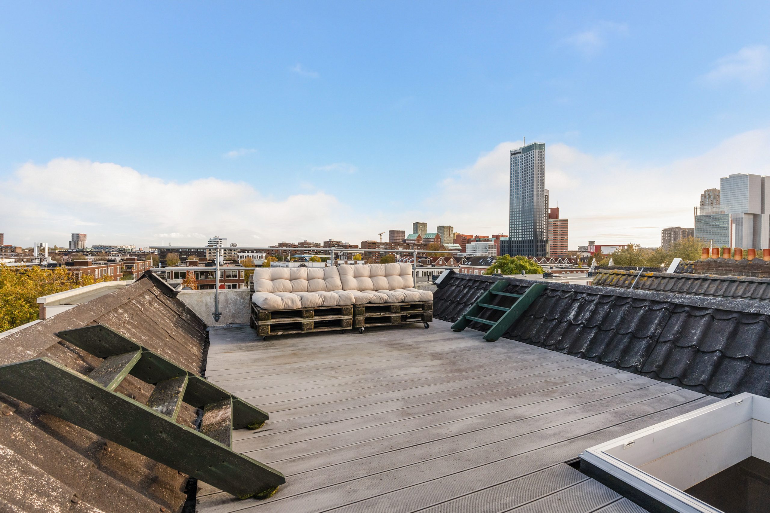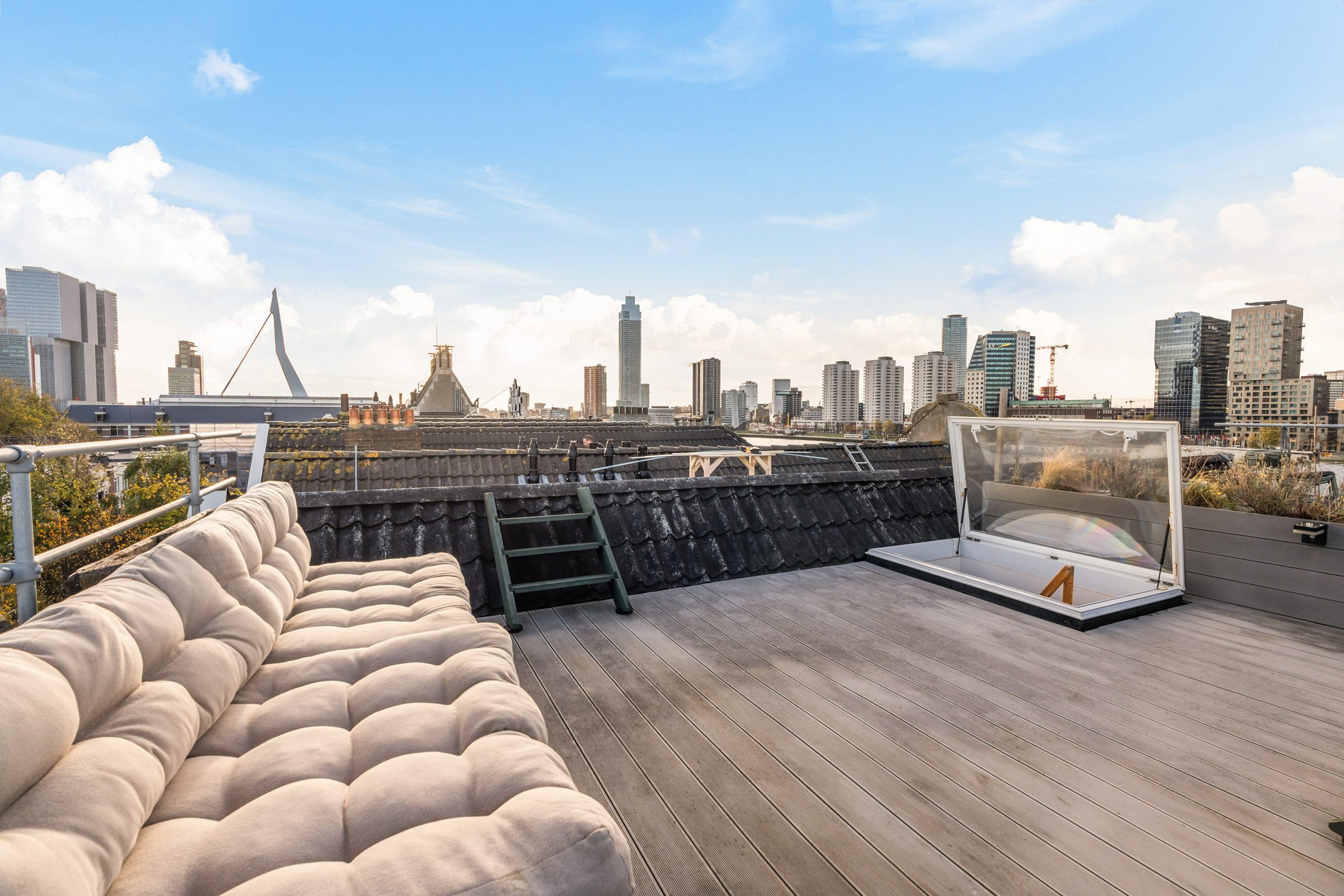Op het dakterras van maar liefst circa 21 m2 geniet je het hele jaar door van je eigen plek in de zon. En dat ook nog eens met een uitzicht waar menig Rotterdammer jaloers op zou zijn! Start de dag met een kop koffie en een goed gesprek, of sluit af met een glas wijn terwijl je geniet van de ondergaande zon.