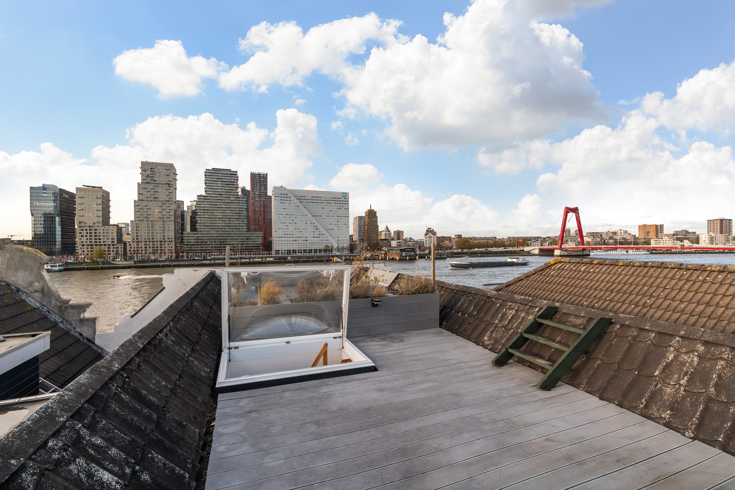 A home with character, comfort, and a rooftop terrace! This double storey apartment with two bedrooms was completely renovated in 2017 and is therefore fully move-in ready. From the living room and the spacious rooftop terrace, you can enjoy a stunning view of the River Maas and the Rotterdam skyline. This might just be everything you’re looking for, the place you’ll soon call home!