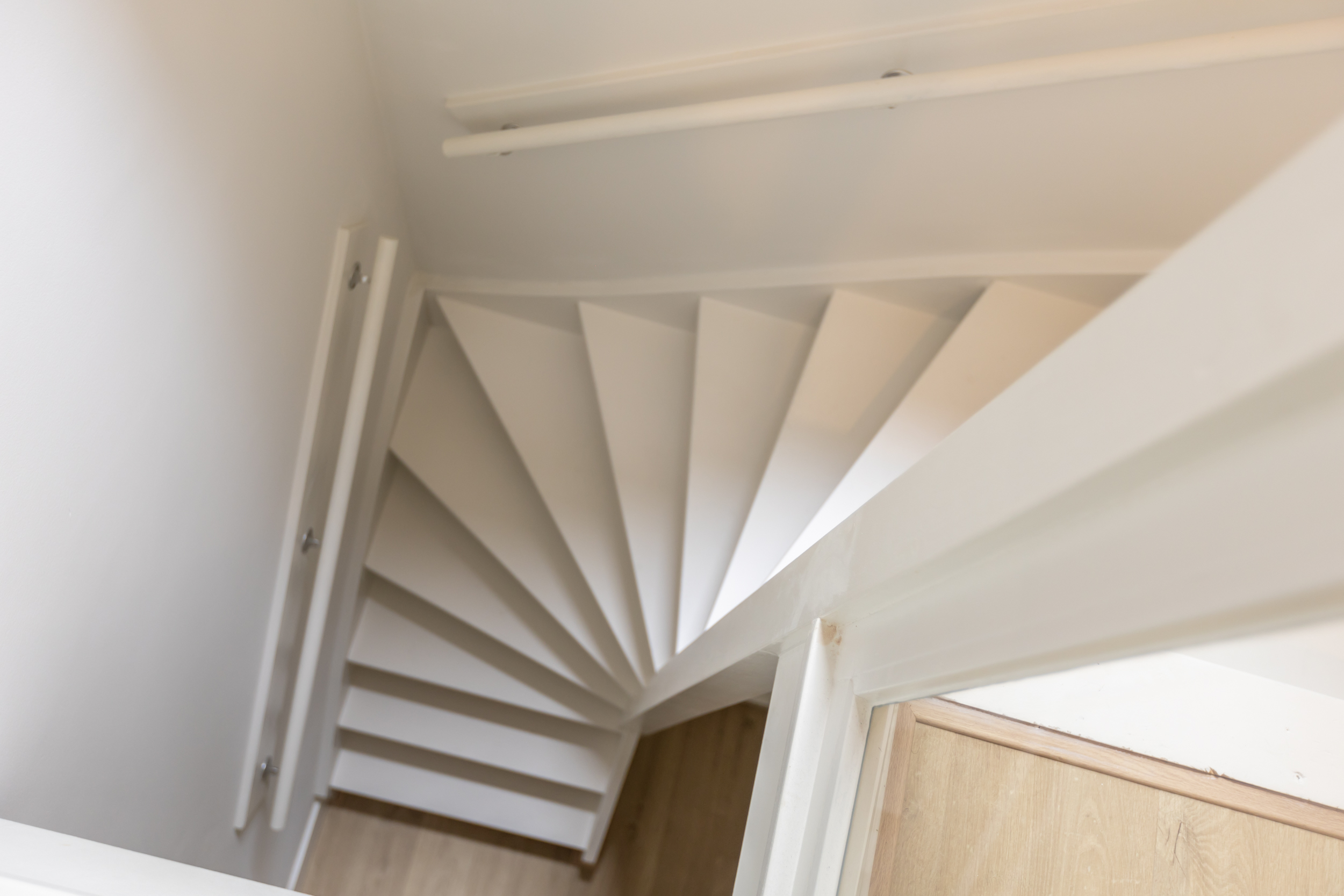 Vanuit de hal met de mogelijkheid tot opstellen van je kasten kom je middels een vaste trap in de slaapkamer.