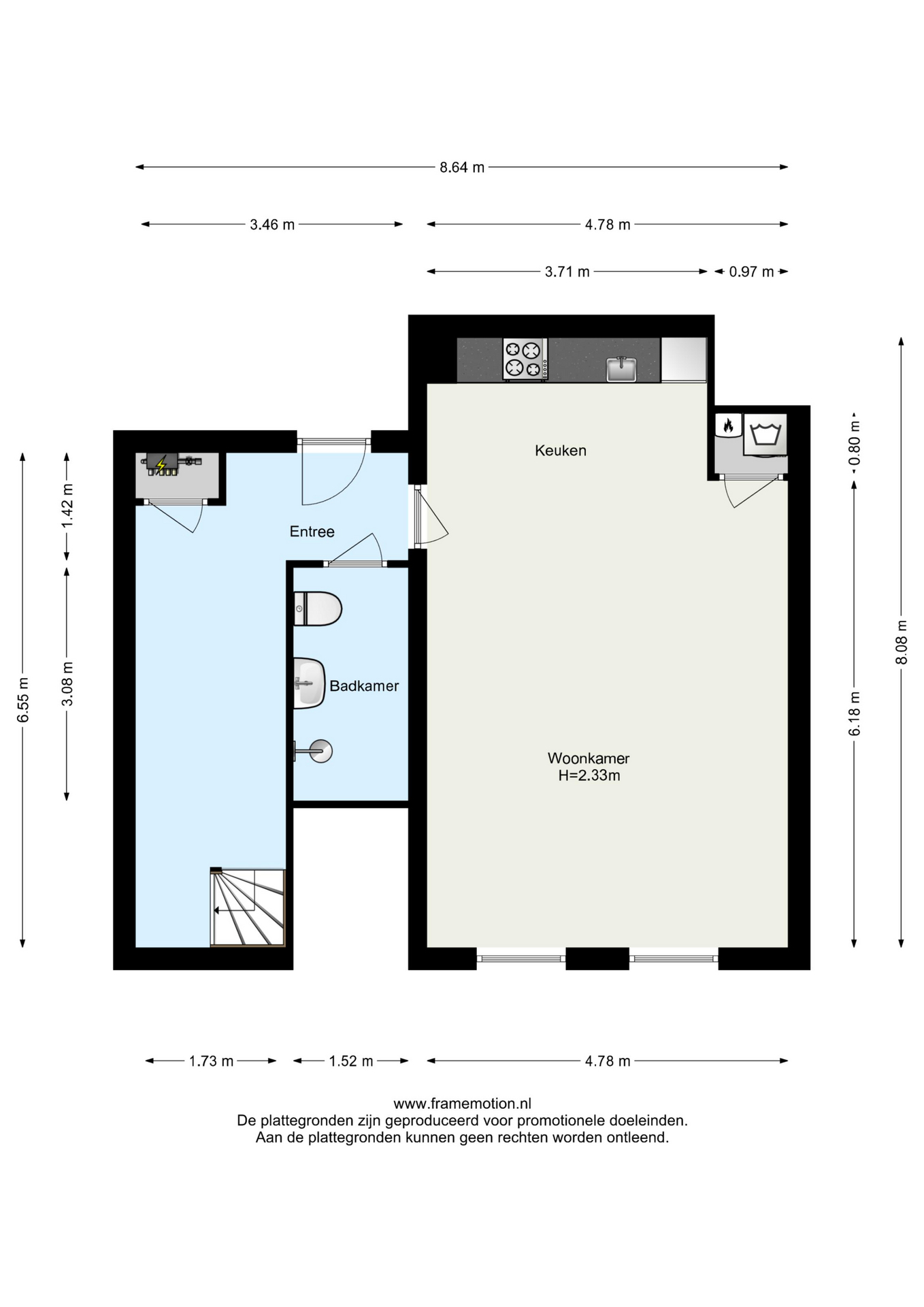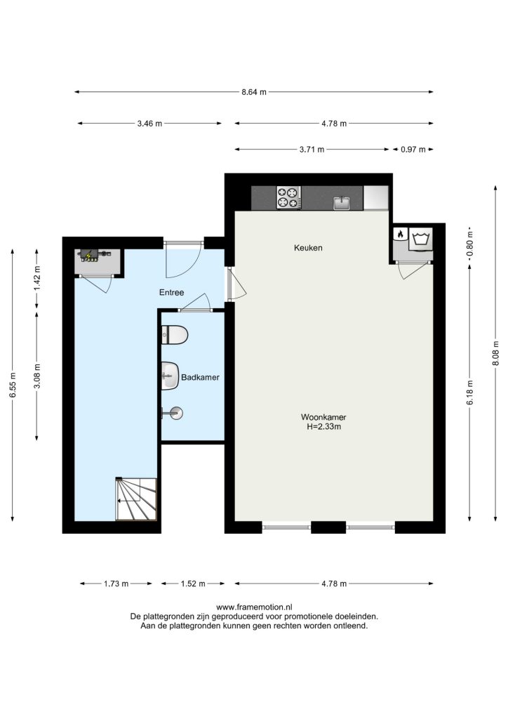 Voor de afmetingen en indeling zie onze gedetailleerde plattegrond.