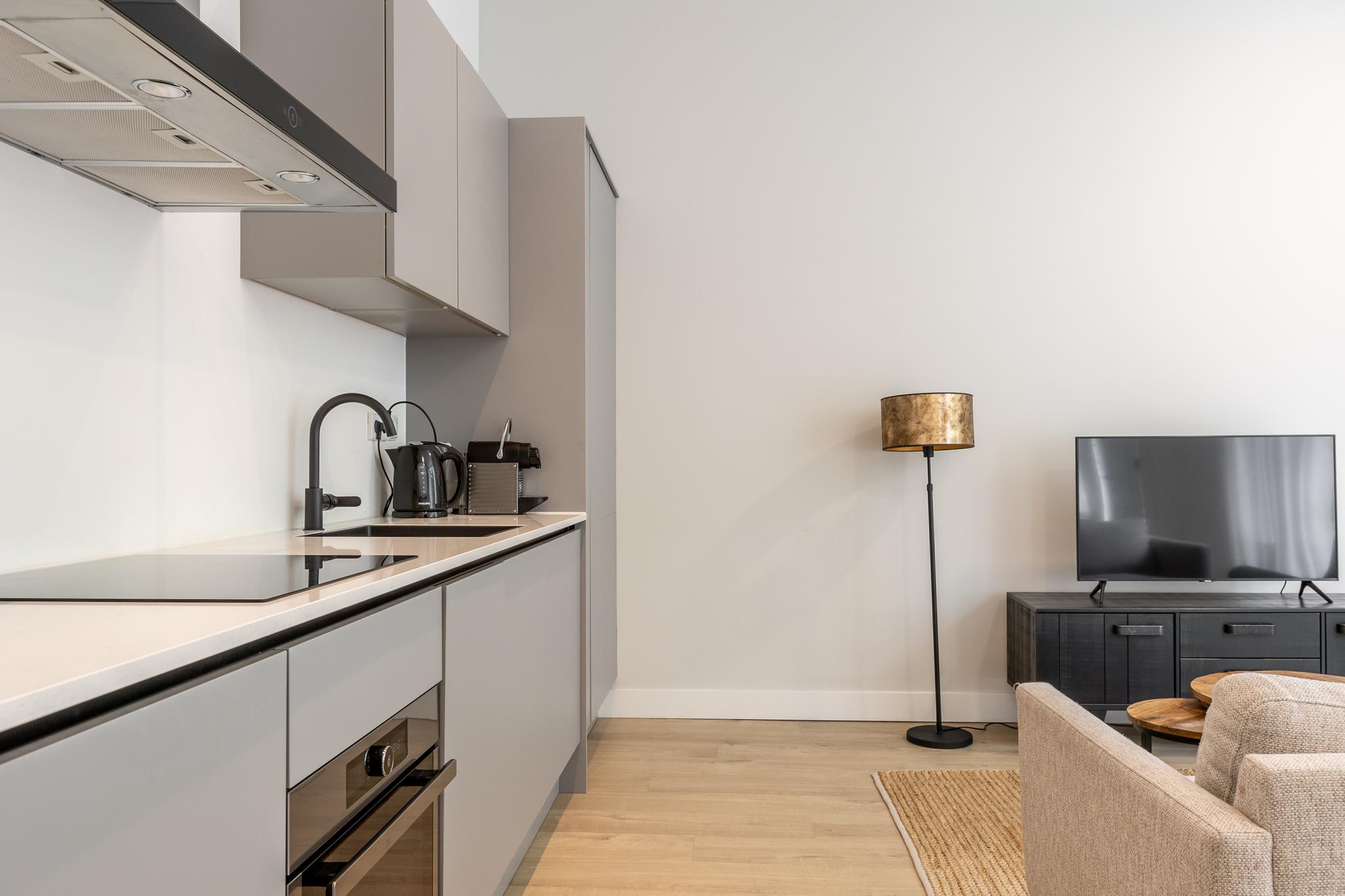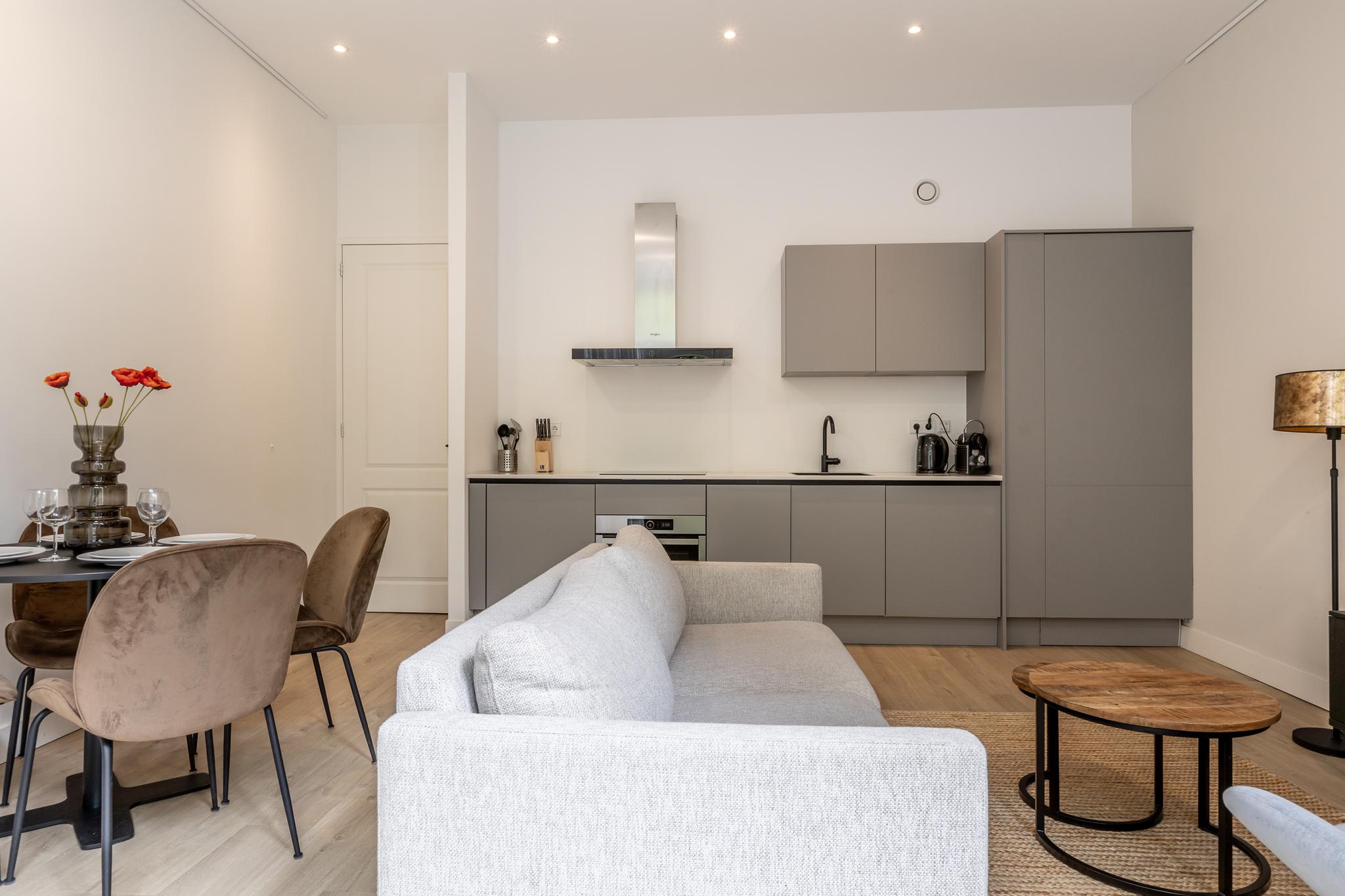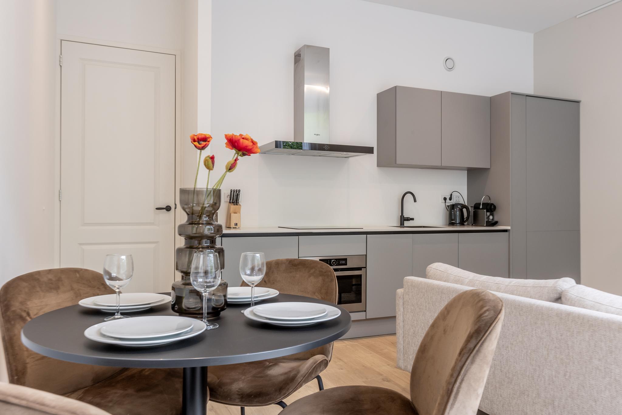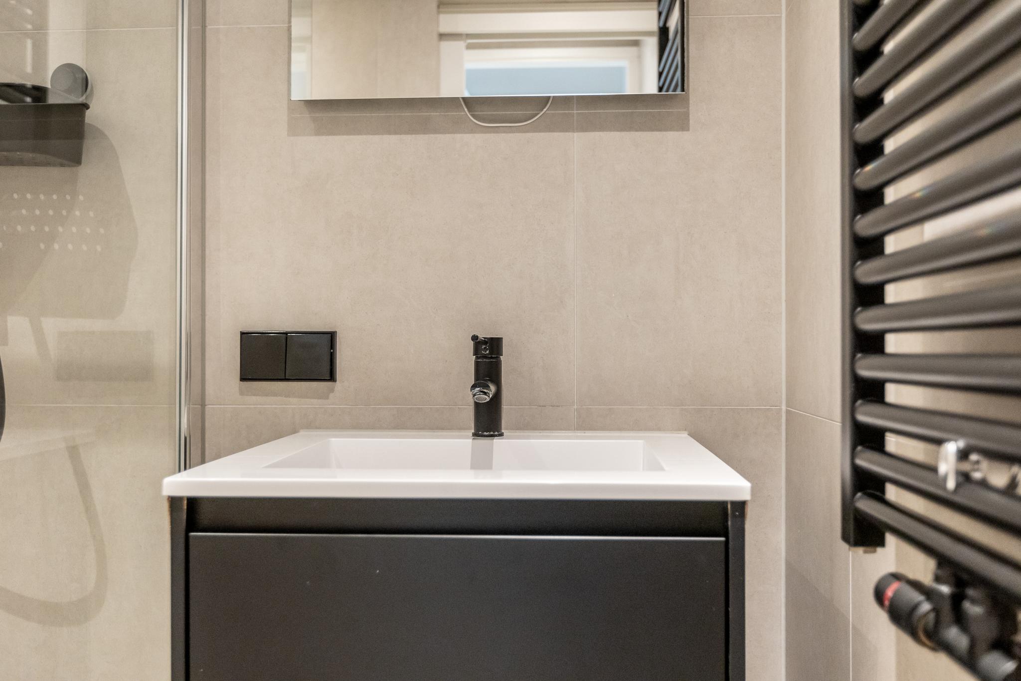 Indeling: Via de entree en hal kom je in de superlichte woonkamer. De erker geeft je meer cachet dan je in de gemiddelde woningen aantreft. Vanuit de woonkamer bereik je een flinke slaapkamer welke ook aan de voorzijde is gelegen. De open keuken in de woonkamer is een luxe exemplaar met de volgende apparatuur: inductiekookplaat, combimagnetron, vaatwasser, afzuigkap, koelkast en vriezer. Een kast met de CV ketel en wasmachine aansluiting maakt het geheel compleet. Vanuit de hal bereik je de luxe badkamer welke voorzien is van toilet, wastafel in meubel, fijne inloopdouche en naast je vloerverwarming ook nog een handdoekenradiator.