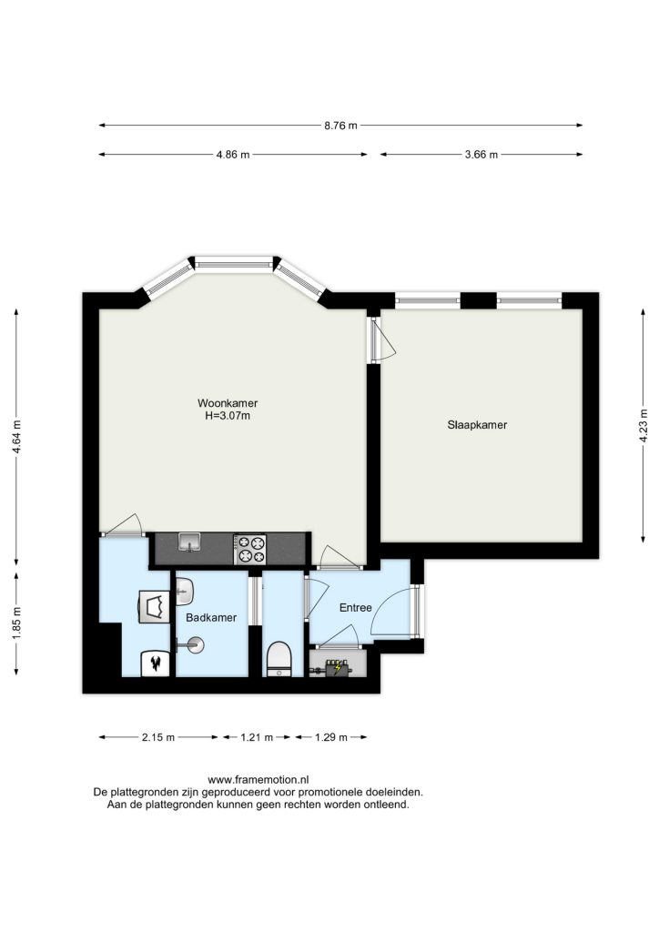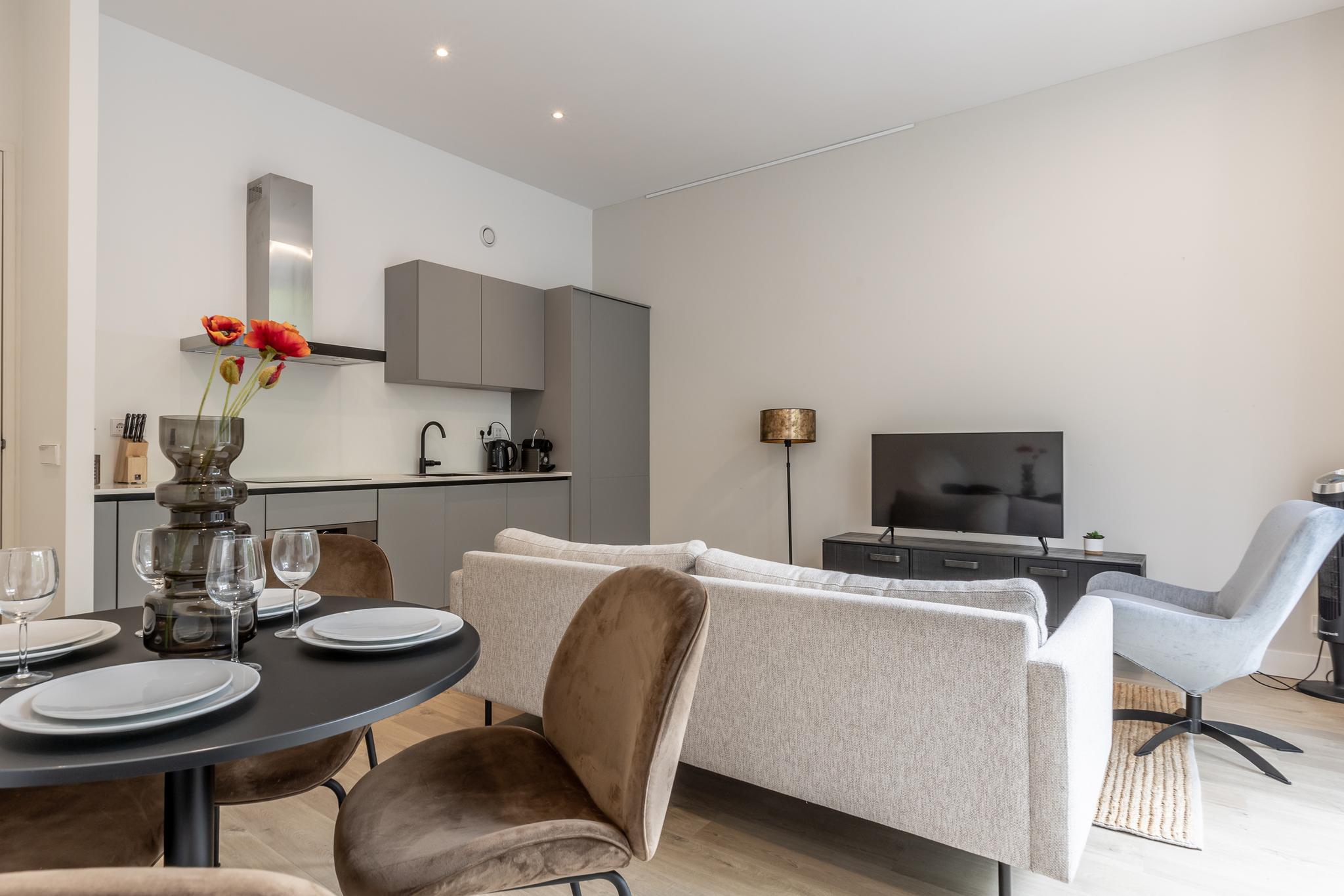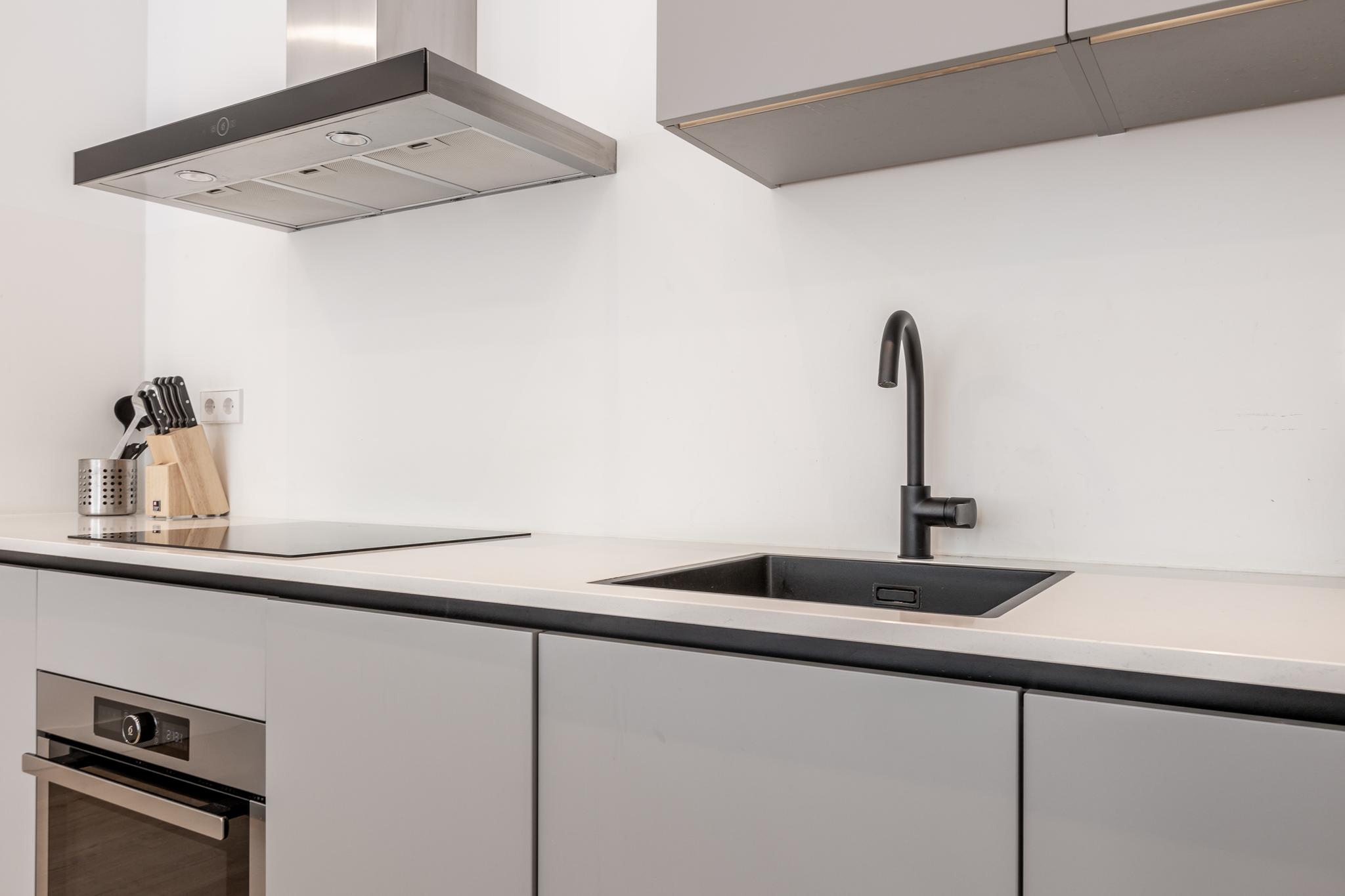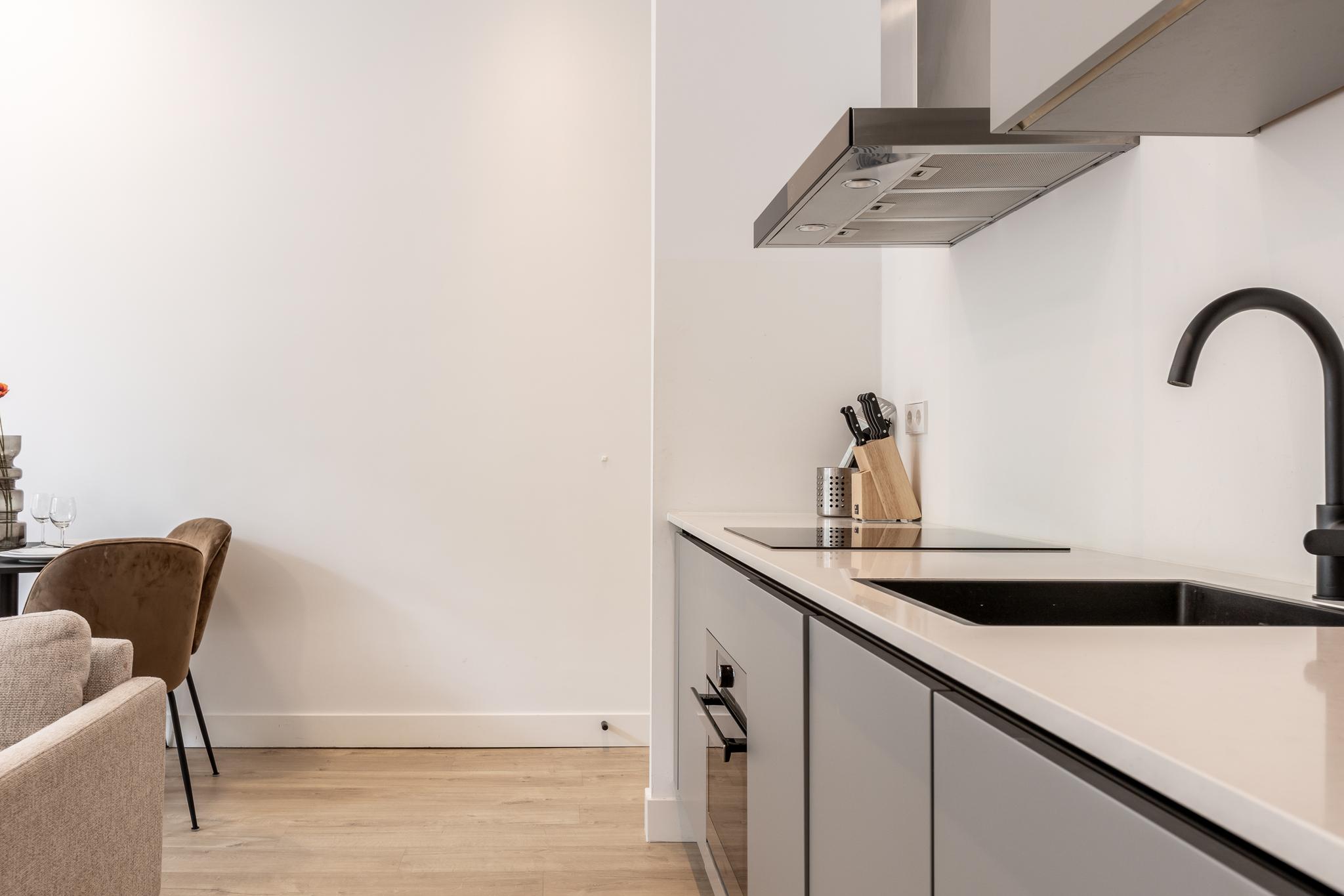 Indeling: Via de entree en hal kom je in de superlichte woonkamer. De erker geeft je meer cachet dan je in de gemiddelde woningen aantreft. Vanuit de woonkamer bereik je een flinke slaapkamer welke ook aan de voorzijde is gelegen. De open keuken in de woonkamer is een luxe exemplaar met de volgende apparatuur: inductiekookplaat, combimagnetron, vaatwasser, afzuigkap, koelkast en vriezer. Een kast met de CV ketel en wasmachine aansluiting maakt het geheel compleet. Vanuit de hal bereik je de luxe badkamer welke voorzien is van toilet, wastafel in meubel, fijne inloopdouche en naast je vloerverwarming ook nog een handdoekenradiator.