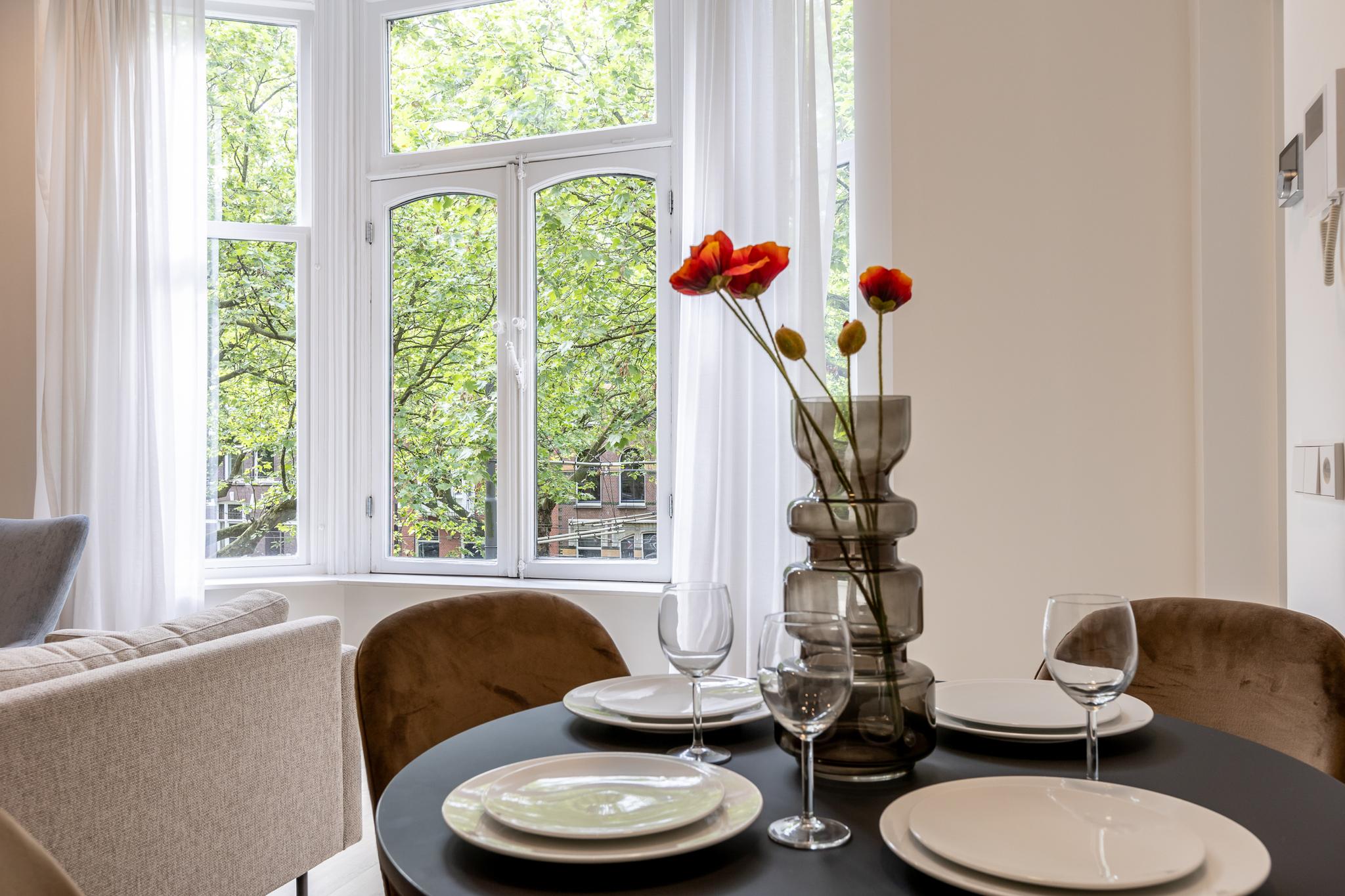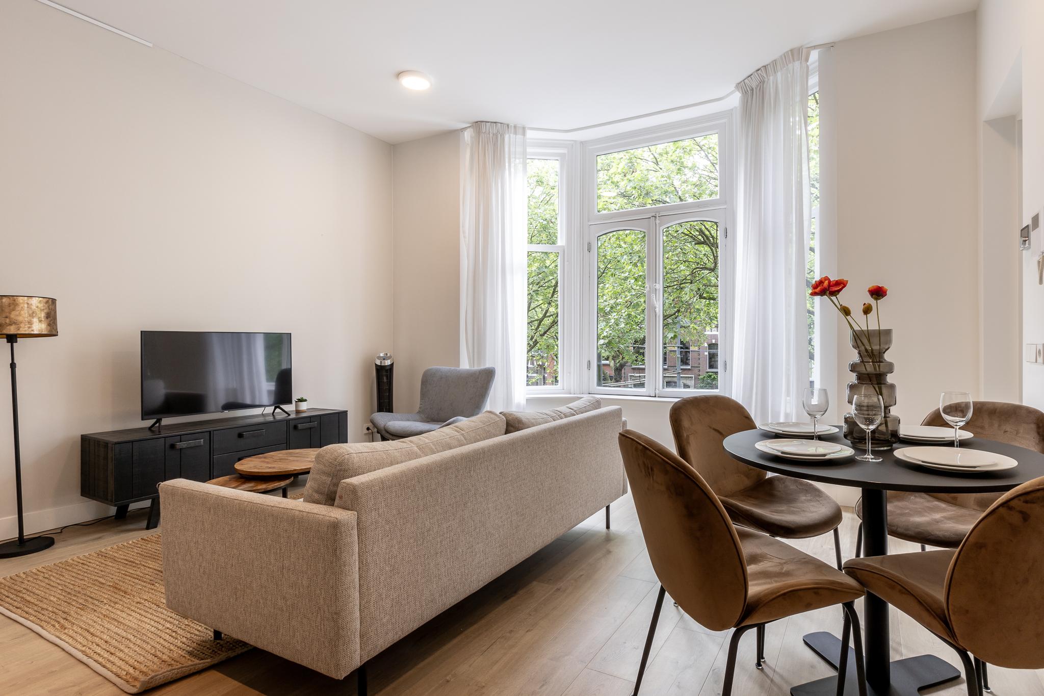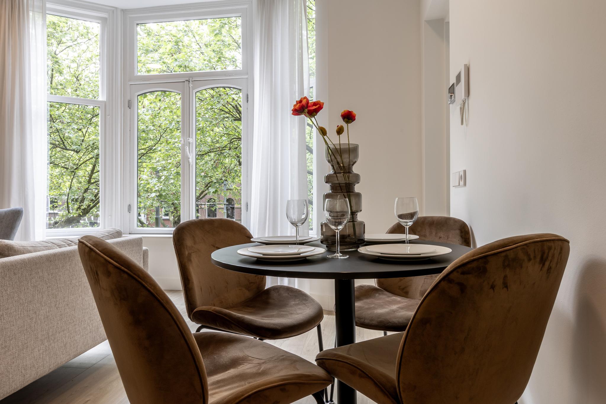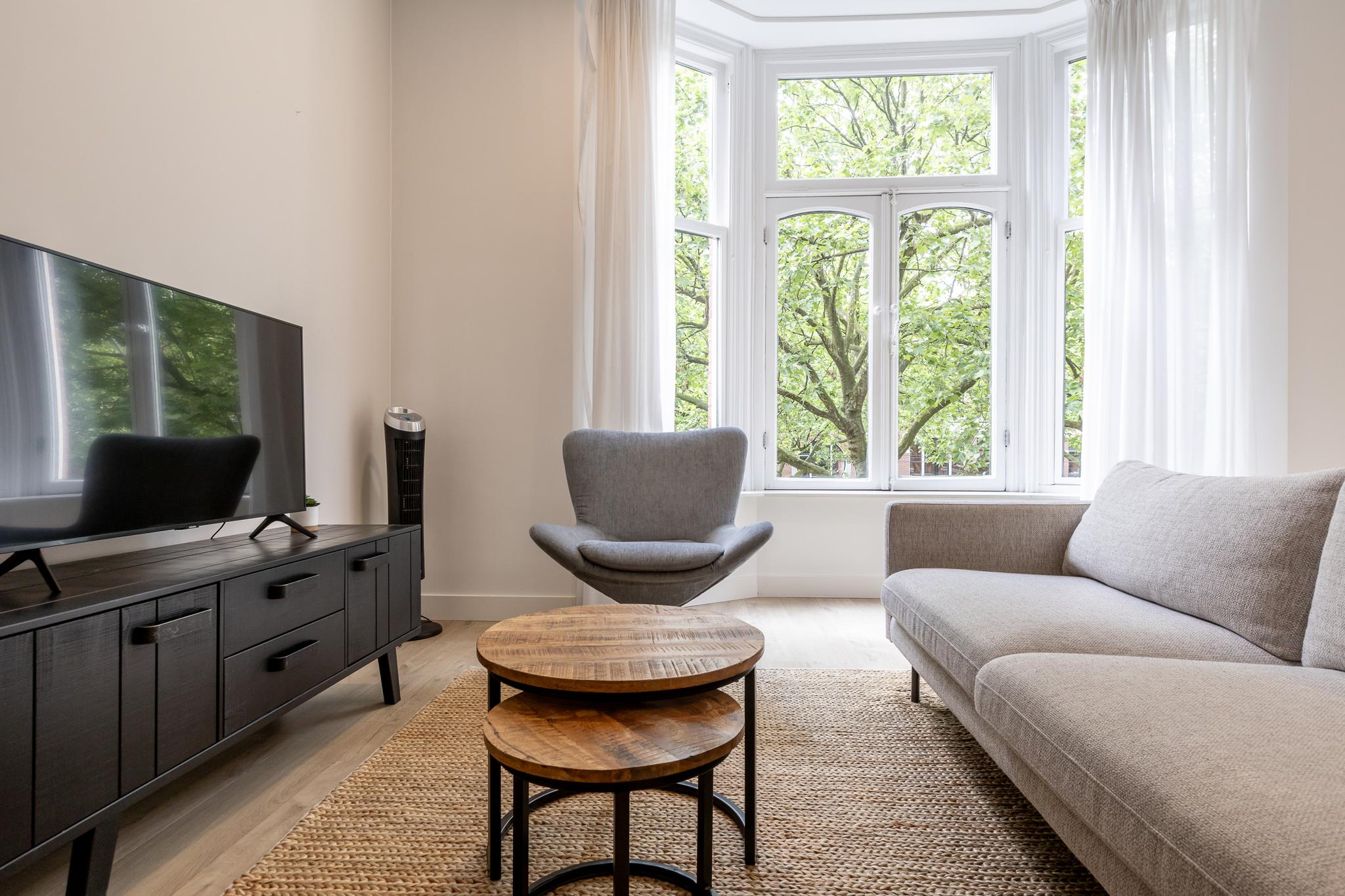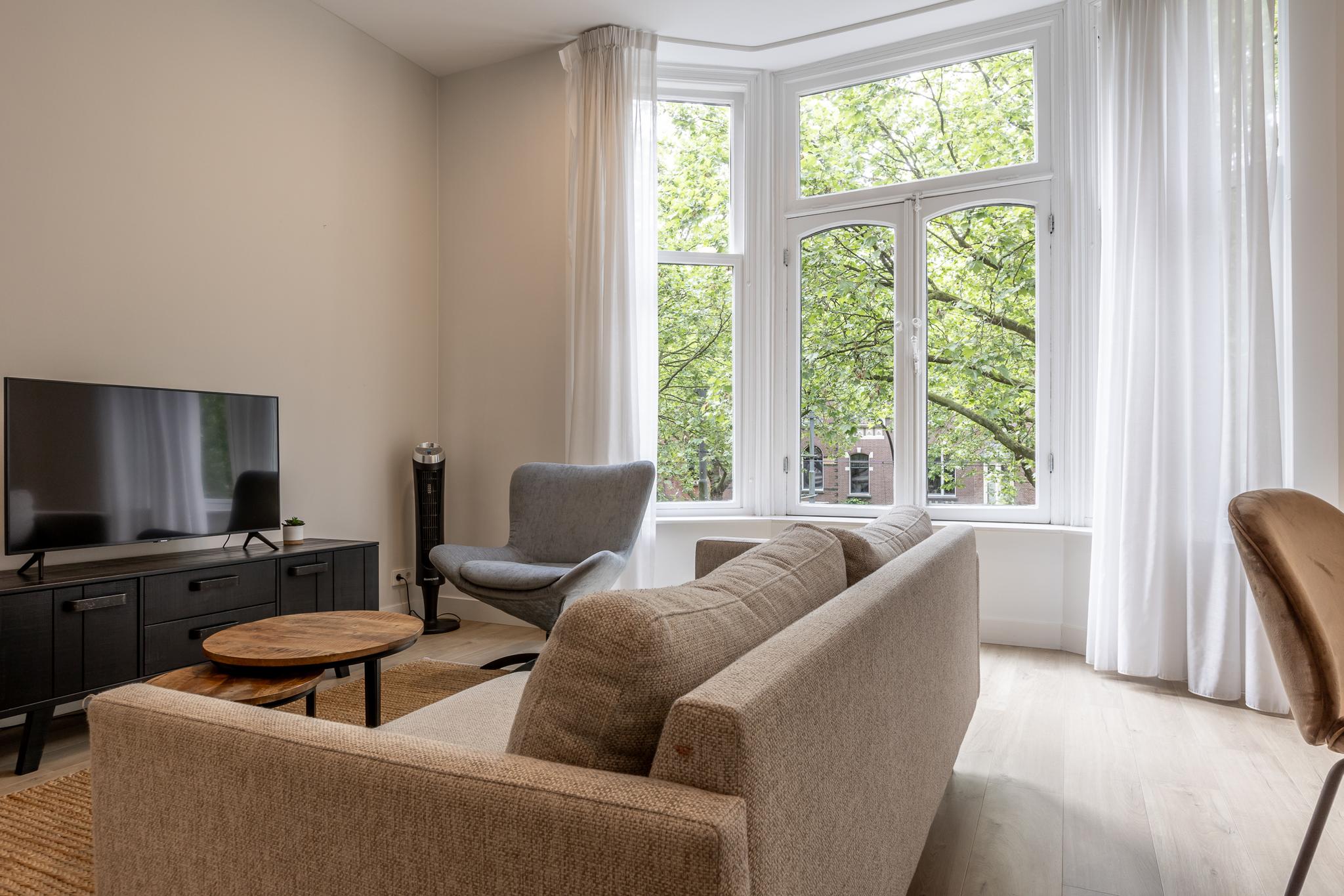 Op de eerste etage gelegen appartement met erker en zicht op de lommerrijke Mathenesserlaan.