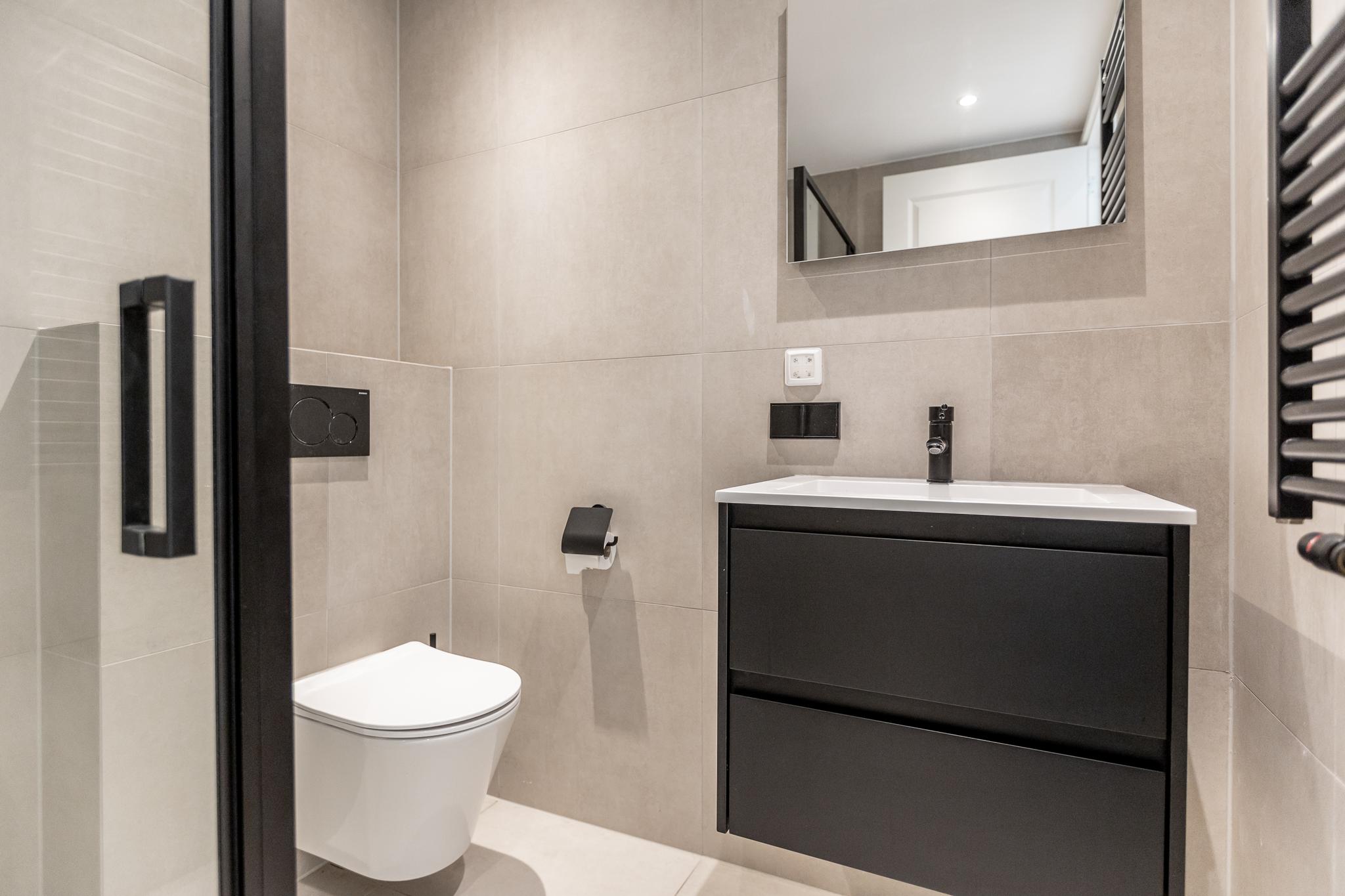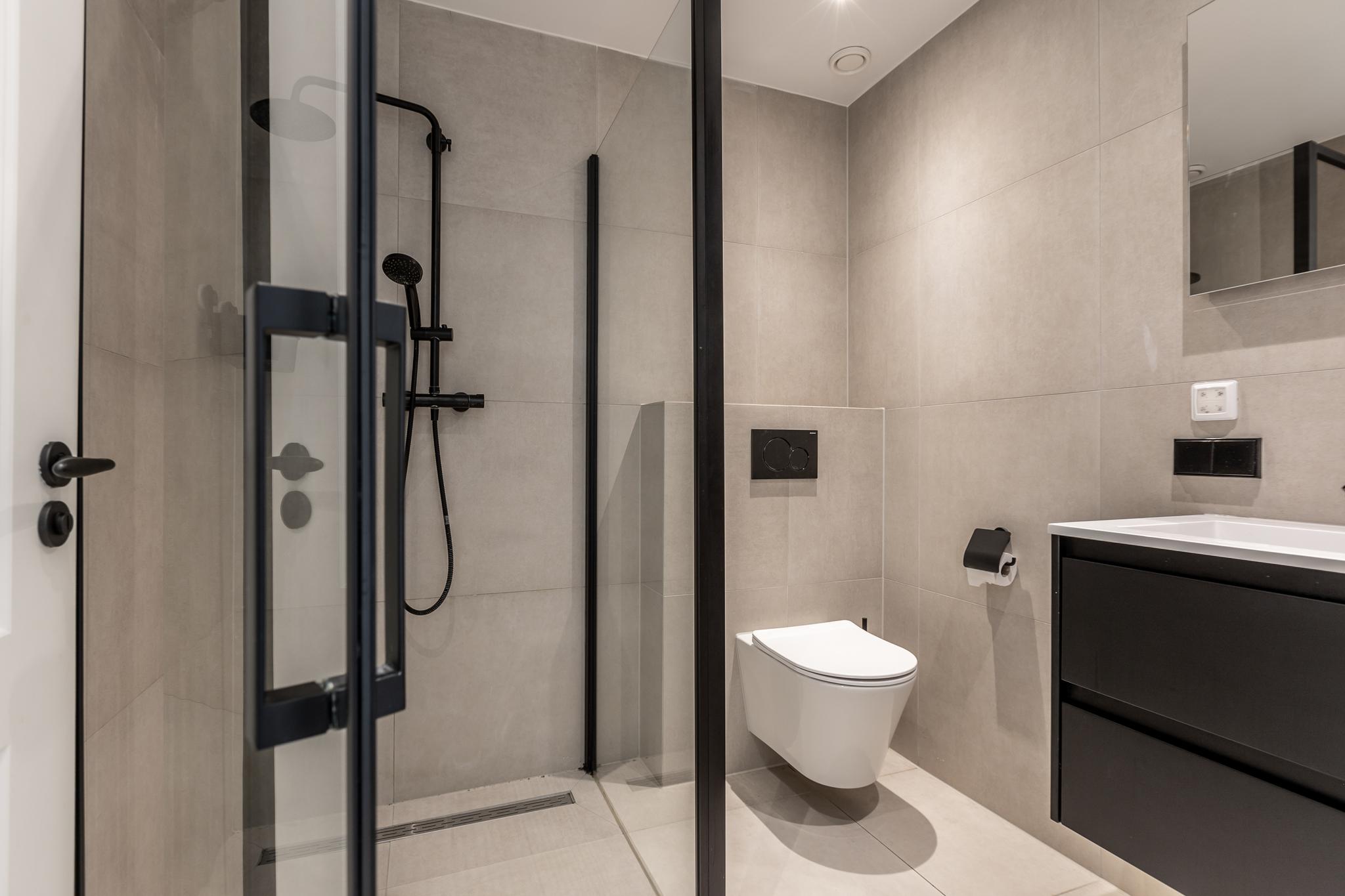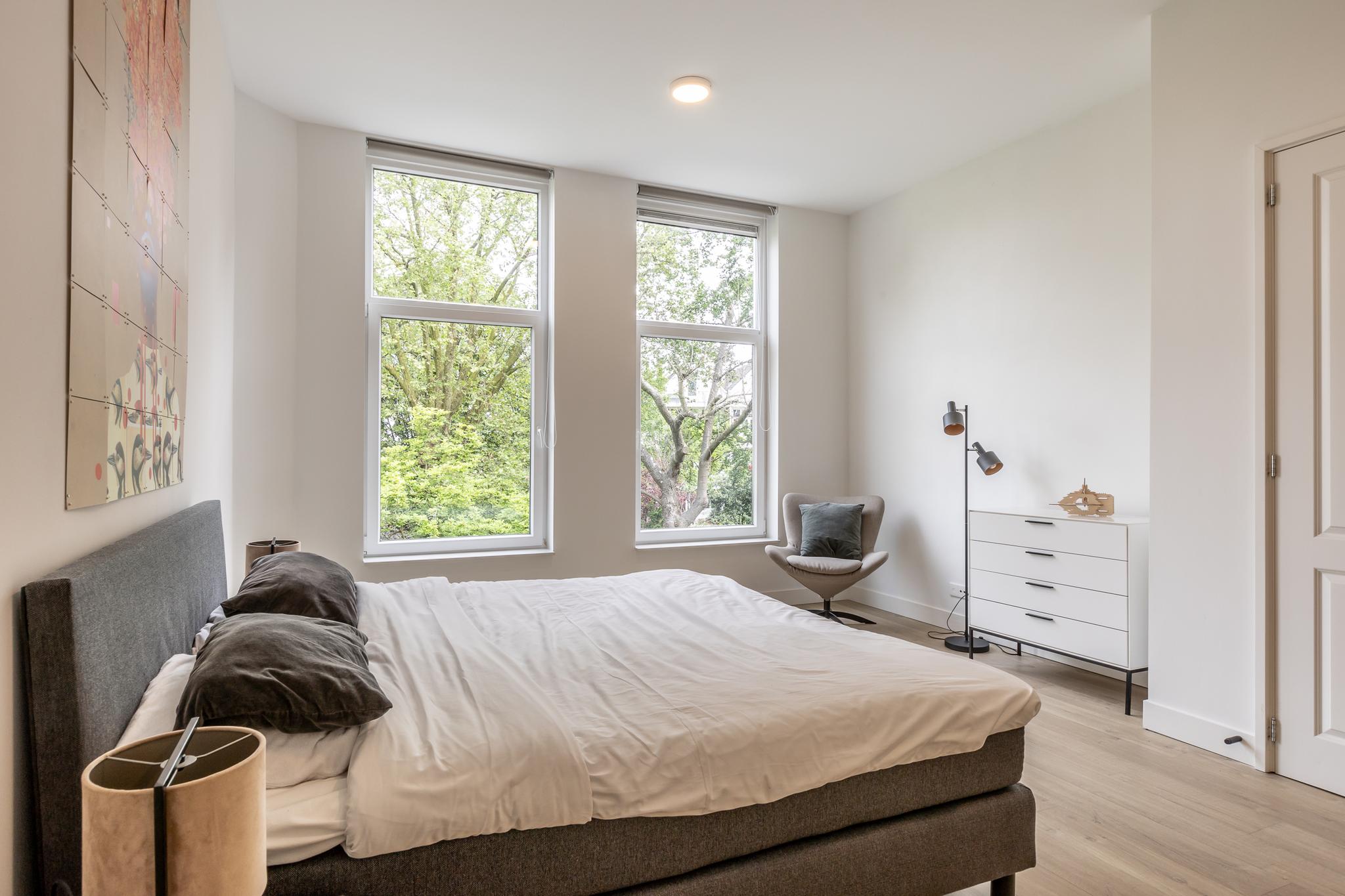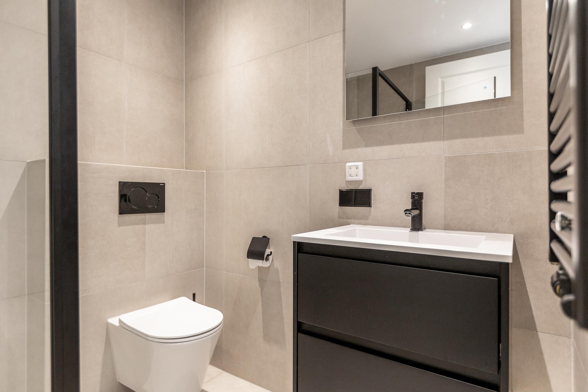 Vanuit de woonkamer loop je zo de grote slaapkamer in welke groot genoeg is voor een kantoorhoekje. De badkamer is aansluitend aan je slaapkamer hetgeen de luxe badkamer meer beleving geeft. De badkamer is voorzien van 2e toilet, wastafel in meubel, fijne inloopdouche en naast je vloerverwarming ook nog een handdoekenradiator.