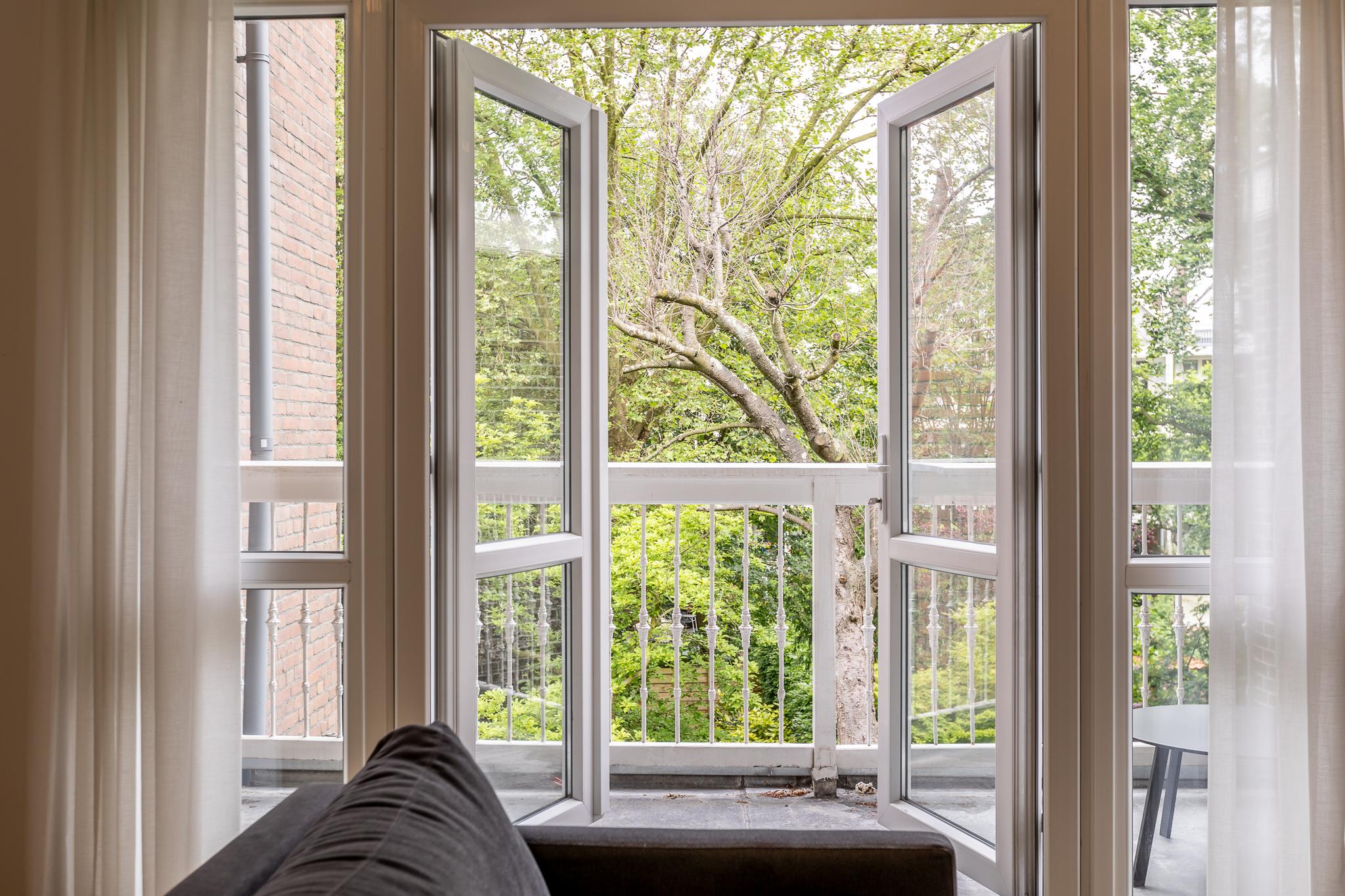 - Volledig voorzien van kozijnen met dubbel glas. Achterzijde is kunststof (weinig onderhoud), voorzijde is hout.