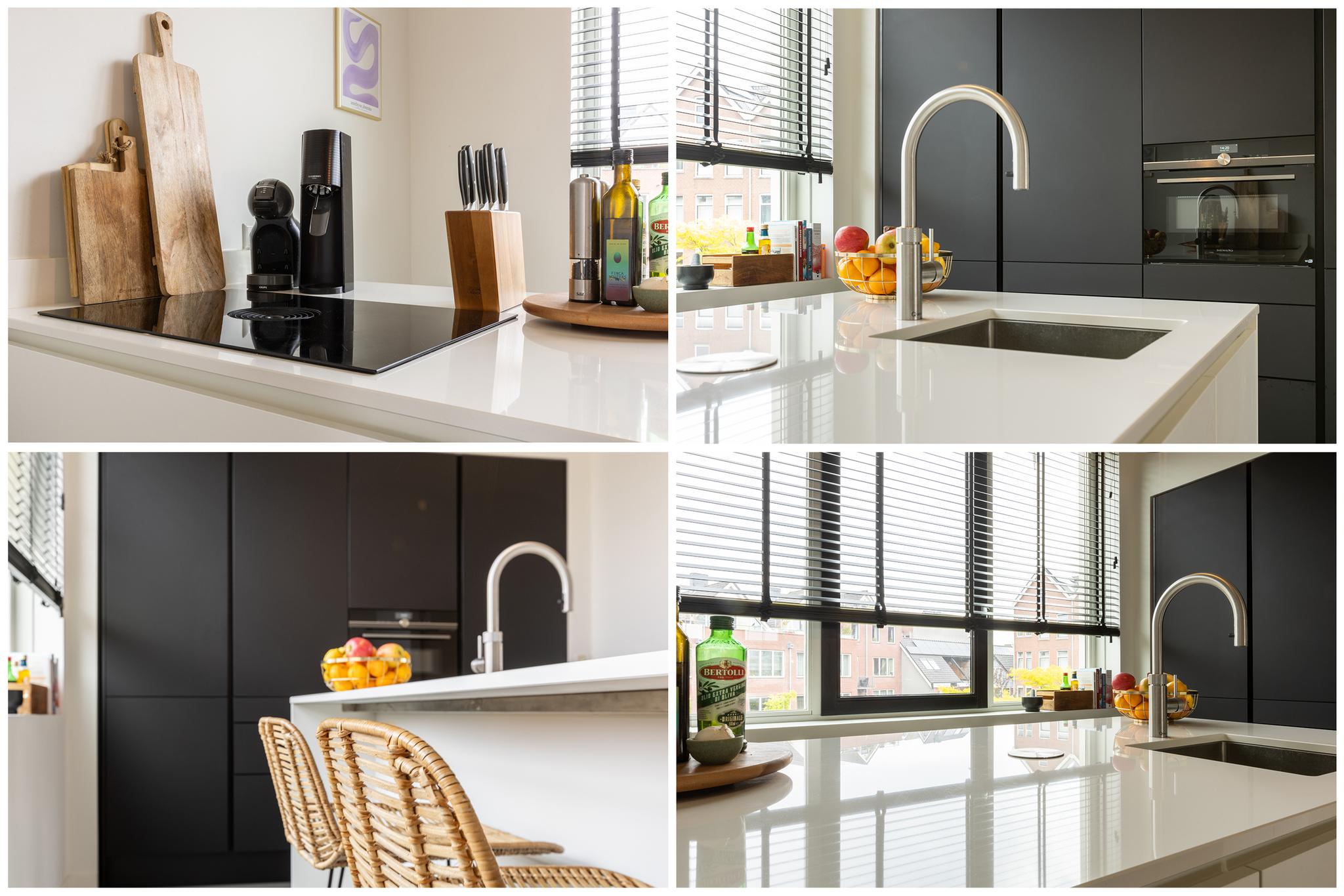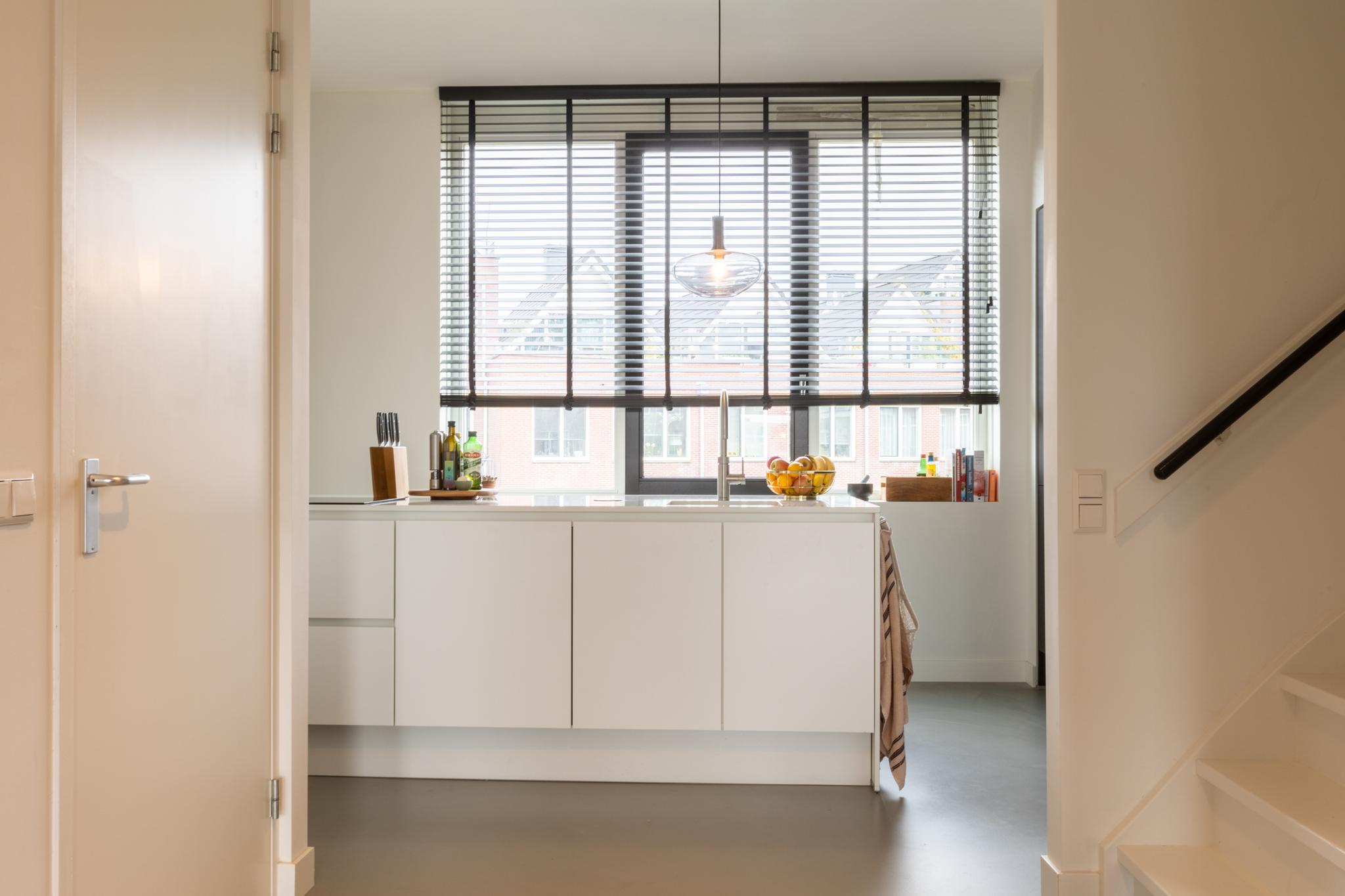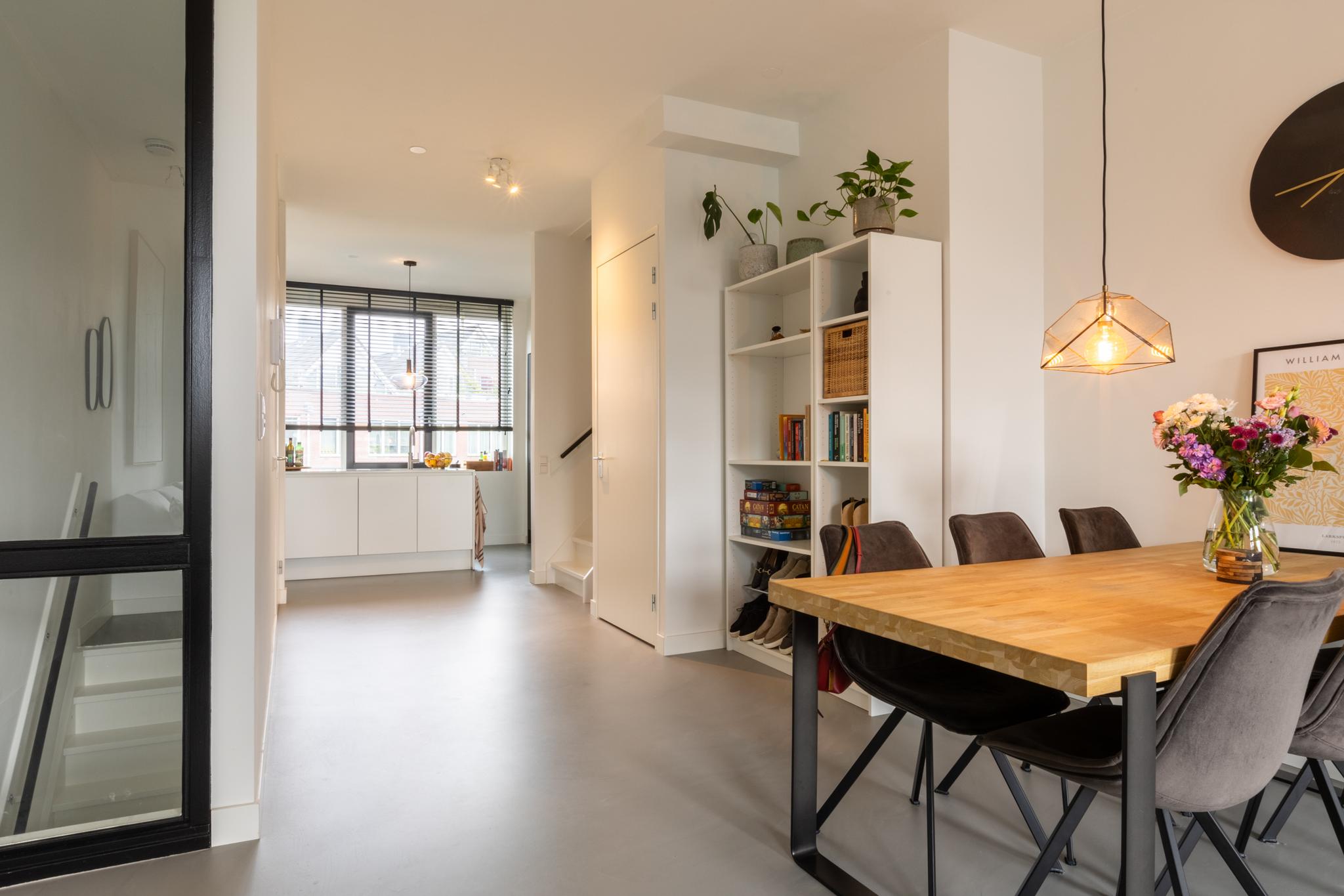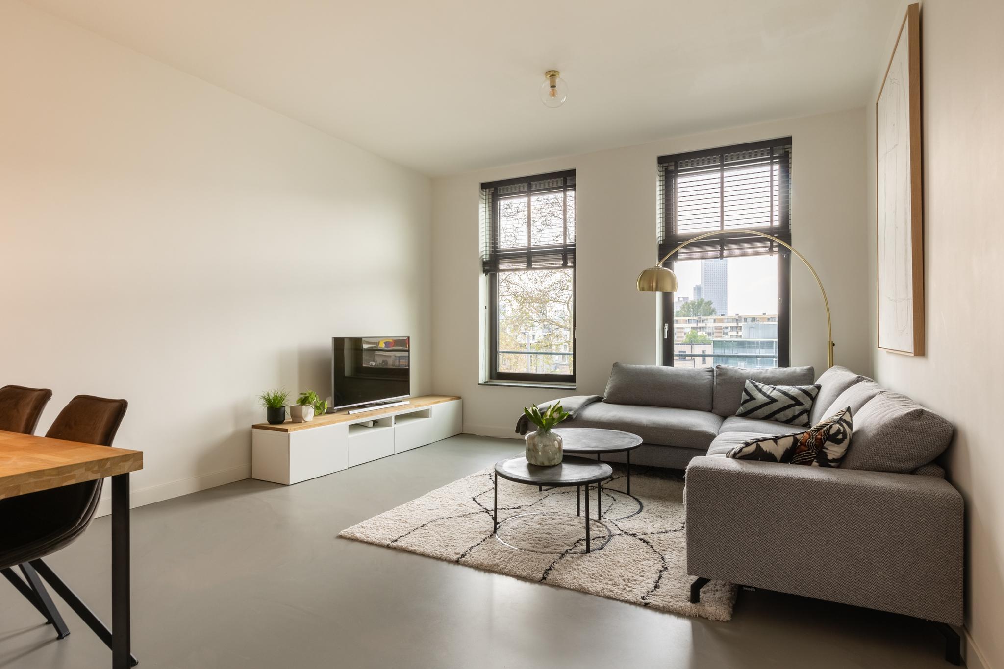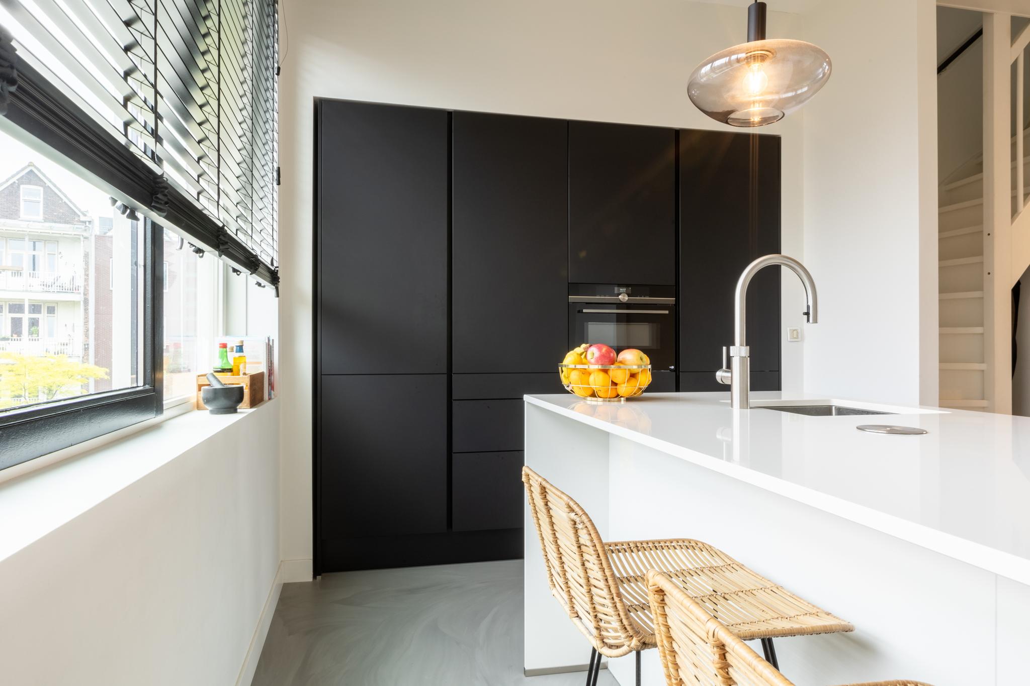 Treed binnen in dit moderne appartement waar je aan de voorkant een lichte en ruime woonkamer vindt. Heerlijk uitzicht hier! Grote ramen zorgen voor een overvloed aan natuurlijk licht, waardoor dit de perfecte plek is voor een comfortabele zithoek. De moderne en luxe open keuken is volledig uitgerust, inclusief een Bora inductiekookplaat met geïntegreerde afzuiging, een quooker en een vaatwasser. Ideaal voor het bereiden van gezellige diners. Deze verdieping is tevens voorzien van een gietvloer met vloerverwarming en je vindt er een toilet.