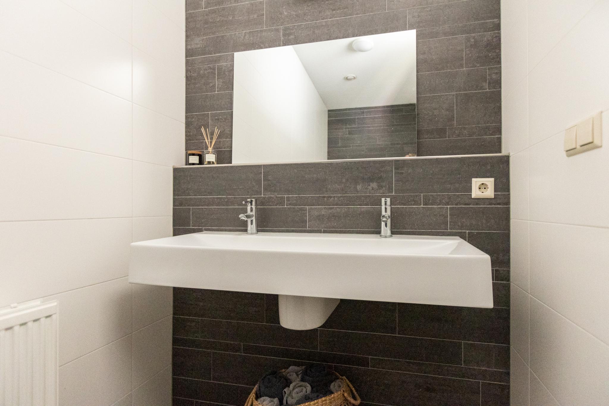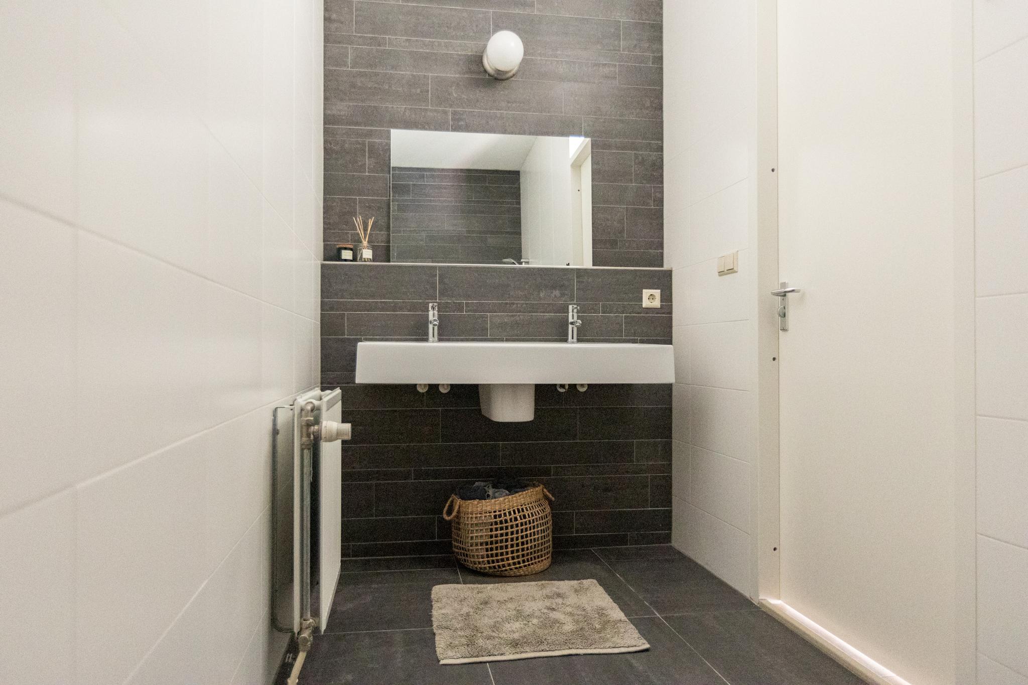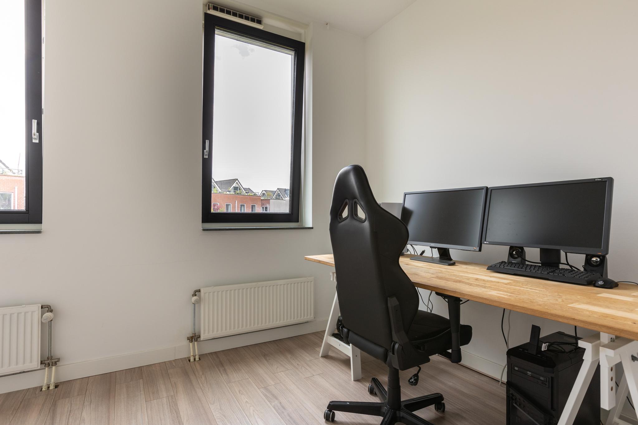 De overloop leidt naar twee ruime slaapkamers, perfect voor een gezin of gebruik de ruimte als kantoorruimte. De slaapkamer aan de voorzijde meet maar liefst 25m2, voldoende ruimte voor een tweepersoons bed en een riante kledingkast. De moderne badkamer is geheel betegeld in een mooie kleurstelling en voorzien van een dubbele wastafel en een royale inloopdouche. Een extra toilet op deze verdieping biedt extra gemak.