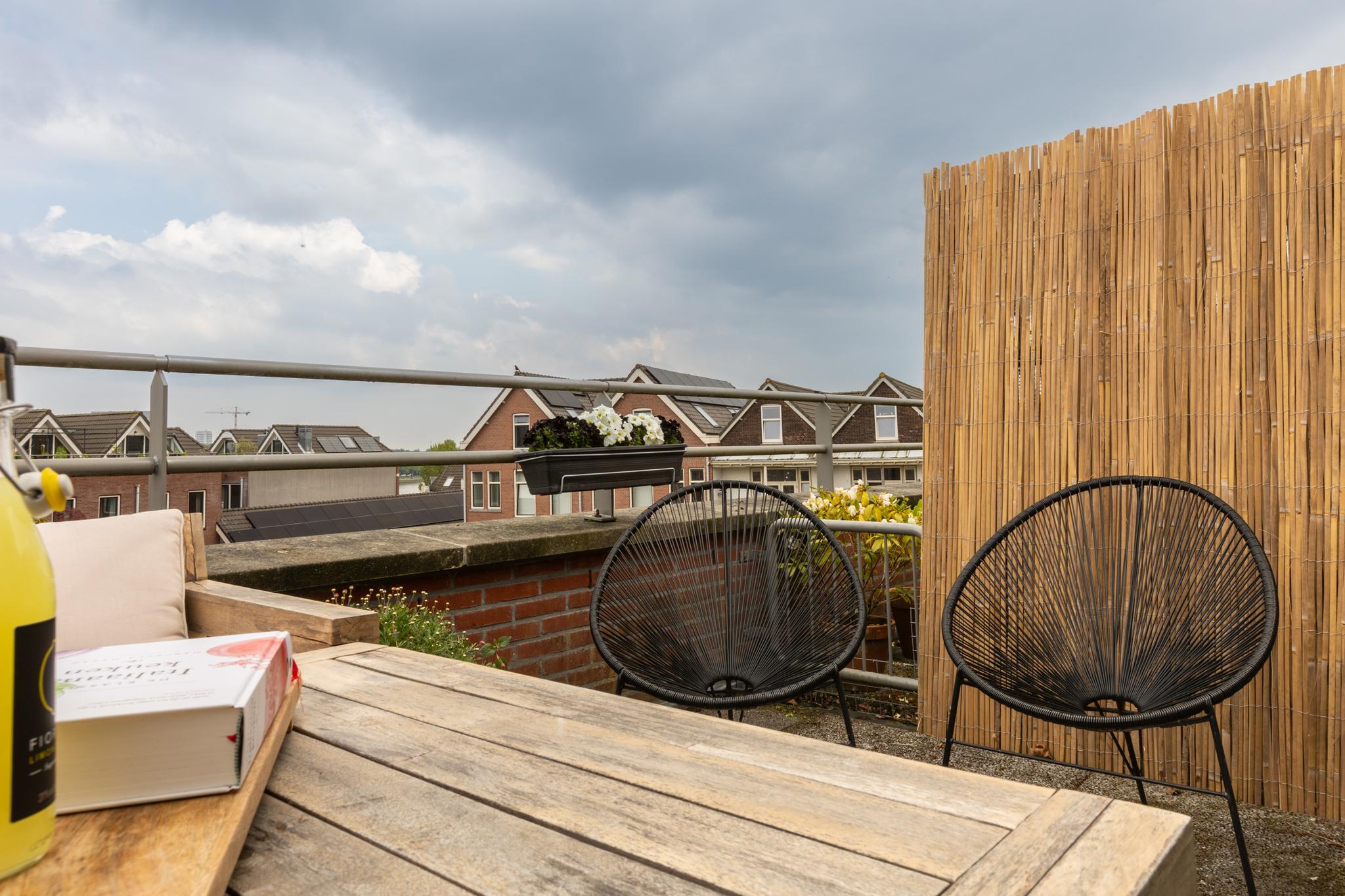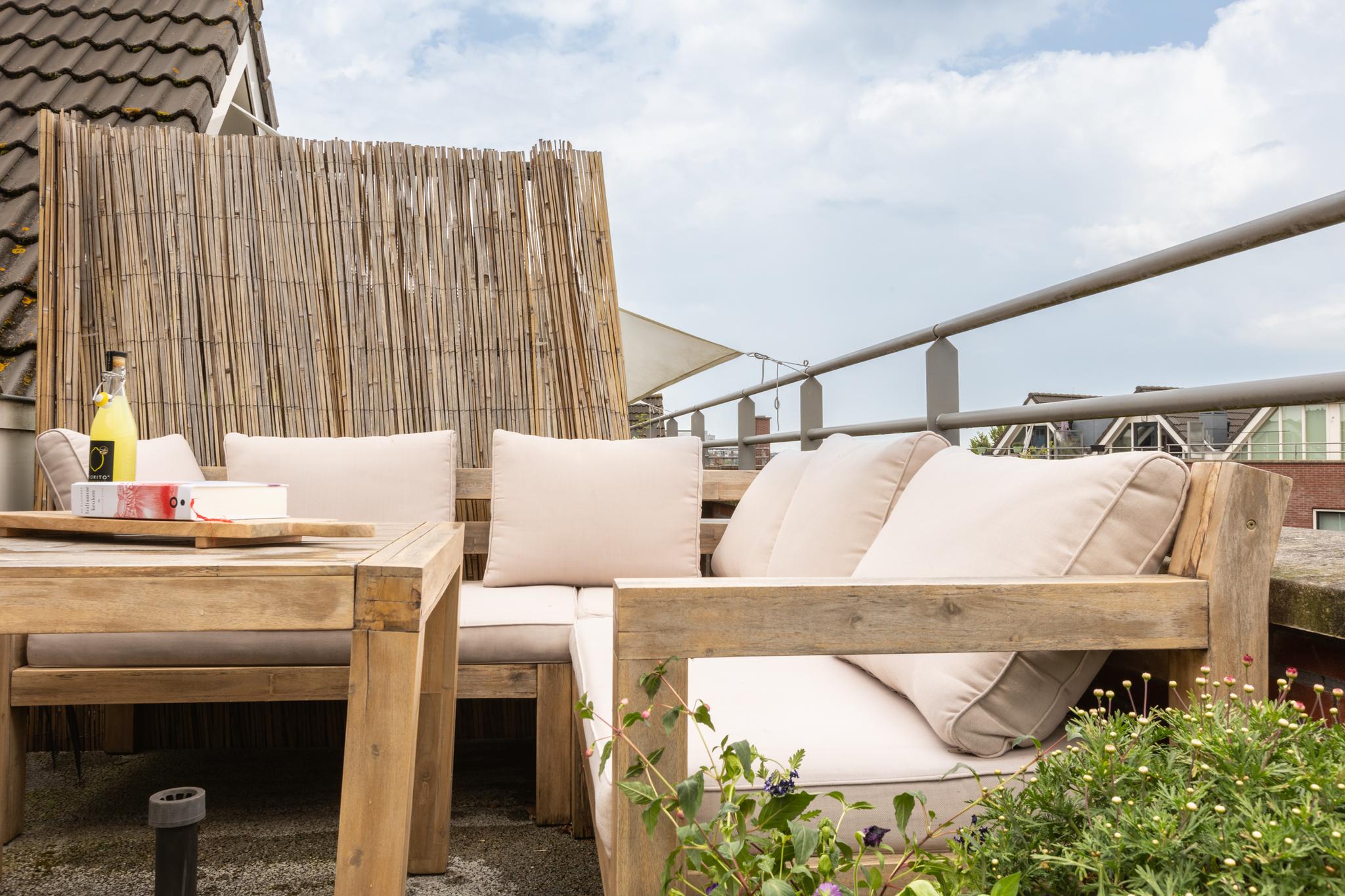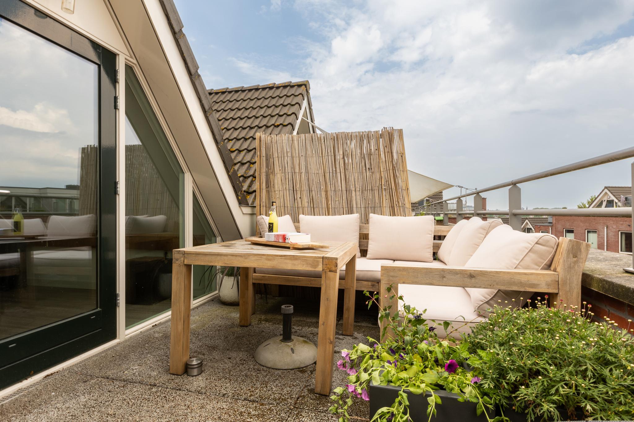 Het dakterras van circa 12 m², gelegen op het oosten met vrijwel de hele dag zon, is de kers op de taart. Dit is de perfecte plek om te ontspannen, van een zomerse BBQ te genieten en samen te zijn met vrienden en familie. Wonen hier wordt een dagelijks feestje!
