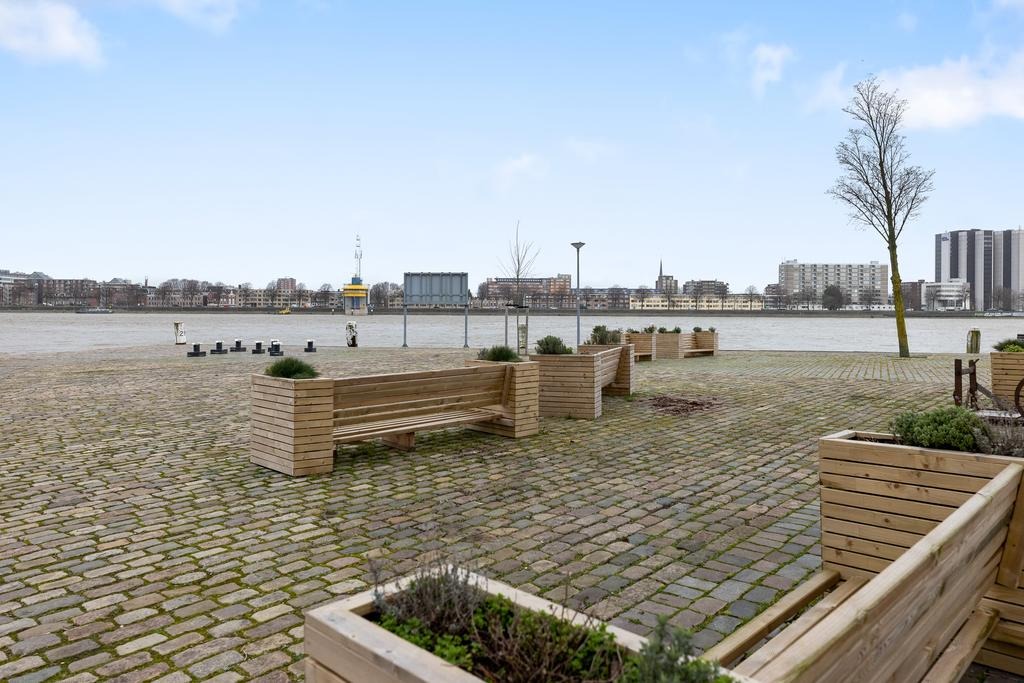 De woning ligt op ‘Het eiland van Feijenoord’, een gebied met ambitie, waar vrijwel alleen maar bestemmingsverkeer komt en je altijd omringd bent door water, ruimte en groen. En toch bevind je je op slechts een steenworp afstand van het centrum en diverse voorzieningen. Neem bijvoorbeeld Restaurant MAAS, een toprestaurant in de buurt. In de zomer vind je hier het meest relaxte terras van Rotterdam; een fijn zonnetje, briesje vanaf het water, wat stoelen en tafels onder een boom en je hebt direct een vakantiegevoel. Ook loop je zo door naar restaurant Allure en op de fiets zit je binnen 5 minuten op de Wilhelminapier met o.a. de Foodhallen en Hotel New York. Eet je liever thuis? Weet dan dat de Jumbo supermarkt in het Entrepotdok, op 5 minuten lopen 365 dagen per jaar open is. Ook fijn: het Nassauhavenpark met prachtige oude bomen en prima onderhouden grasvelden, speeltuinen en zitjes ligt letterlijk voor de deur. De wijk uit? Met de fiets sta je binnen 10 minuten in het centrum en met de bus doe je daar nog geen 7 minuten over. Wil je de stad uit dan pak je de trein op Station-Zuid. Ten slotte zit je met de auto in no-time op de snelweg.