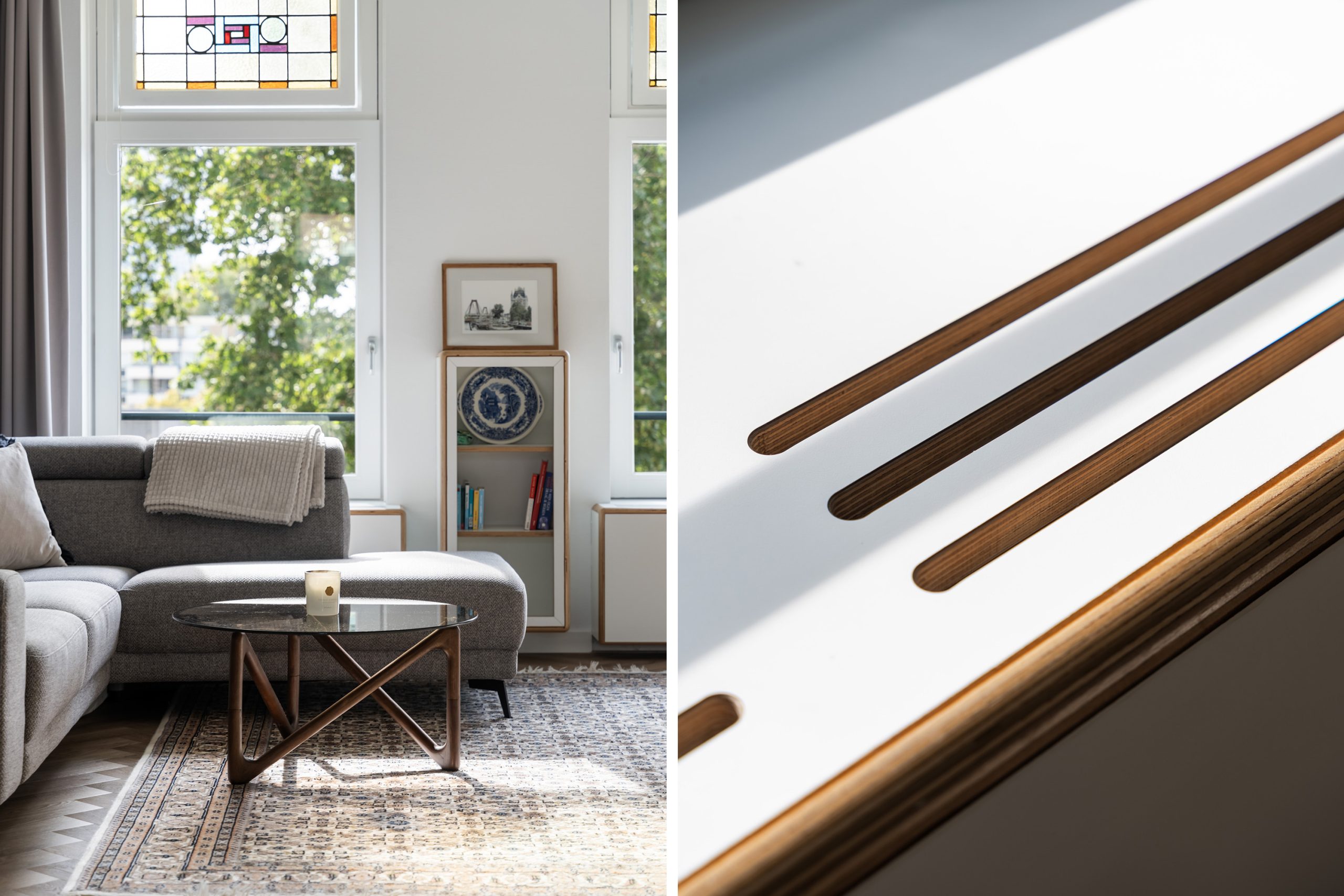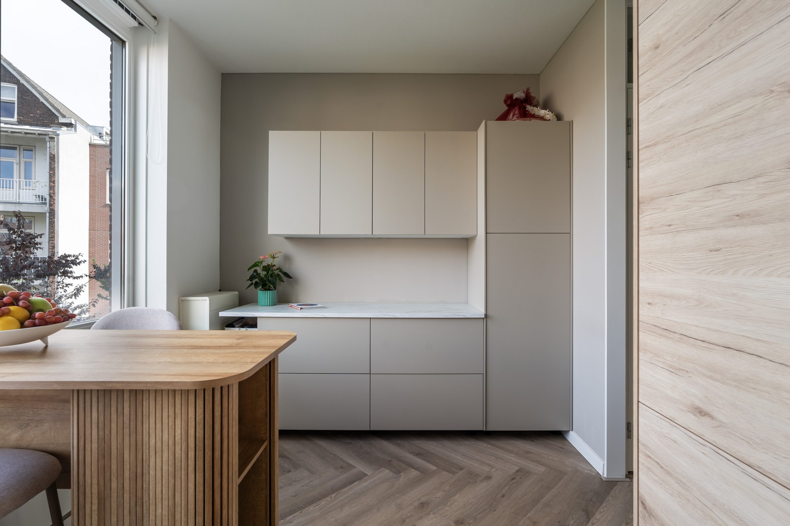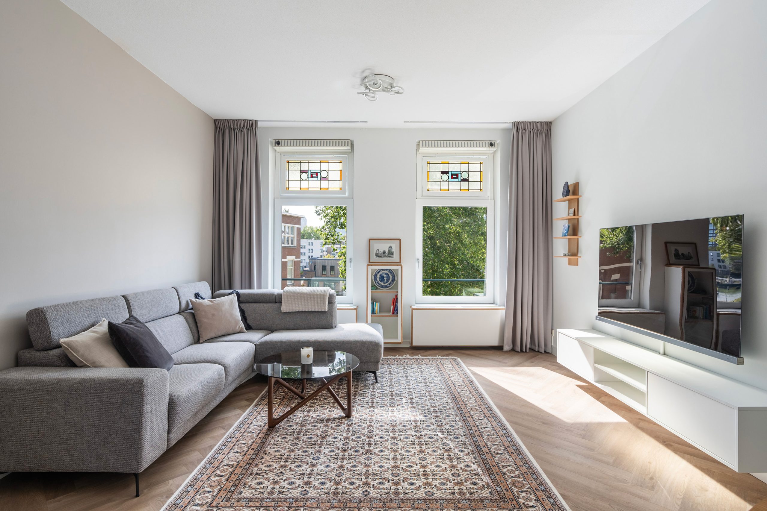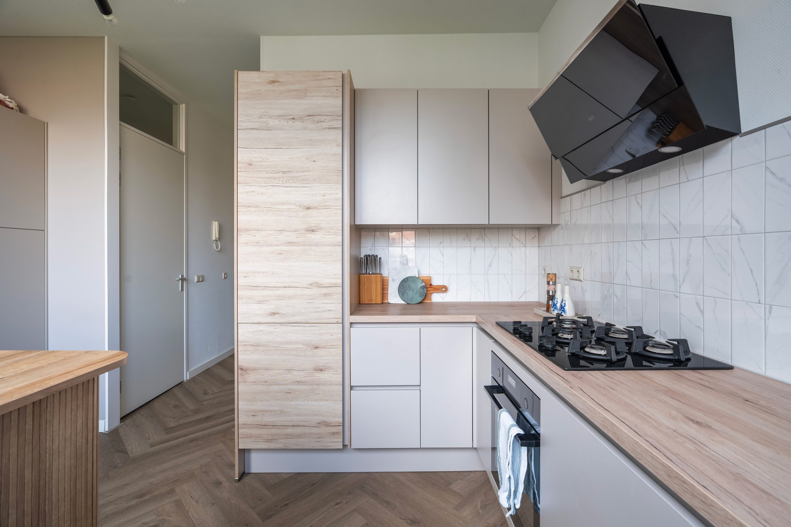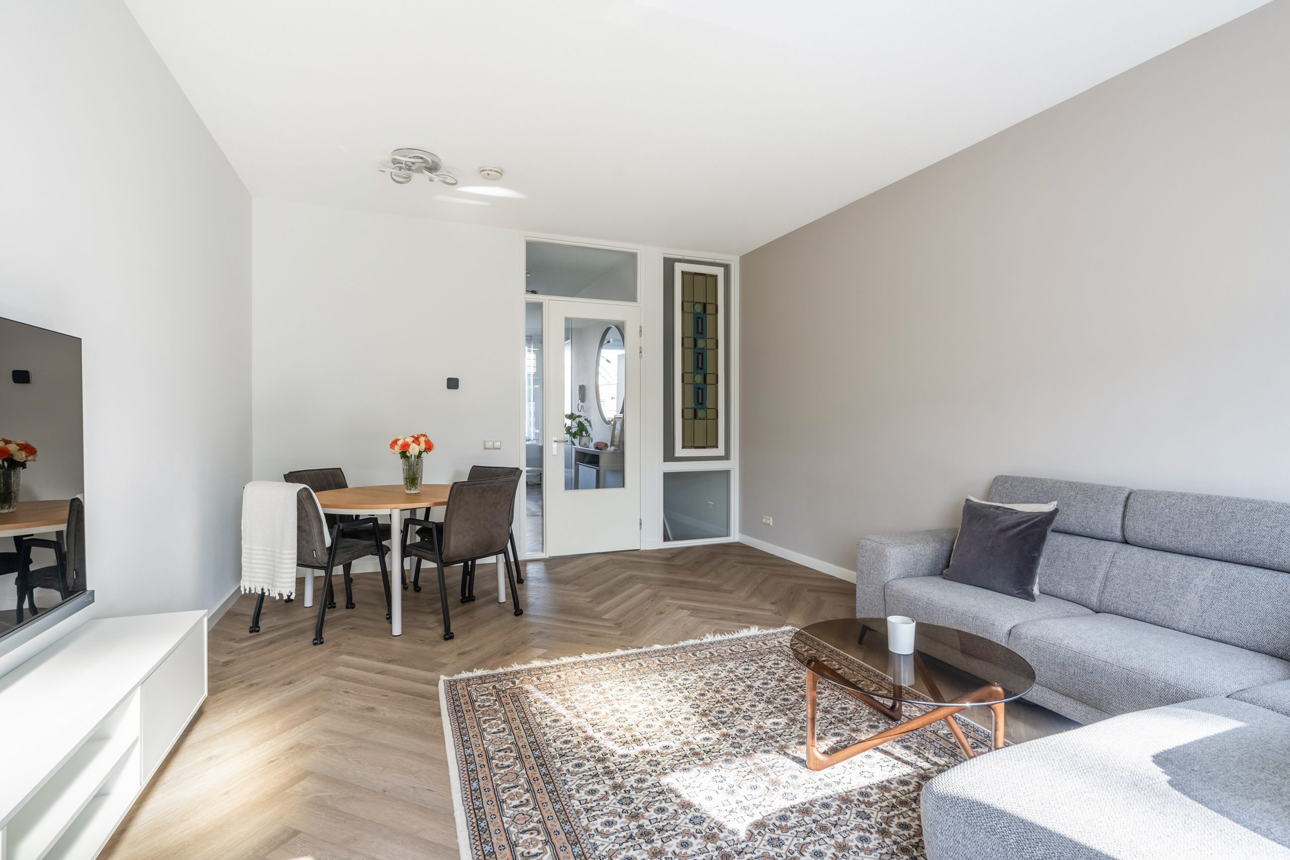 De ruime overloop leidt je naar de sfeervolle woonkamer aan de voorzijde, waar grote ramen zorgen voor een prettige lichtinval en karaktervolle glas-in-looddetails een vleugje authenticiteit geven. De mooie PVC-vloer en strakke afwerking maken deze ruimte warm en uitnodigend. Er ligt een keurige visgraatvloer over de gehele verdieping, welke de woning extra sfeervol maakt. Aan de achterzijde bevindt zich de ruime woonkeuken met kookeiland en moderne inbouwapparatuur zoals oven, gaskookplaat, vaatwasser, koelkast, vriezer, kokend-water kraan (Quooker) en afzuigkap. Hier kijk je uit over de binnentuinen terwijl je de lekkerste gerechten op tafel tovert. Op deze verdieping vind je een separaat toilet met fonteintje en een praktische en zeer ruime opbergkast.