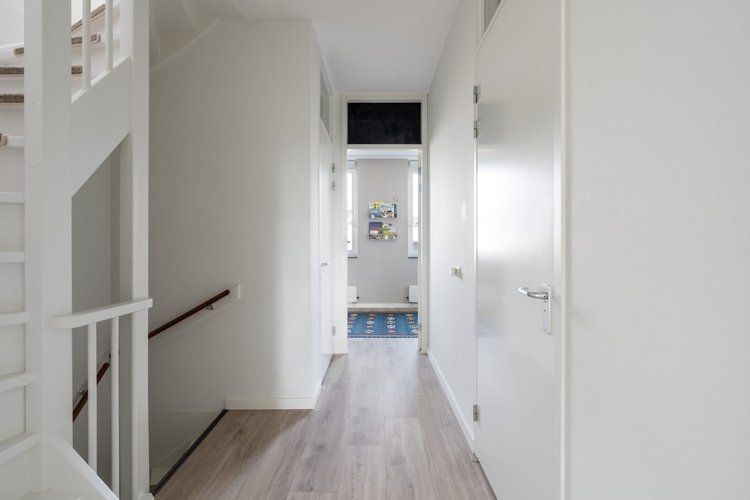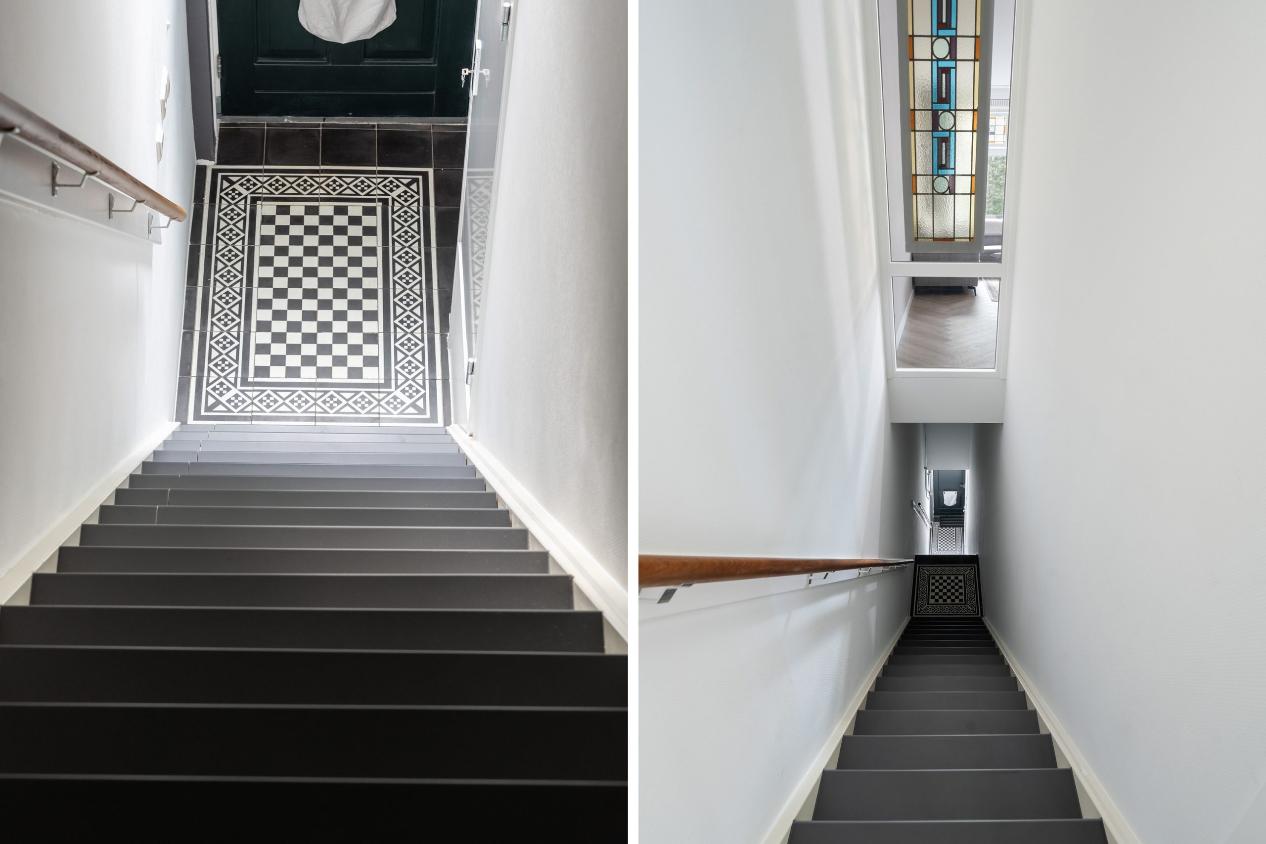 Je eigen voordeur op straatniveau biedt toegang tot een nette entreehal met trapopgang naar de woning. Onder de trap bevindt zich nog een ruime privé berging van circa 5 m², ideaal voor je fiets, kinderwagen of extra spullen.