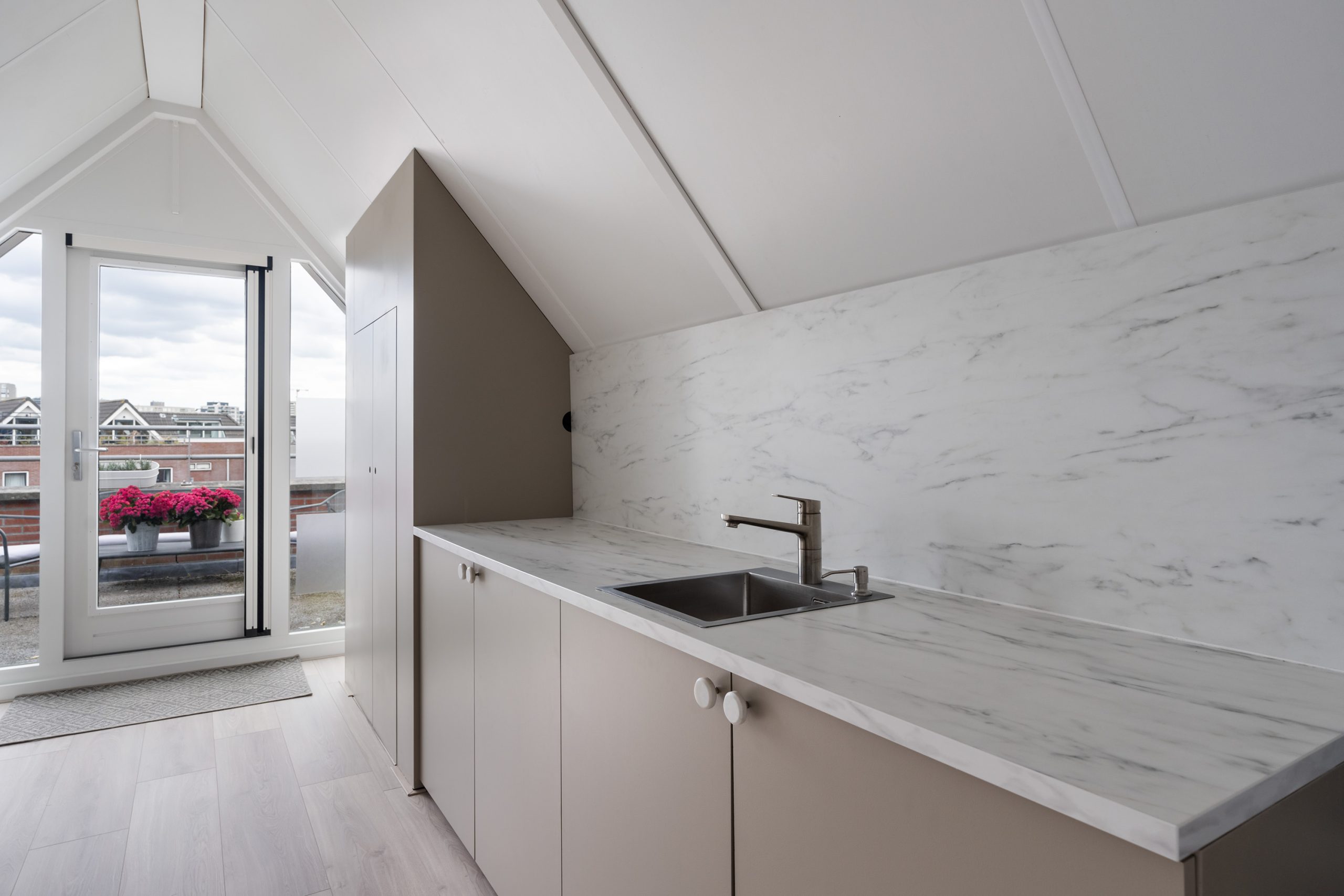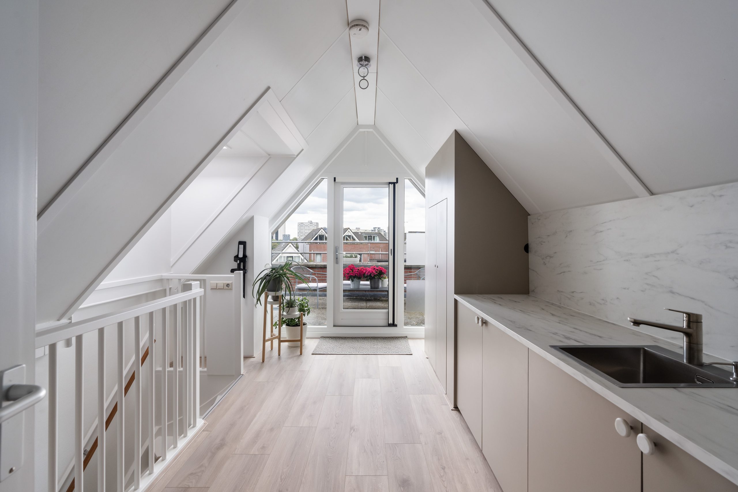 Dé kers op de taart: hier vind je een fantastische voorzolder (inclusief pantry en wasmachine-aansluiting) en nog een ruime multifunctionele kamer en slaapkamer. Ideaal als logeerkamer, werkkamer of hobbyruimte. Dankzij de twee dakramen is het hier heerlijk licht. En dan… het riante dakterras van ca. 13 m² op het oosten! Begin hier je dag met een kop koffie in de ochtendzon of sluit af met een borrel en uitzicht over de wijk. Een plek om van te houden en om jaloers op te zijn.