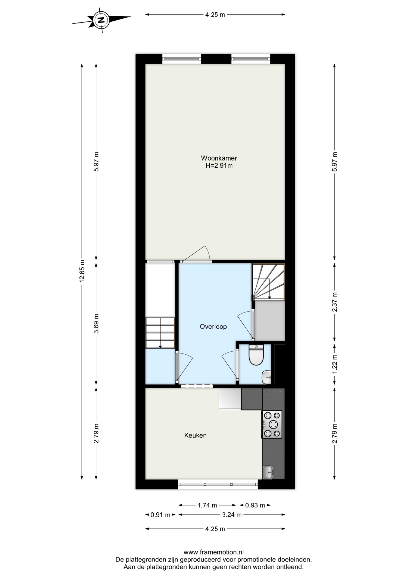 Voor de afmetingen en indeling zie onze gedetailleerde plattegrond.
