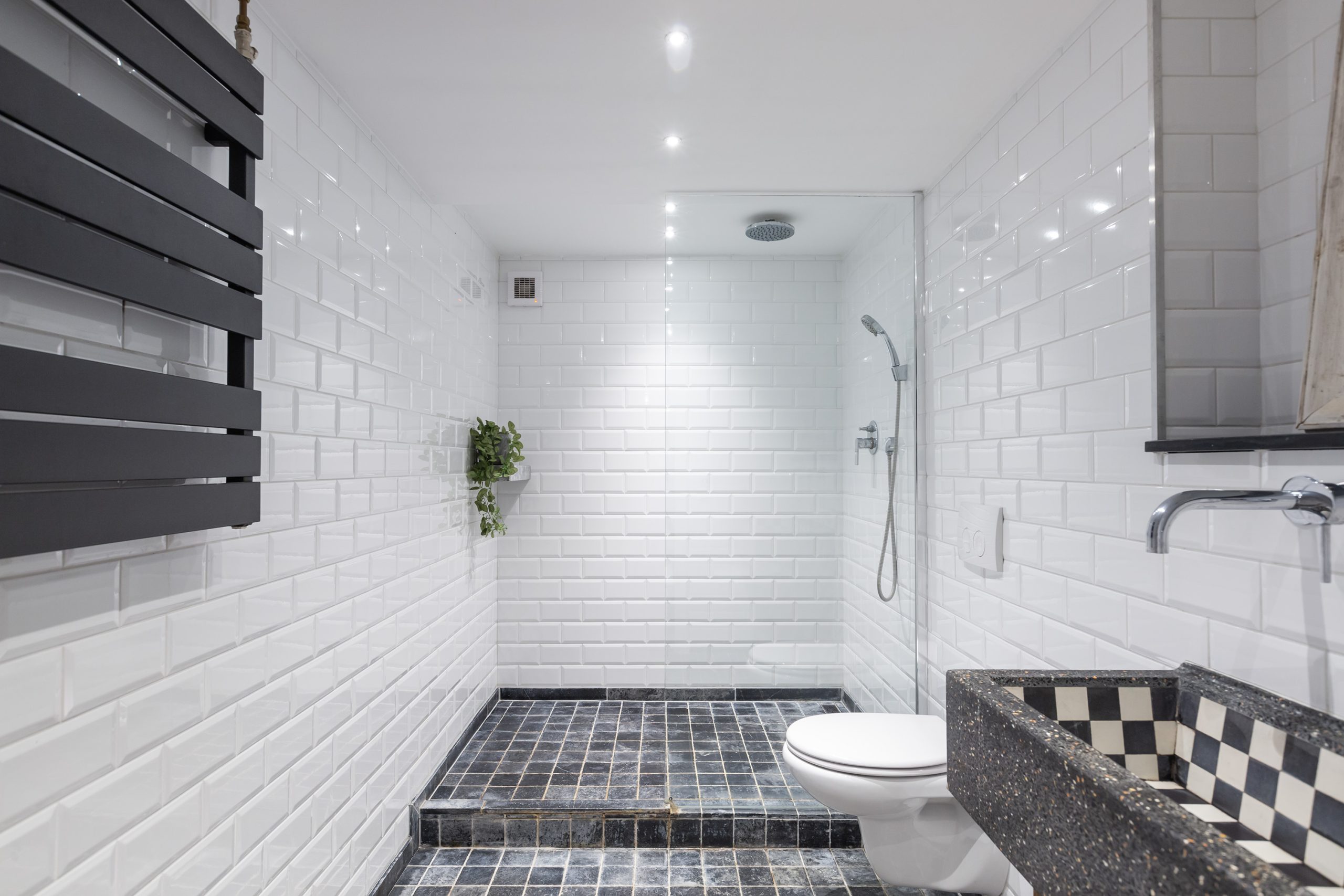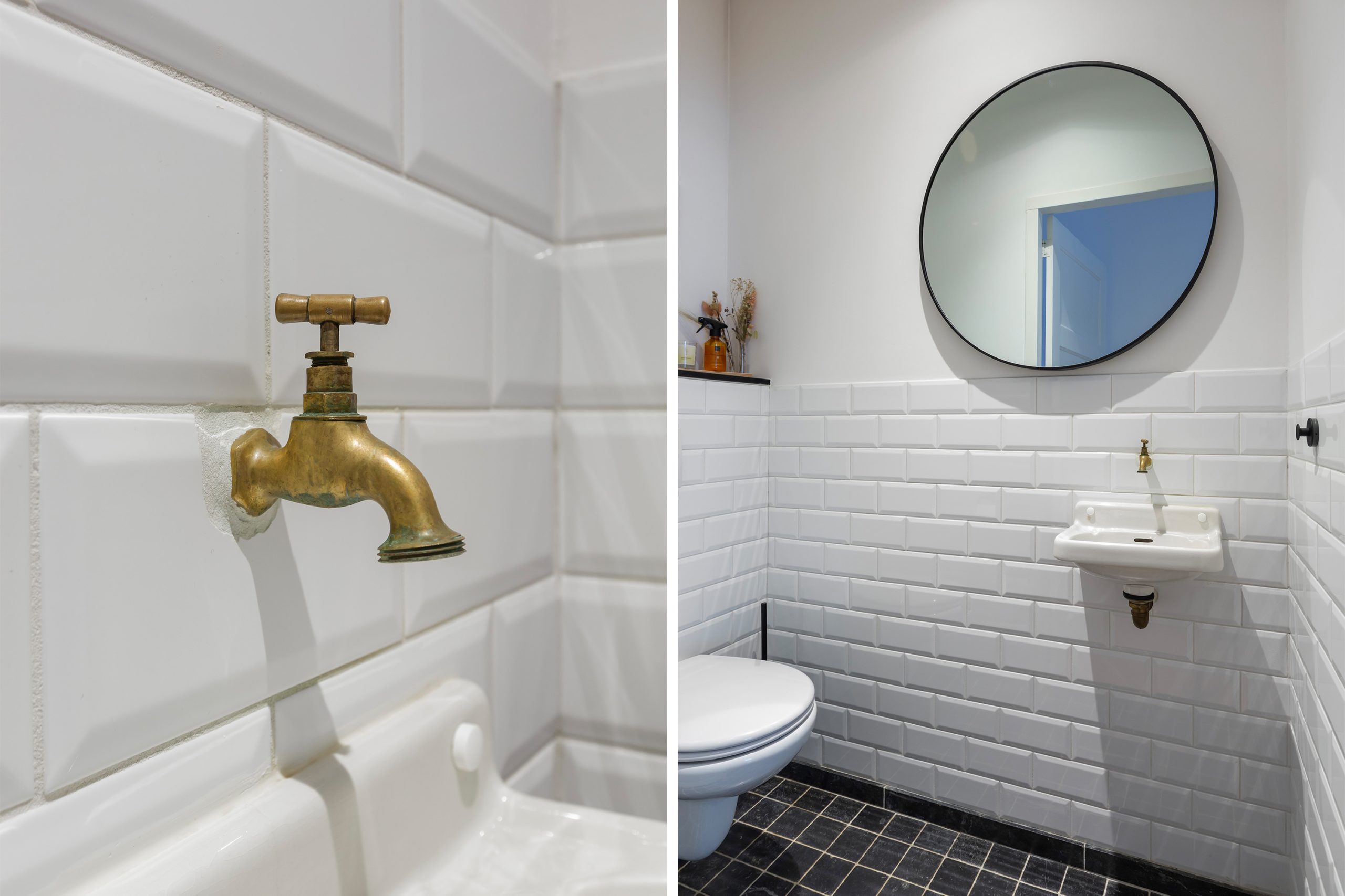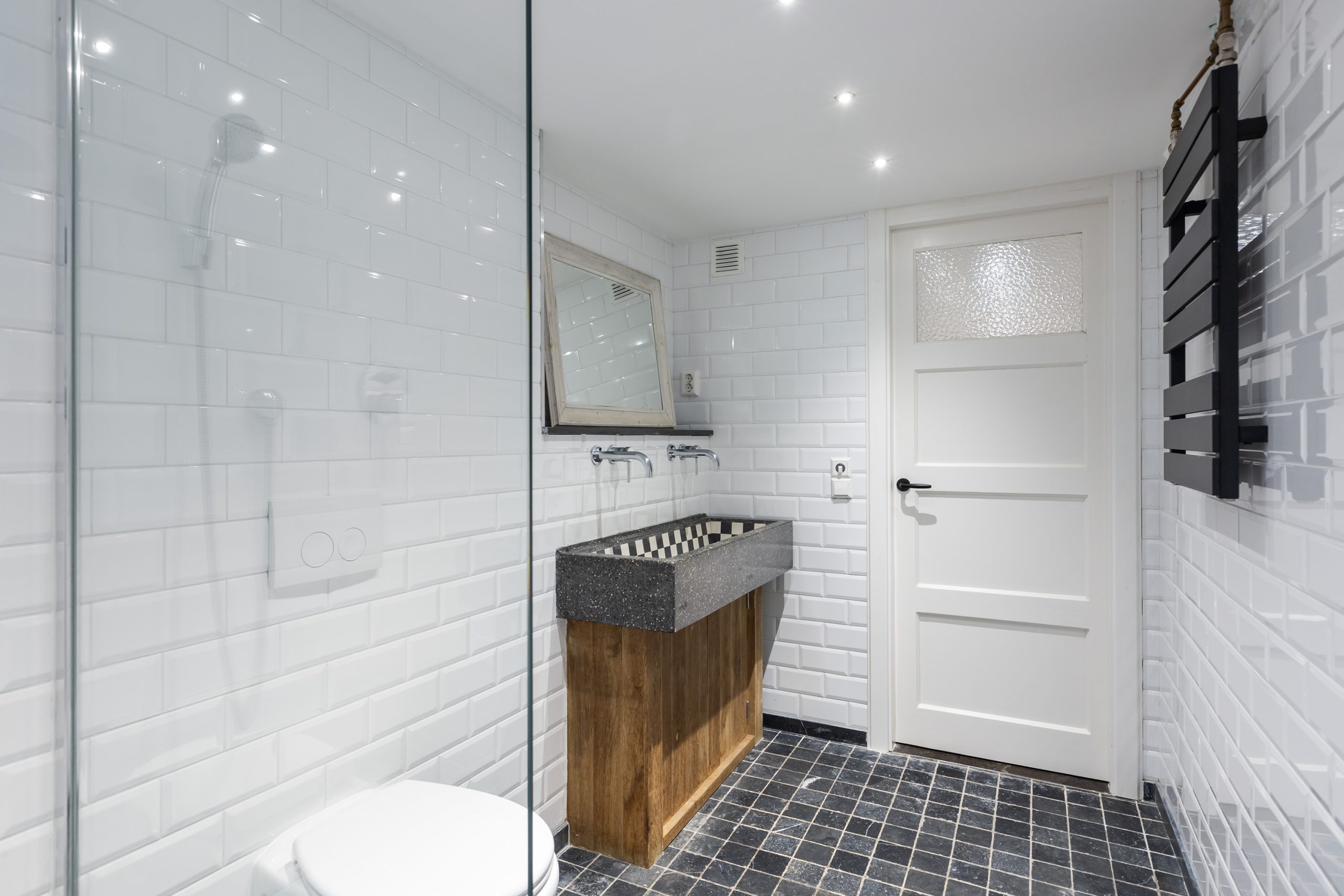 De badkamer heeft een karaktervolle uitstraling, mede dankzij de authentieke (dubbele) wastafel die afkomstig is uit een oude school. Verder is de badkamer voorzien van een luxe inloopdouche, handdoekradiator én een tweede toilet. Tot slot is er in de hal nog een aparte wasruimte met aansluitingen voor wasmachine en droger en een trapkast.