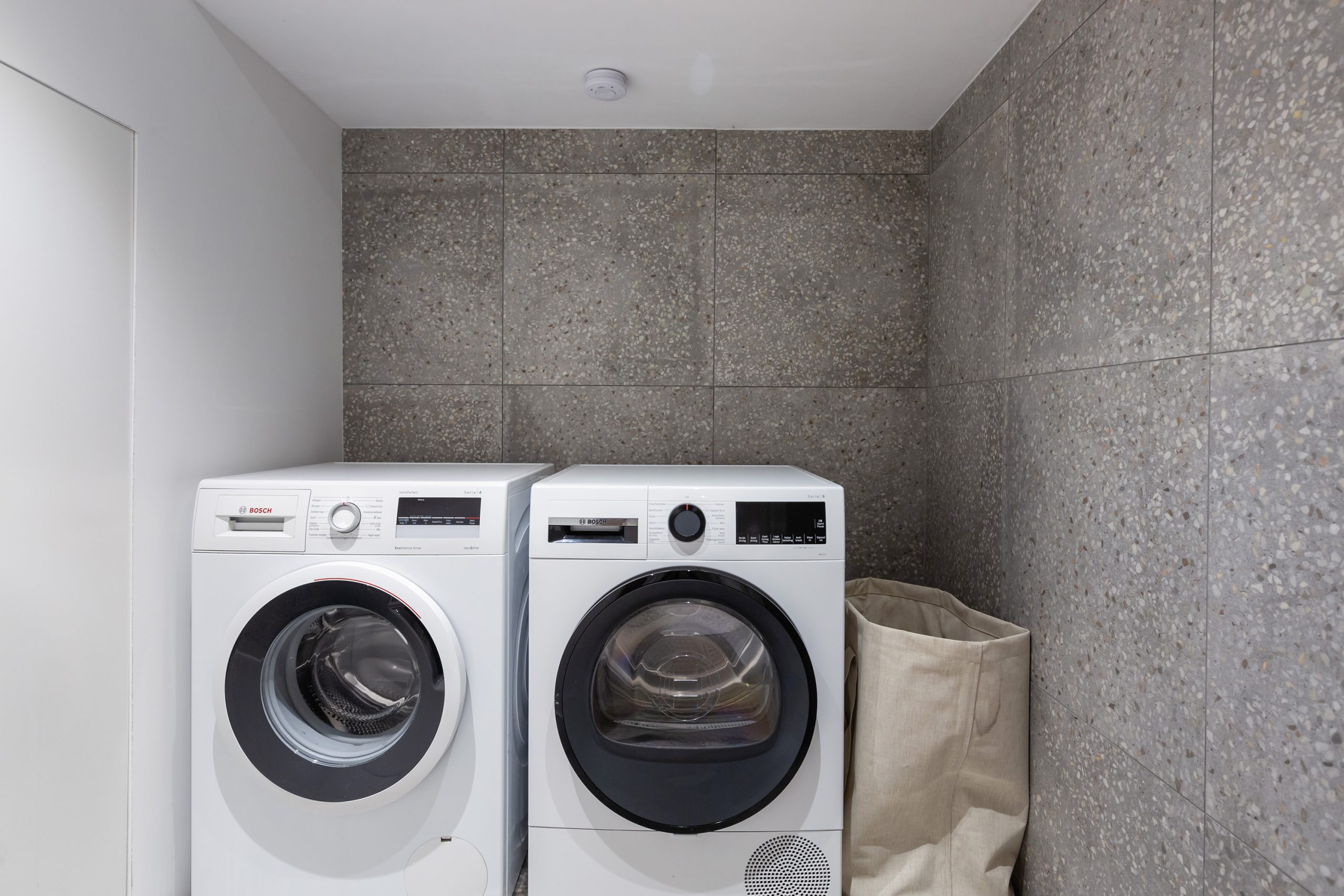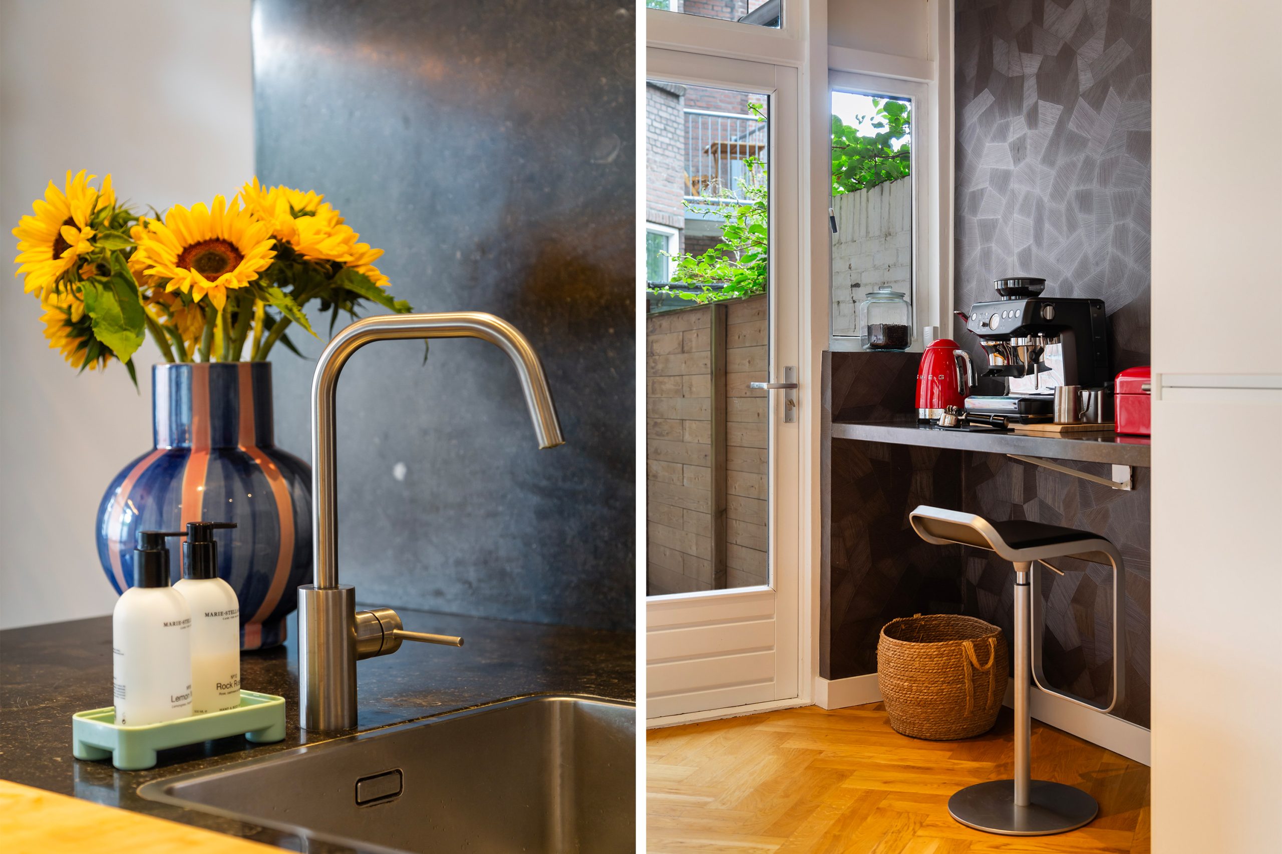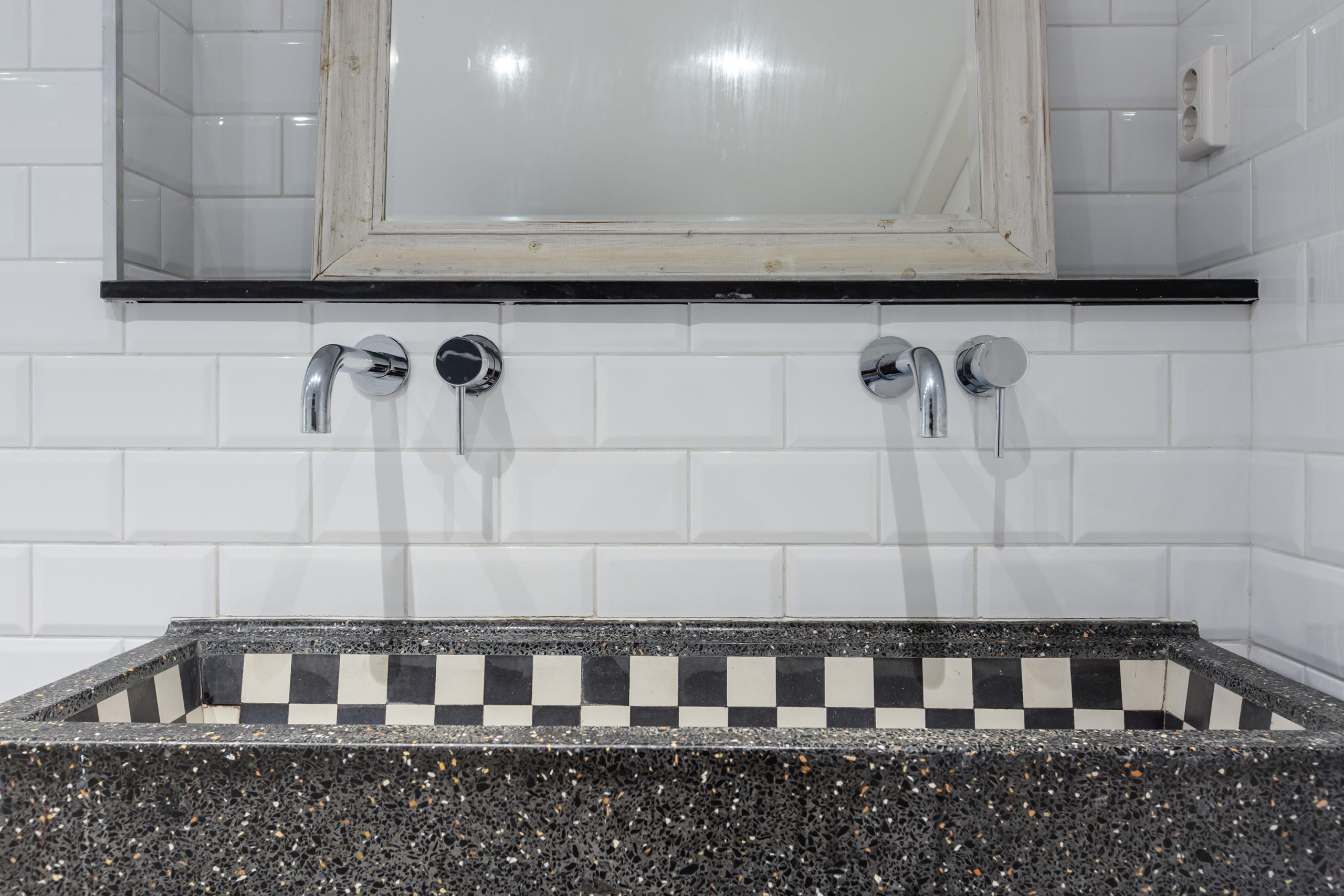 De badkamer heeft een karaktervolle uitstraling, mede dankzij de authentieke (dubbele) wastafel die afkomstig is uit een oude school. Verder is de badkamer voorzien van een luxe inloopdouche, handdoekradiator én een tweede toilet. Tot slot is er in de hal nog een aparte wasruimte met aansluitingen voor wasmachine en droger en een trapkast.