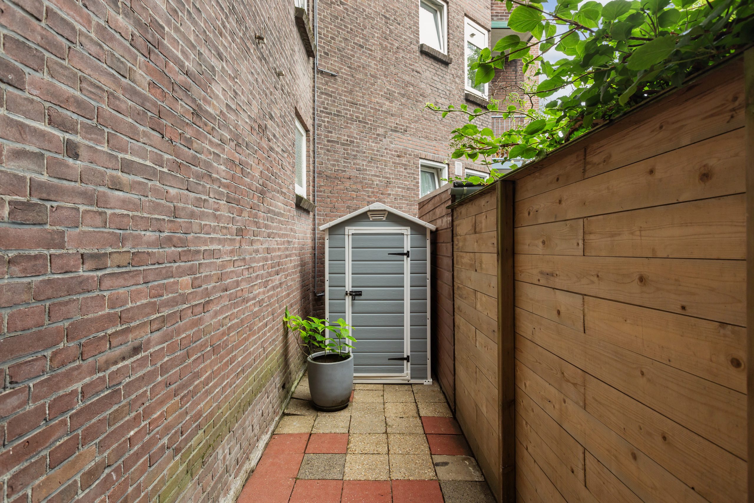 Via de openslaande deur in de keuken bereik je de binnenplaats (ca. 11 m²), gelegen op het zuidwesten. Deze is verzorgd aangelegd en beschikt over een kleine vrijstaande kunststof berging, ideaal voor het stallen van de tuinspullen.